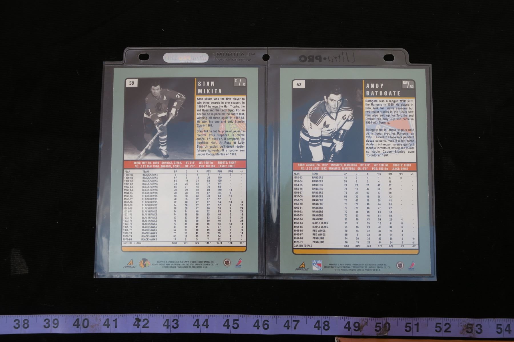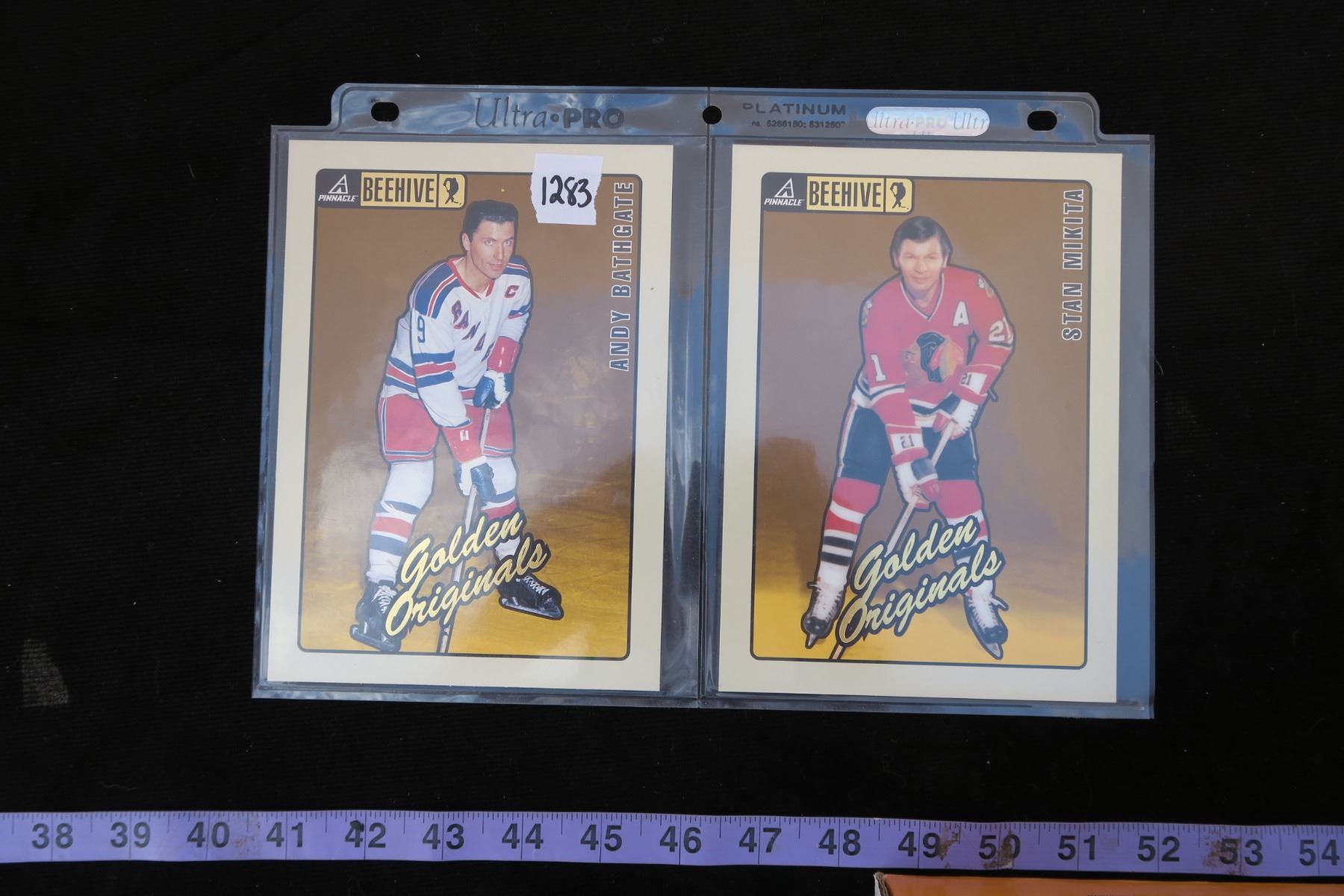 #1283 - 1997-98 Pinnacle Beehive 5x7 Golden Originals Stan Makita & Andy Bathgate