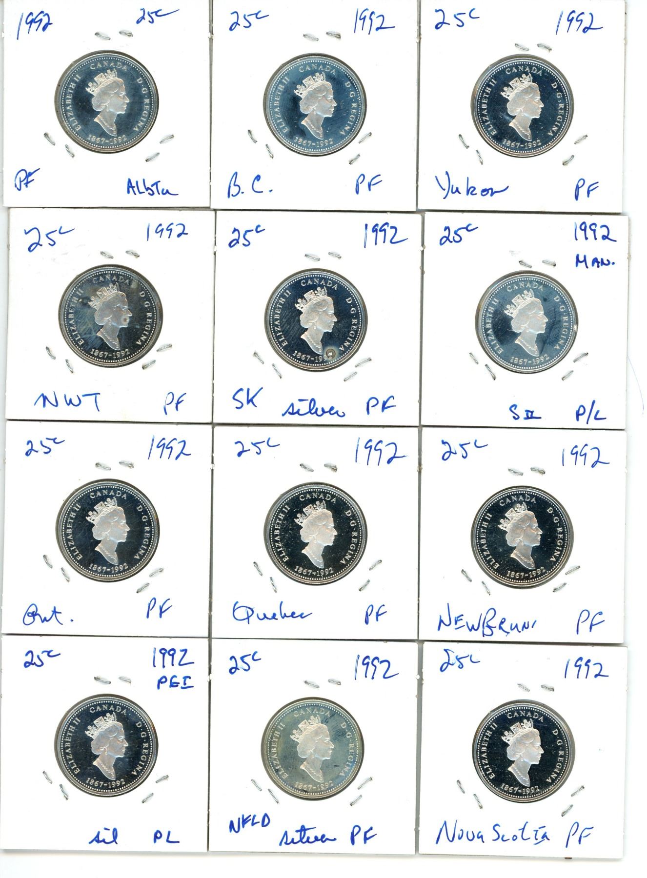12x Canadian silver proof 25 cent coins - 1992 Provinces - non magnetic