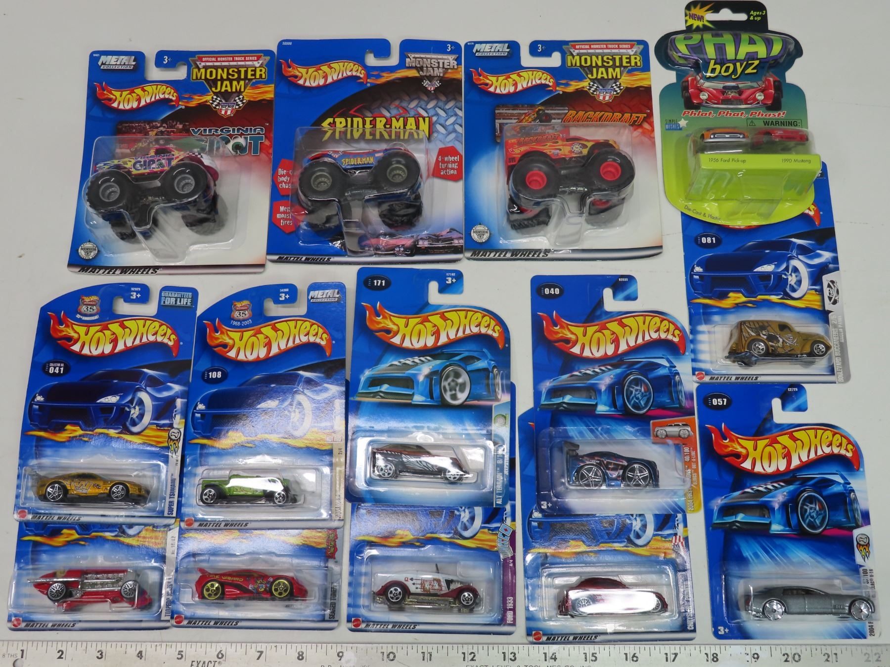 13 Hotwheel Cars/monster trucks + Phat boyz – All brand new in sealed packaging