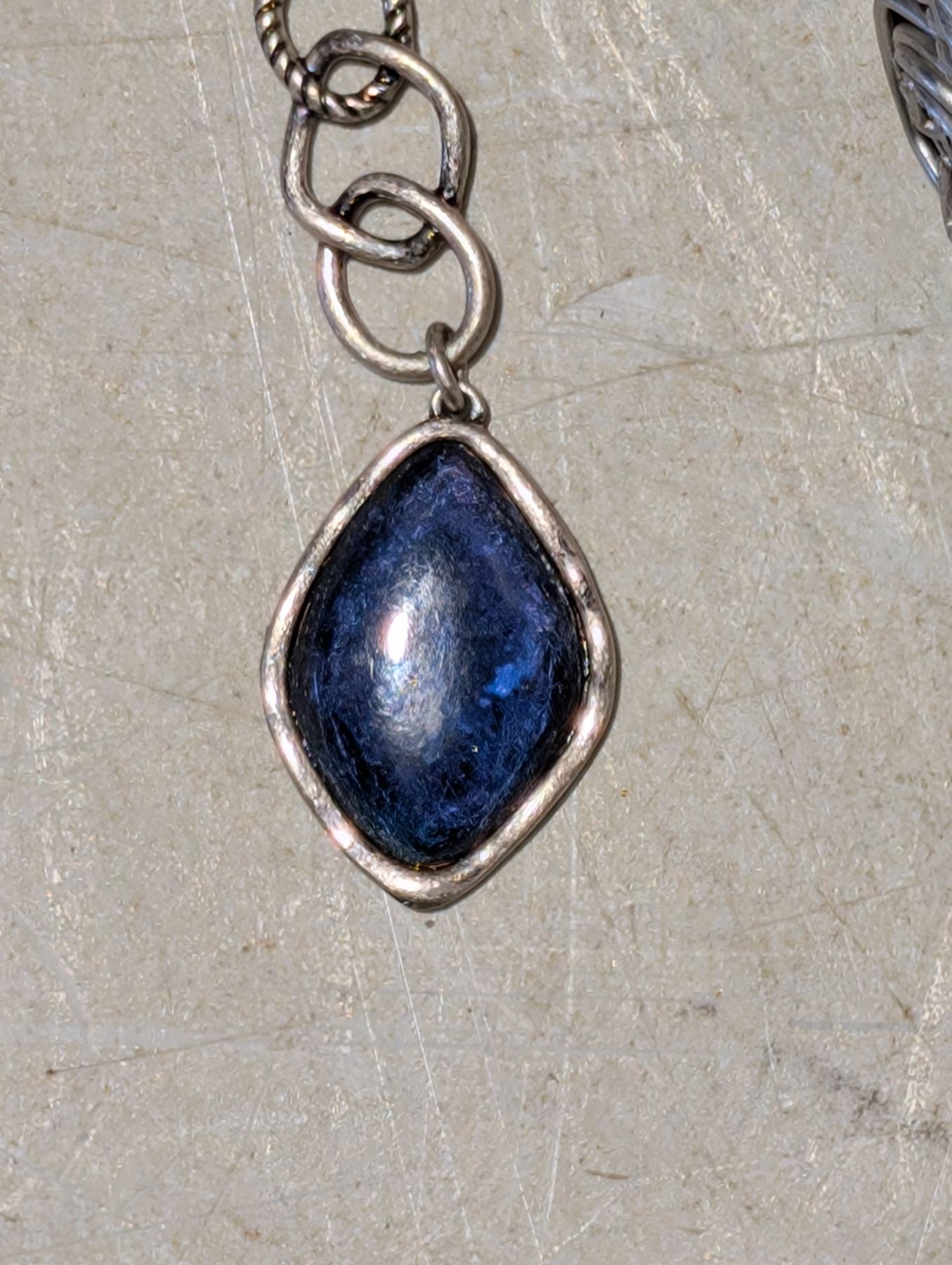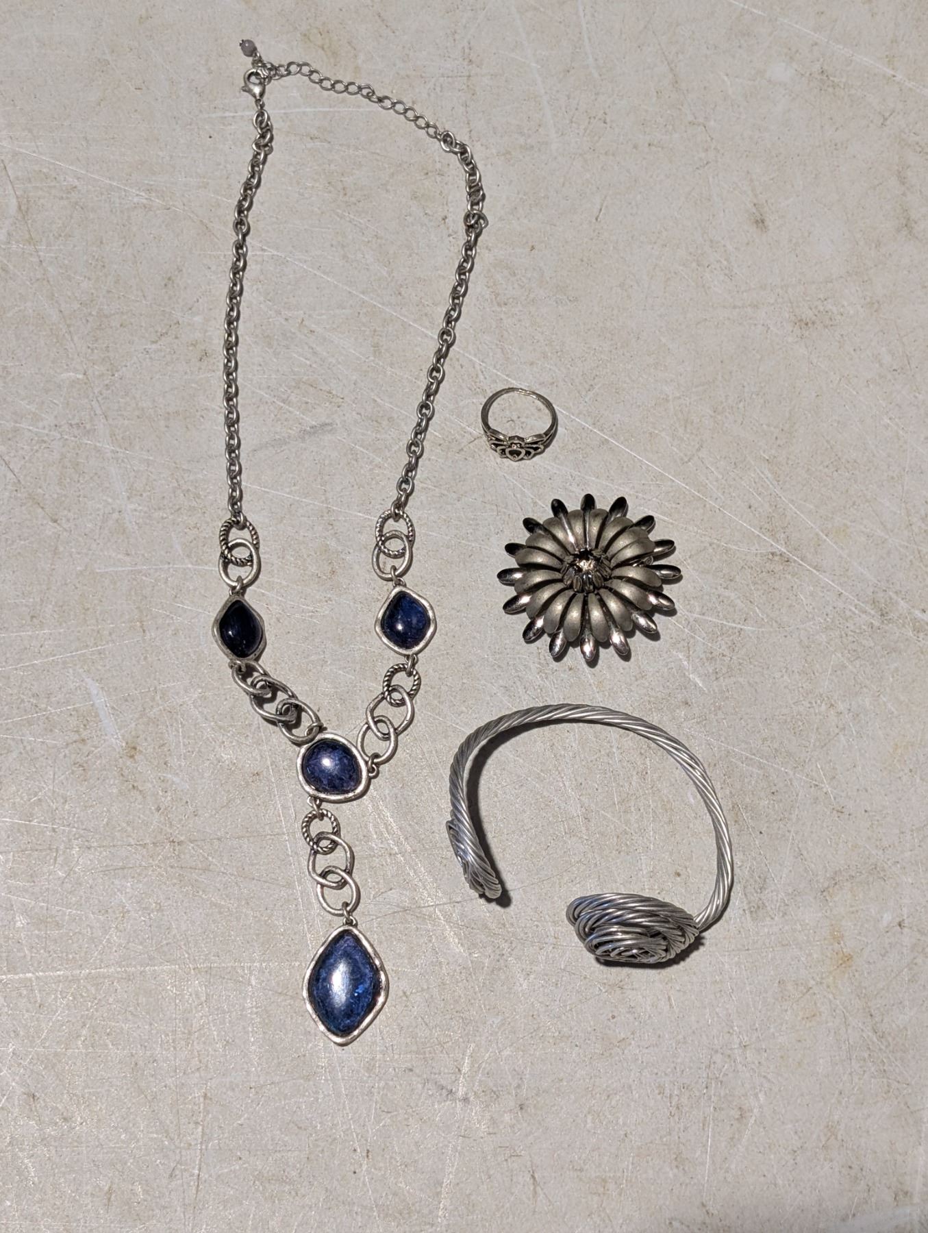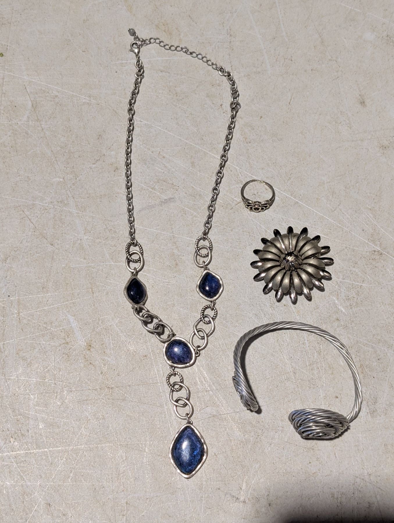 13" Nina Ricci Necklace Silver w/ Blue Stones -50mm Metal Flower Brooch/Silver Ring