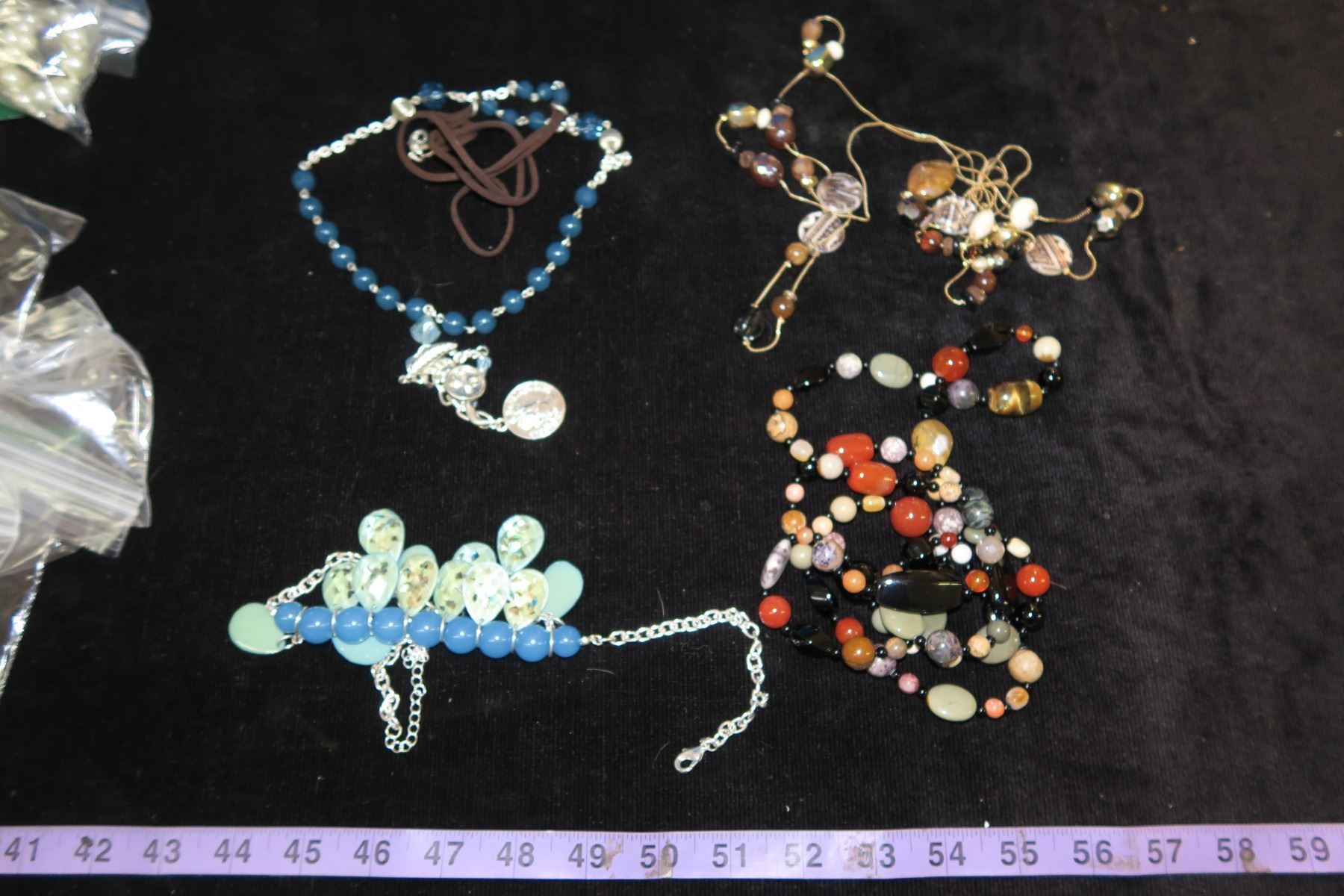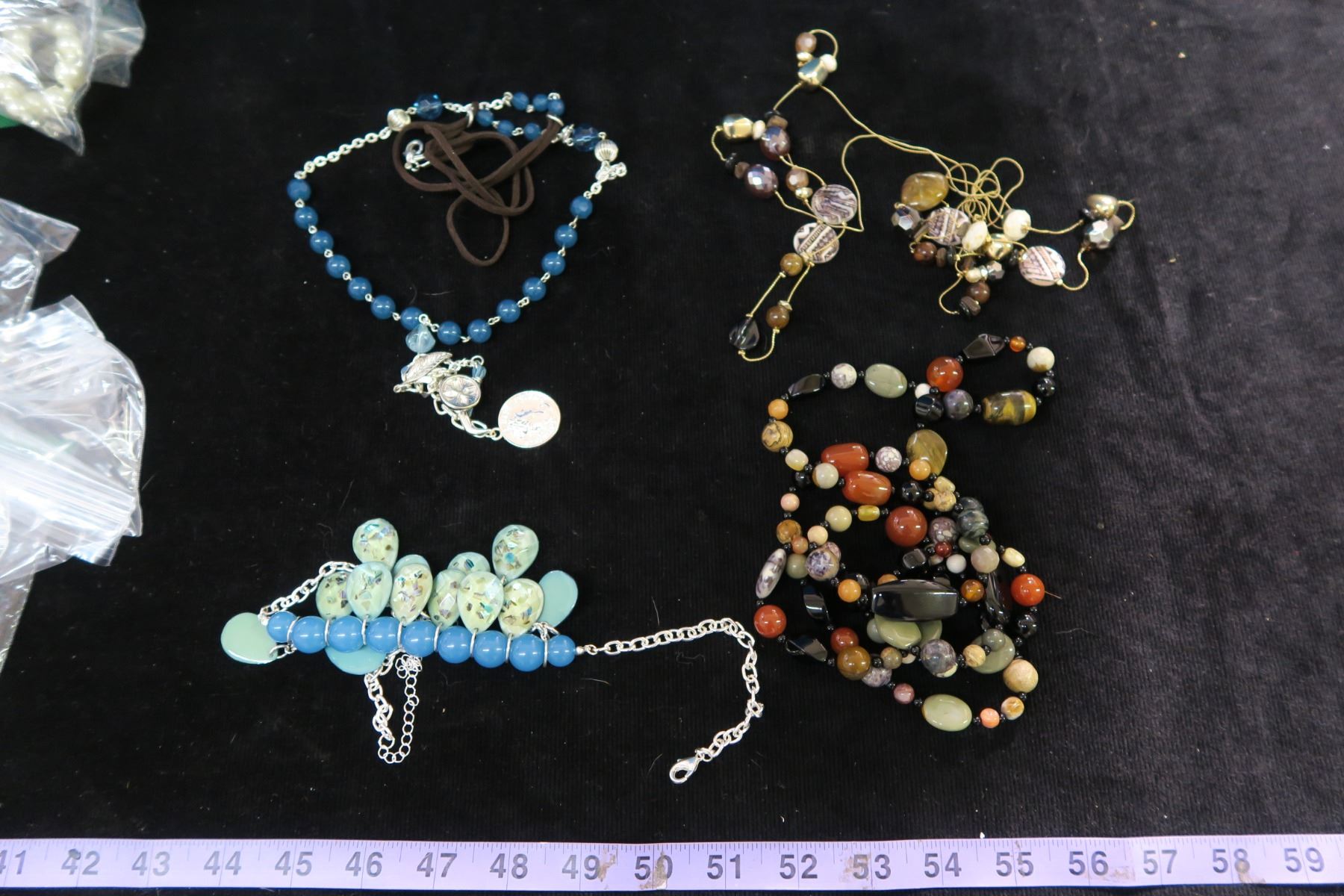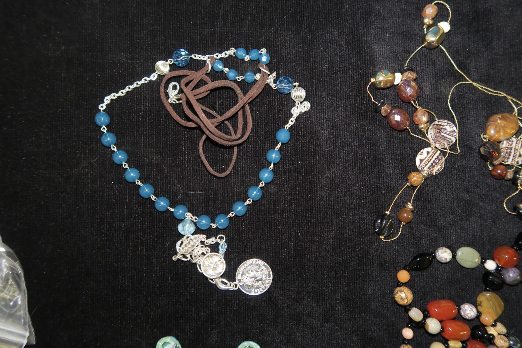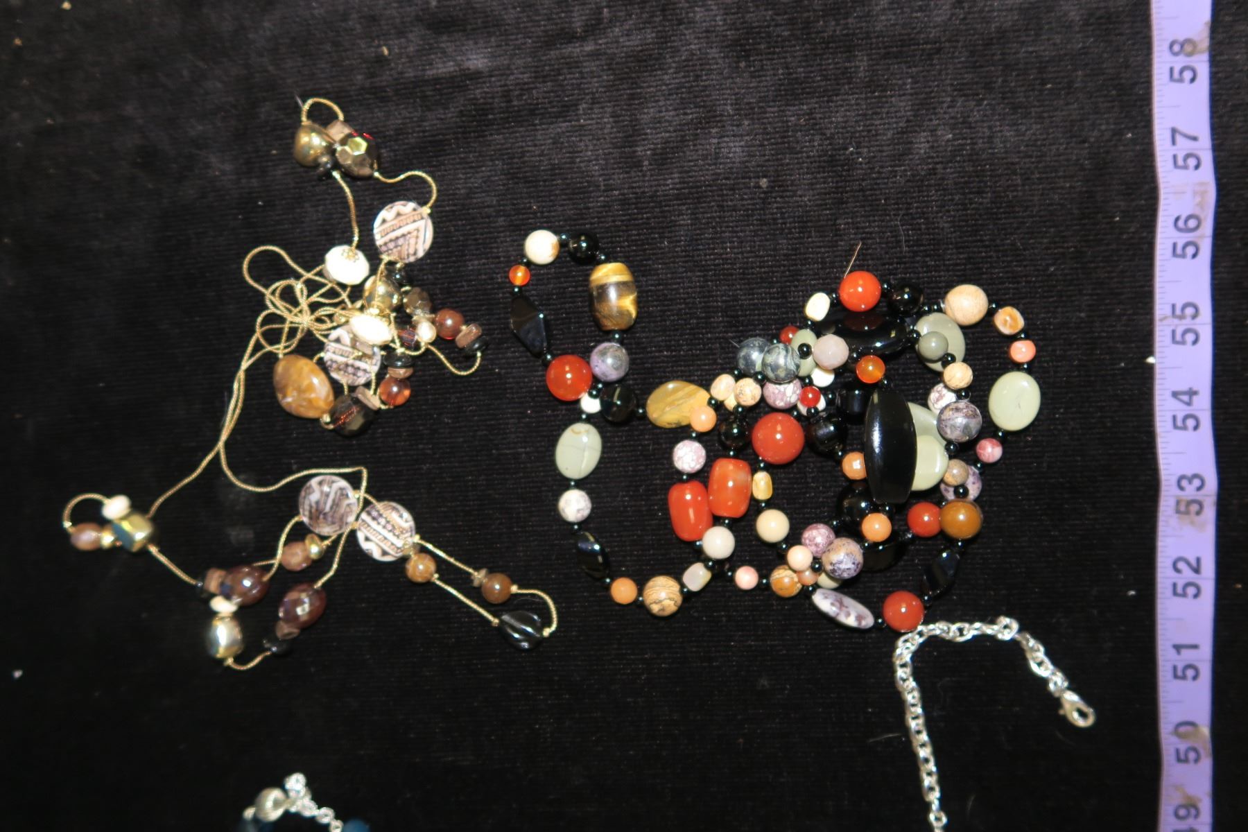 #1318 - Estate Costume Jewelry - Blue Bead Necklace, Blue Beaded Bracelet & 2 Brown Bead Neckalces