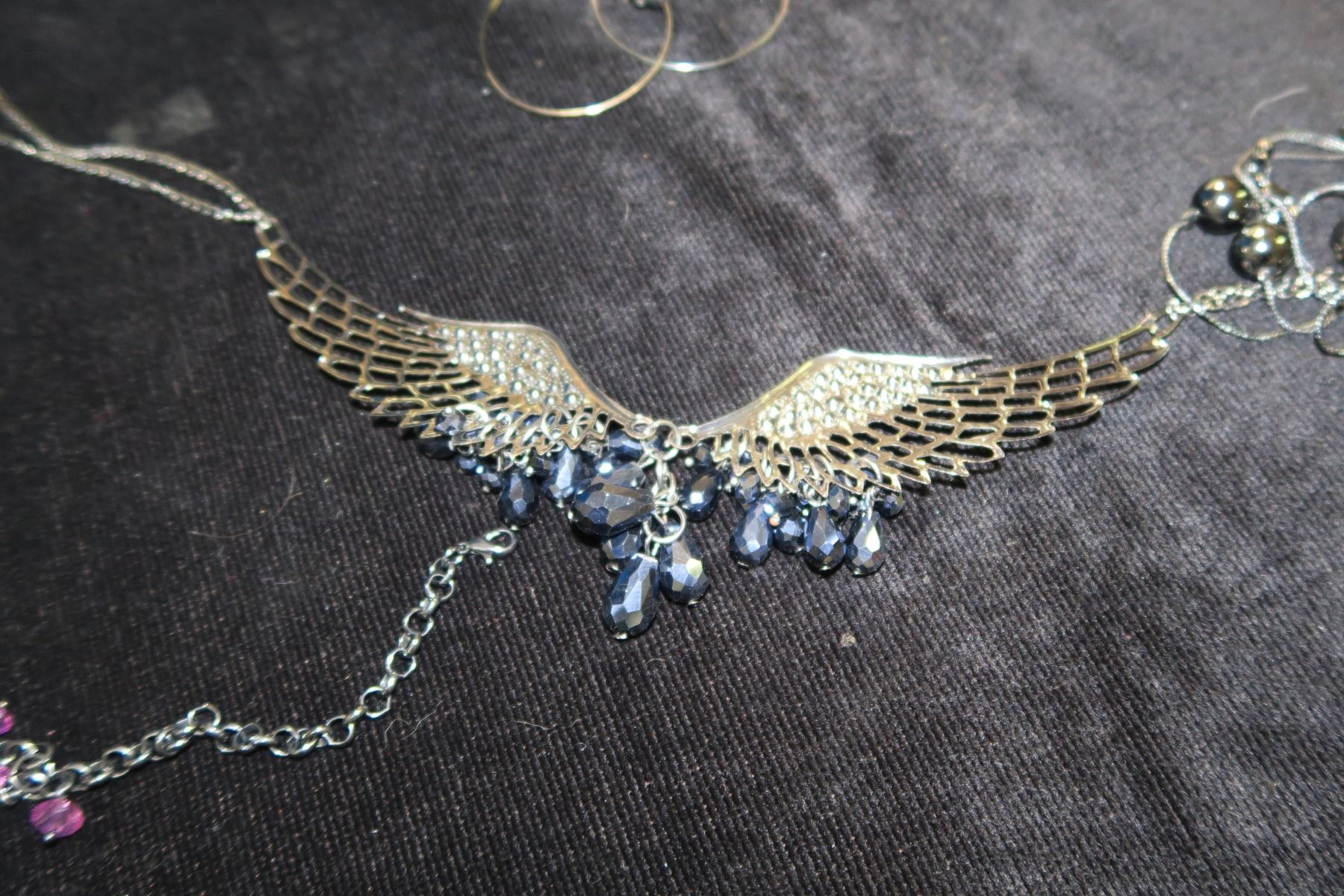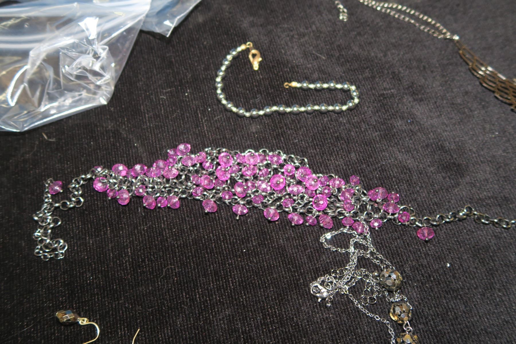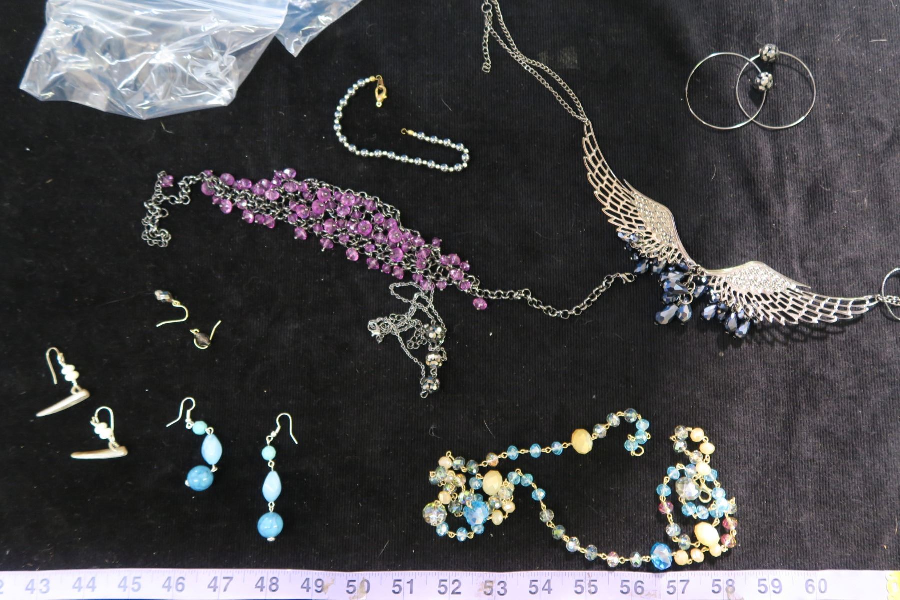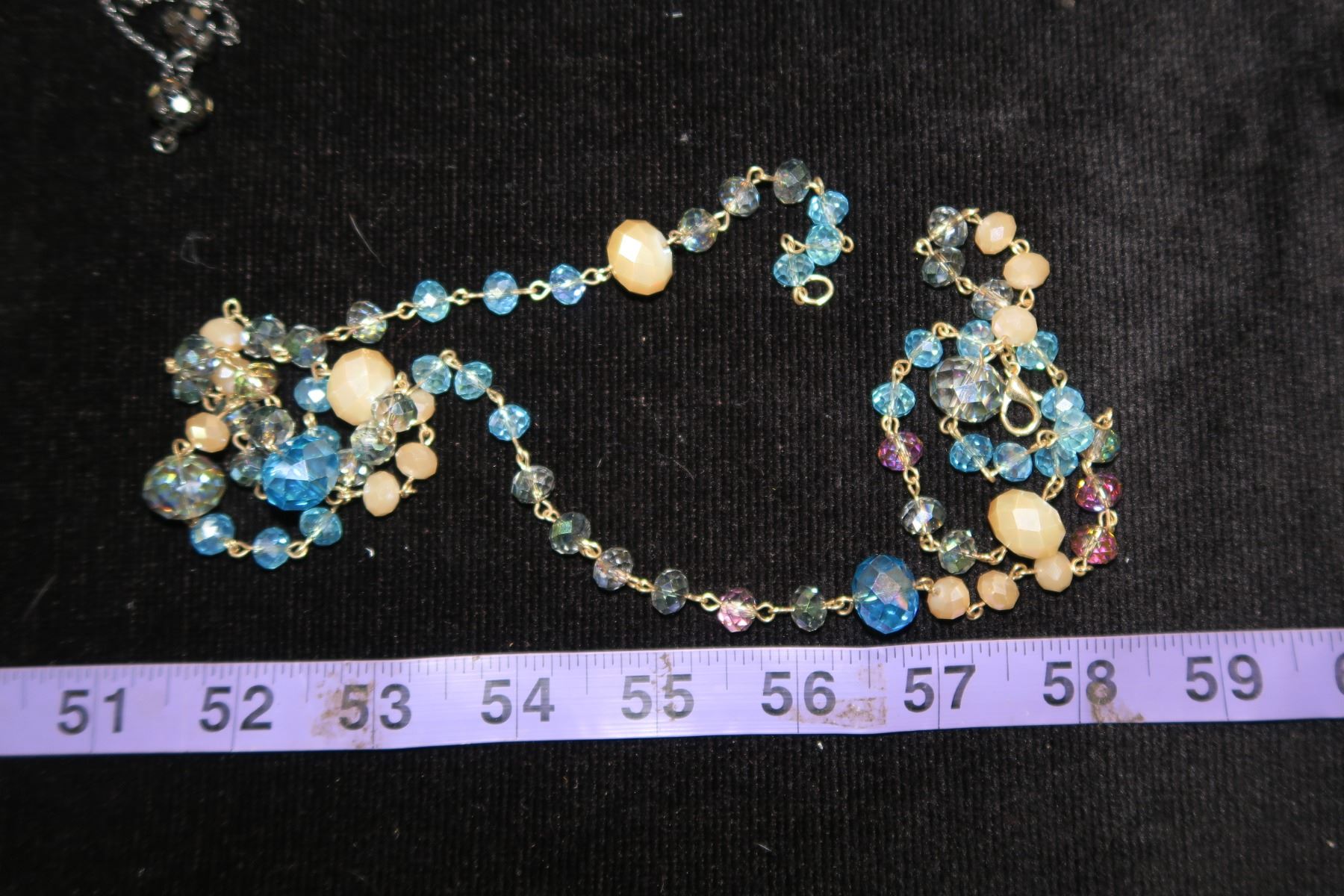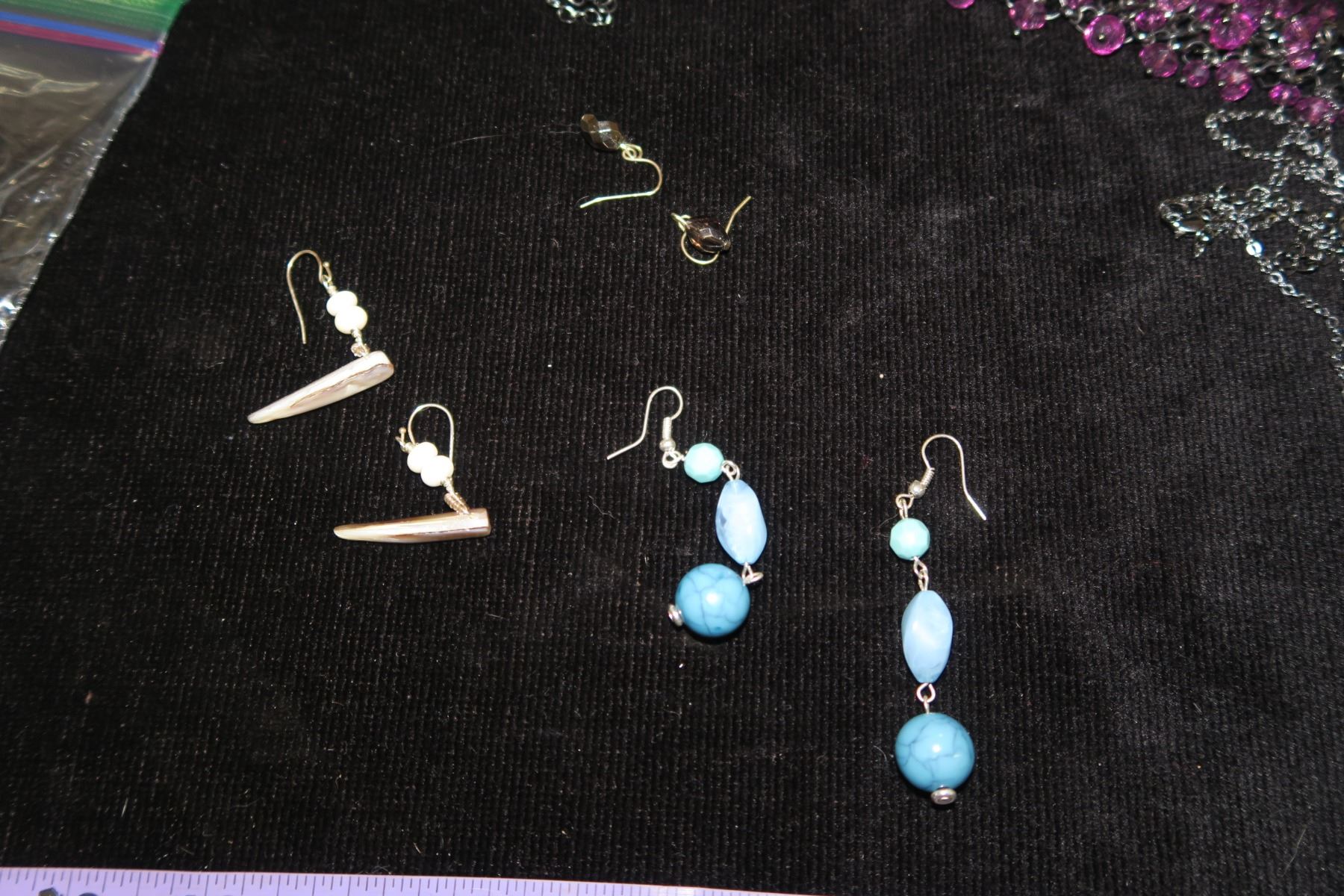 #1319 - Estate Costume Jewelry - Mother of Pearl Whale Bone Bead Earrings, blue bead earrings, 2 faux black diamond beaded necklaces and blue & Tan Beaded Necklace