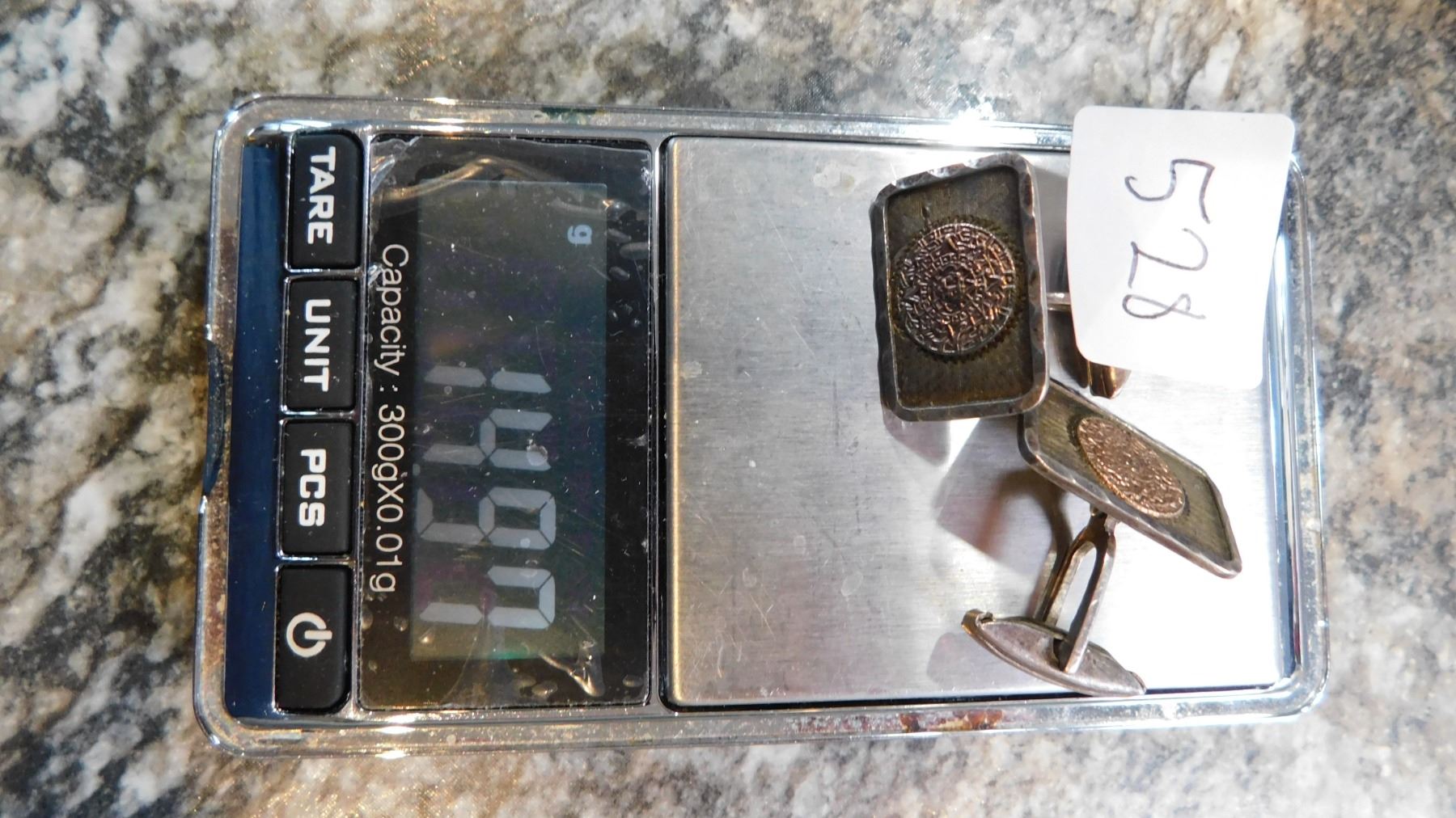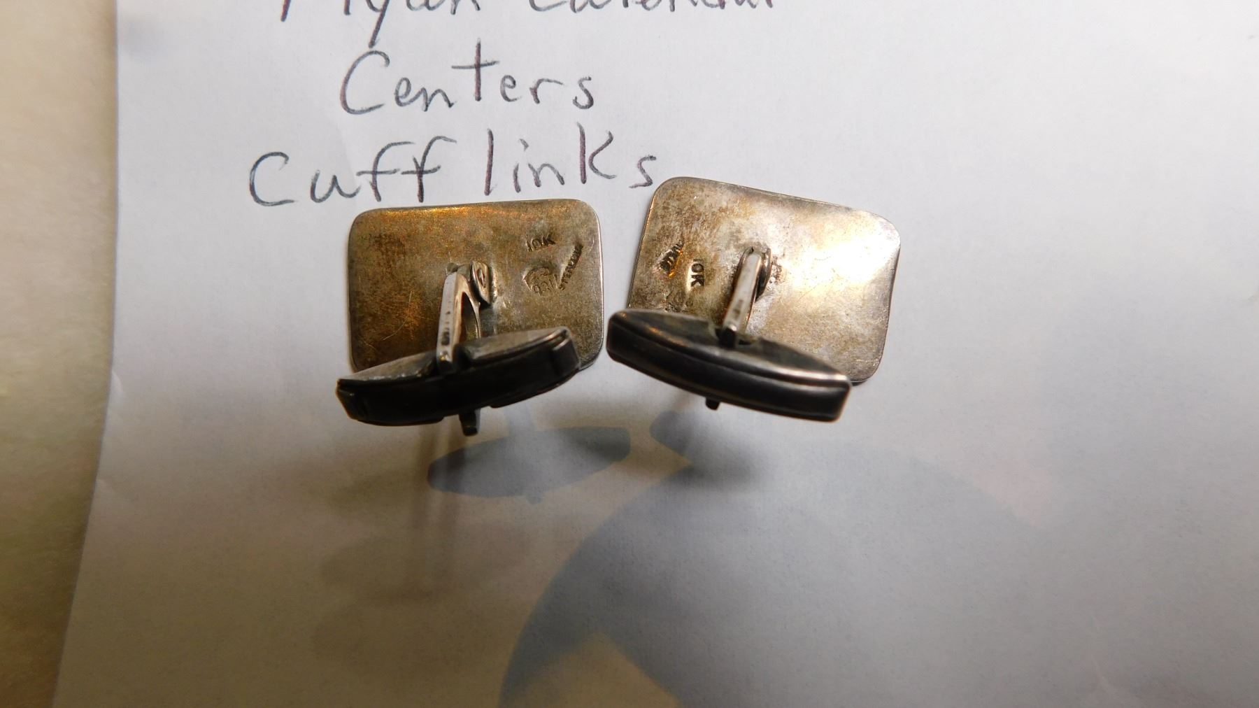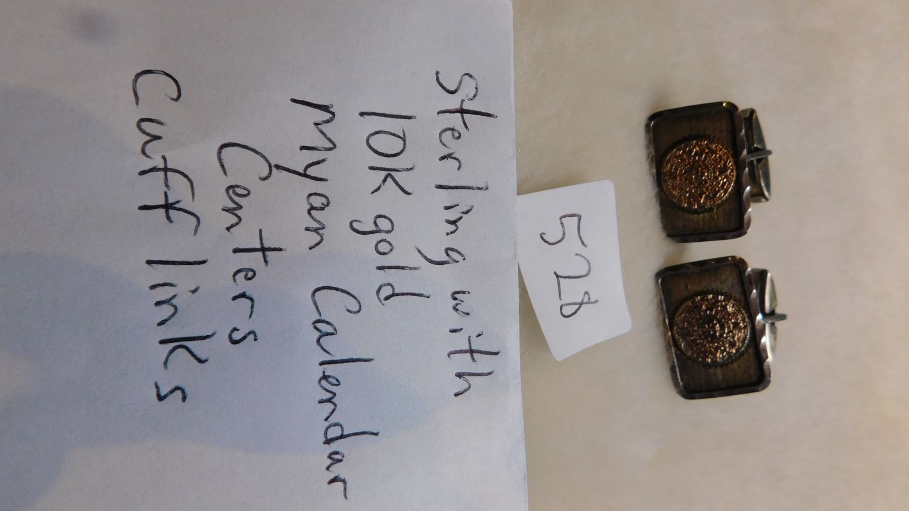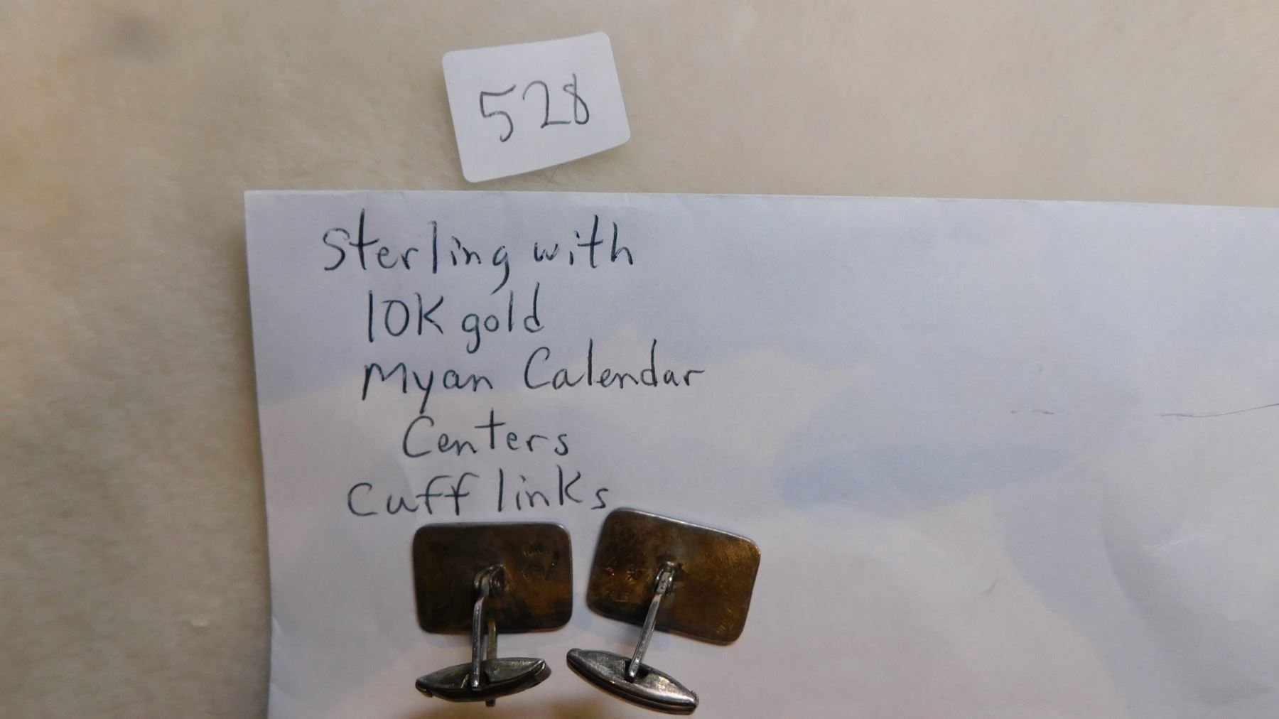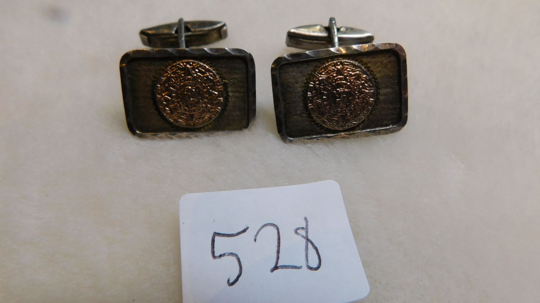 14.9g, STERLING WITH 10K GOLD MAYAN CALANDER CENTER CUFFLINKS