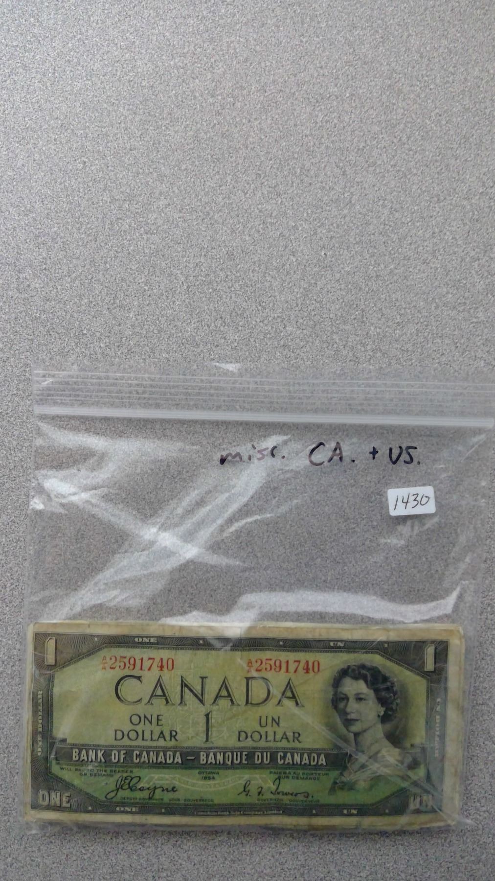 14 Can $1 Bills ( 1954, 1967 (8), 1973(5)) and 2 USA $1 Bills 1986 and 1988 in Plastic Bag