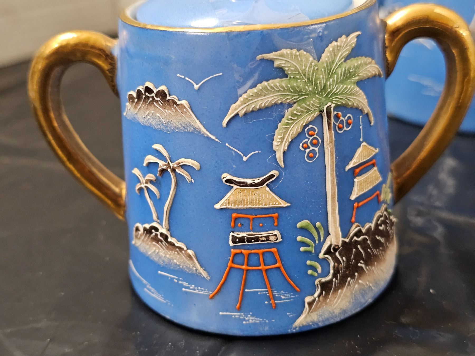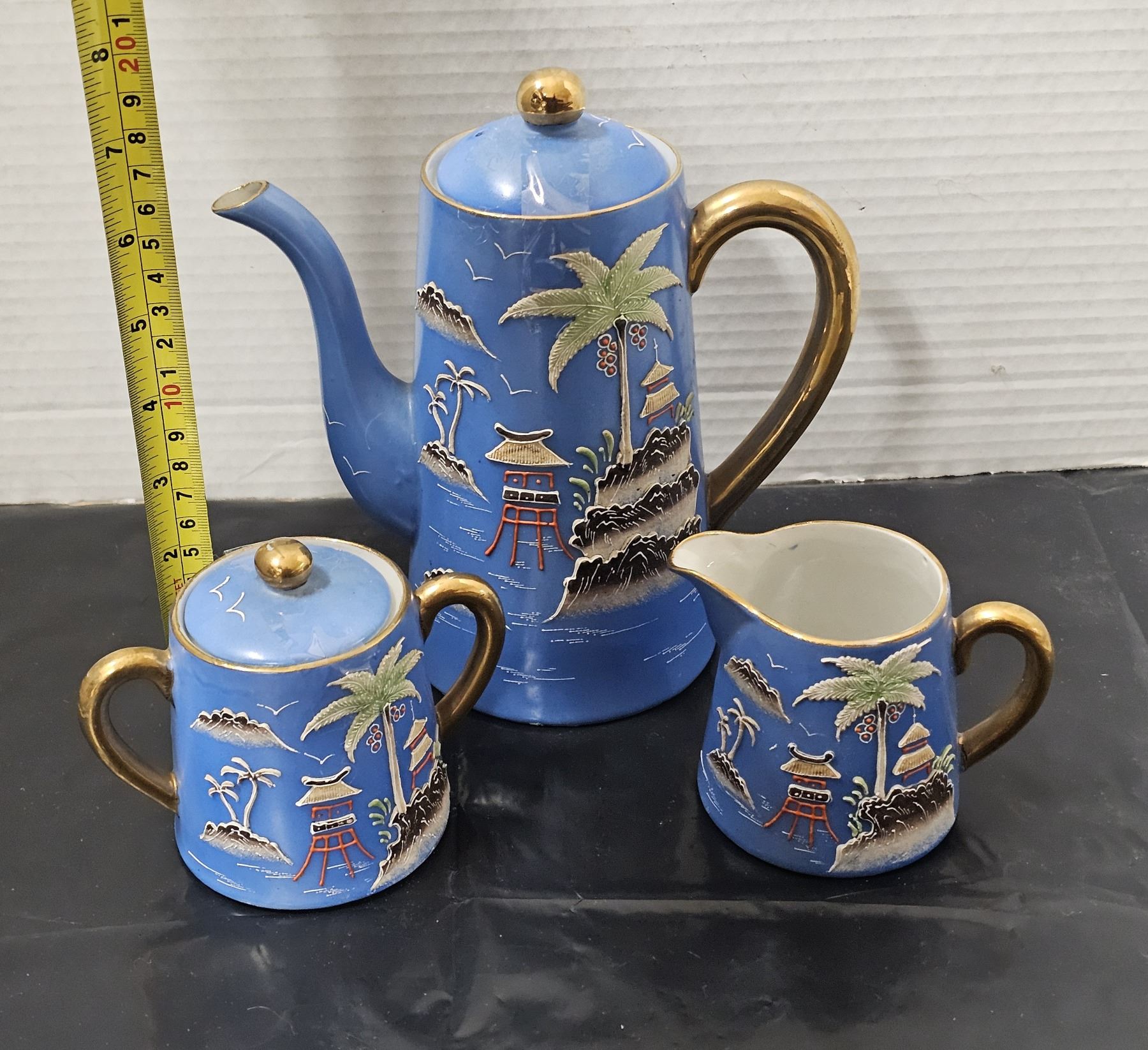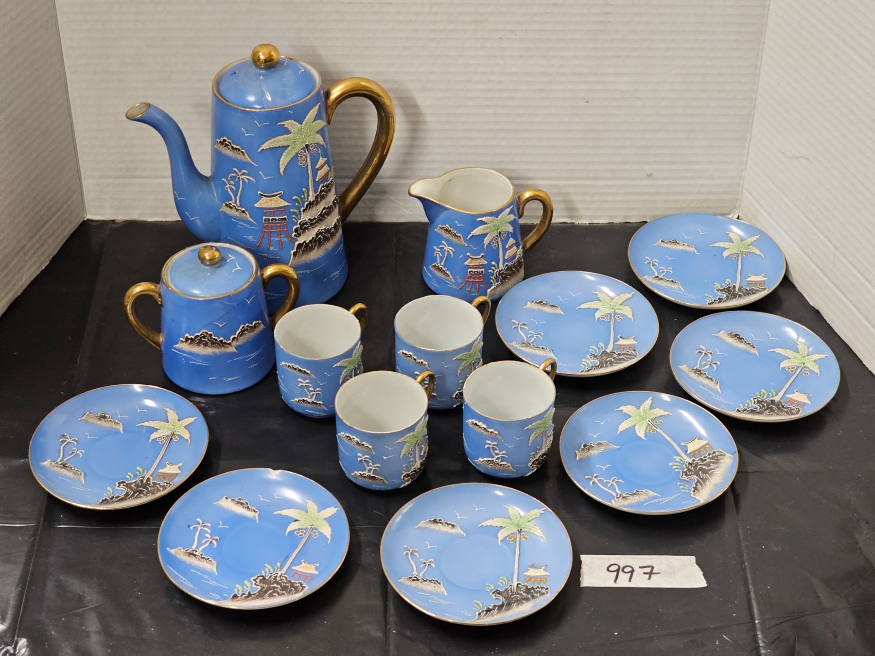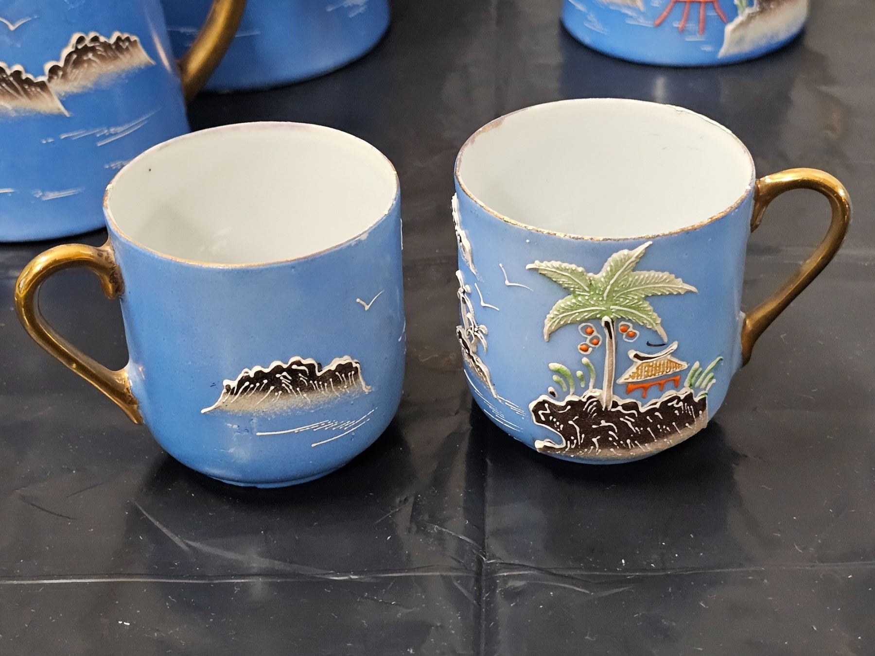(14) Piece Japanese Moriage Hand Painted Porcelain Tea Set