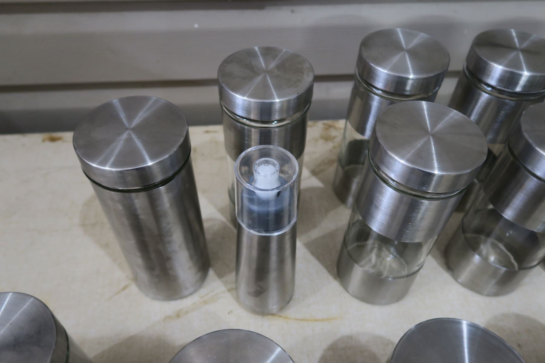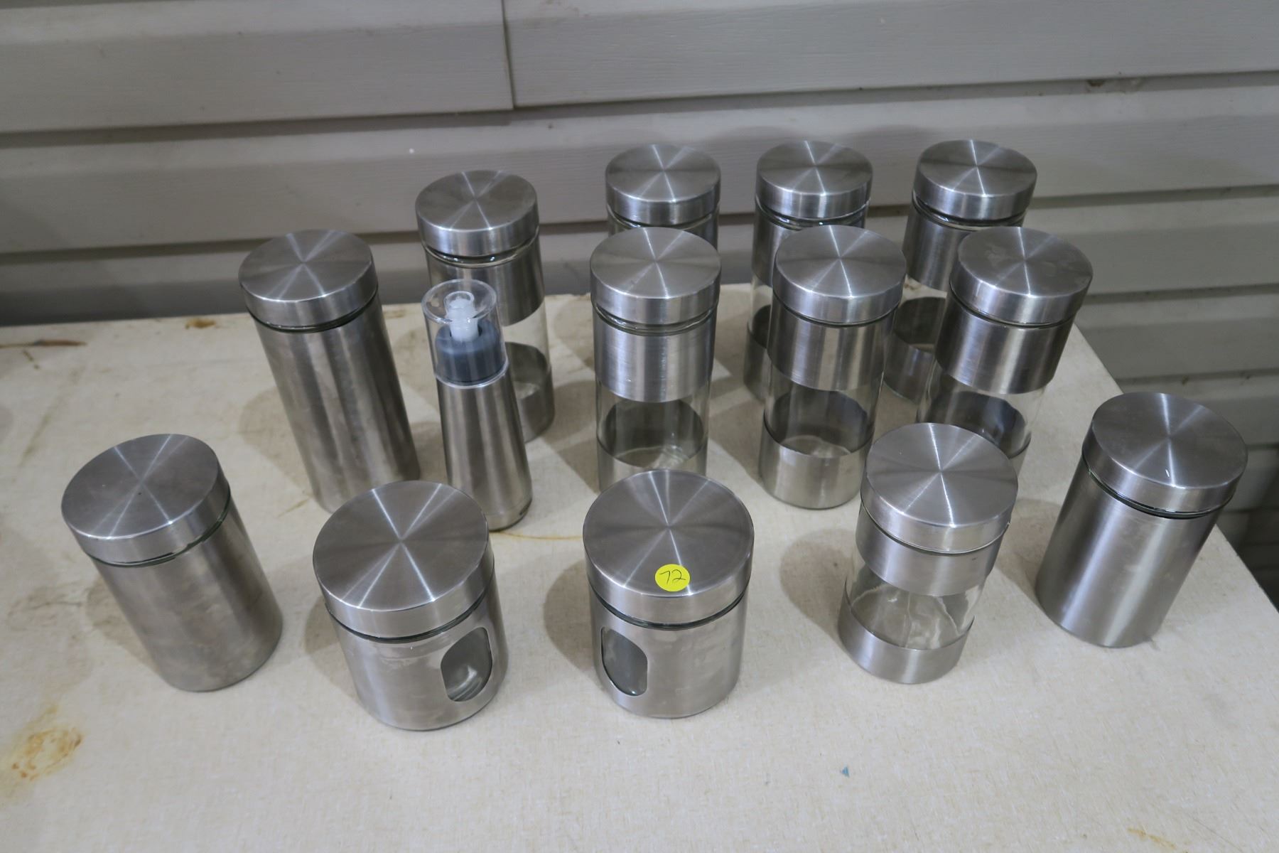 14 Piece Stainless Steel / Glass Jars and Kitchen Items