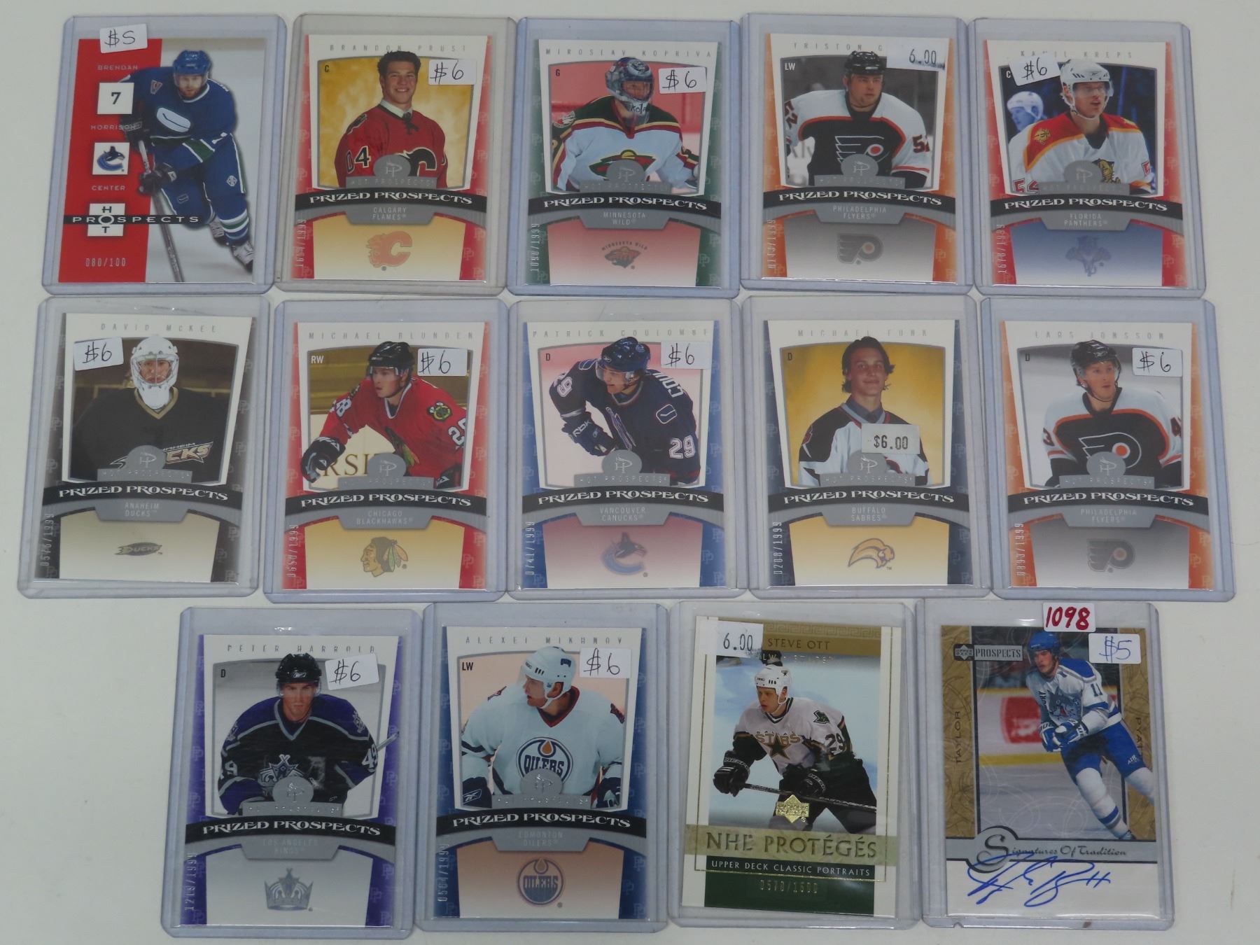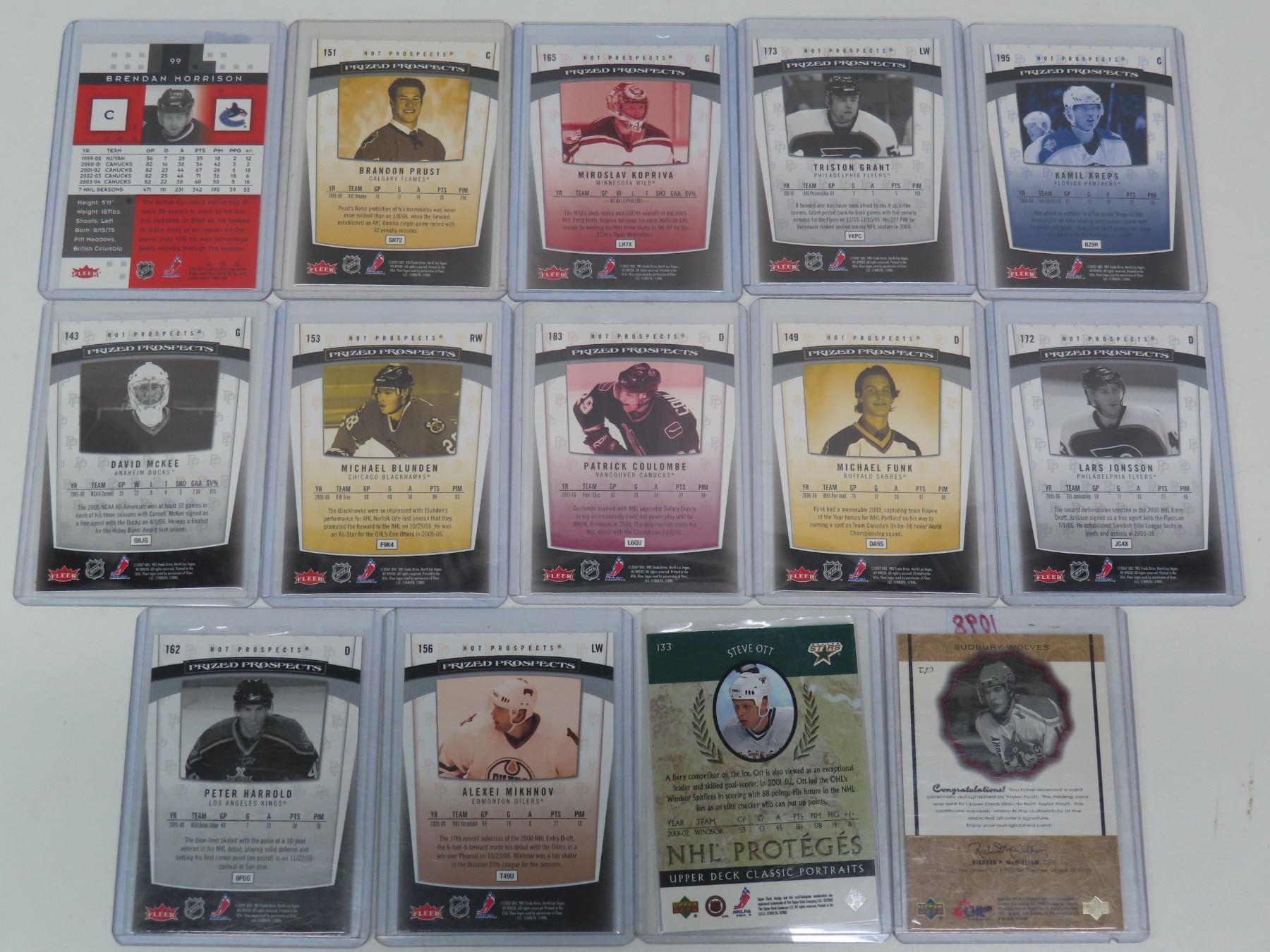 14 assorted "Hot Prospects" Fleer, & UpperDeck hockey cards - in plastic holders