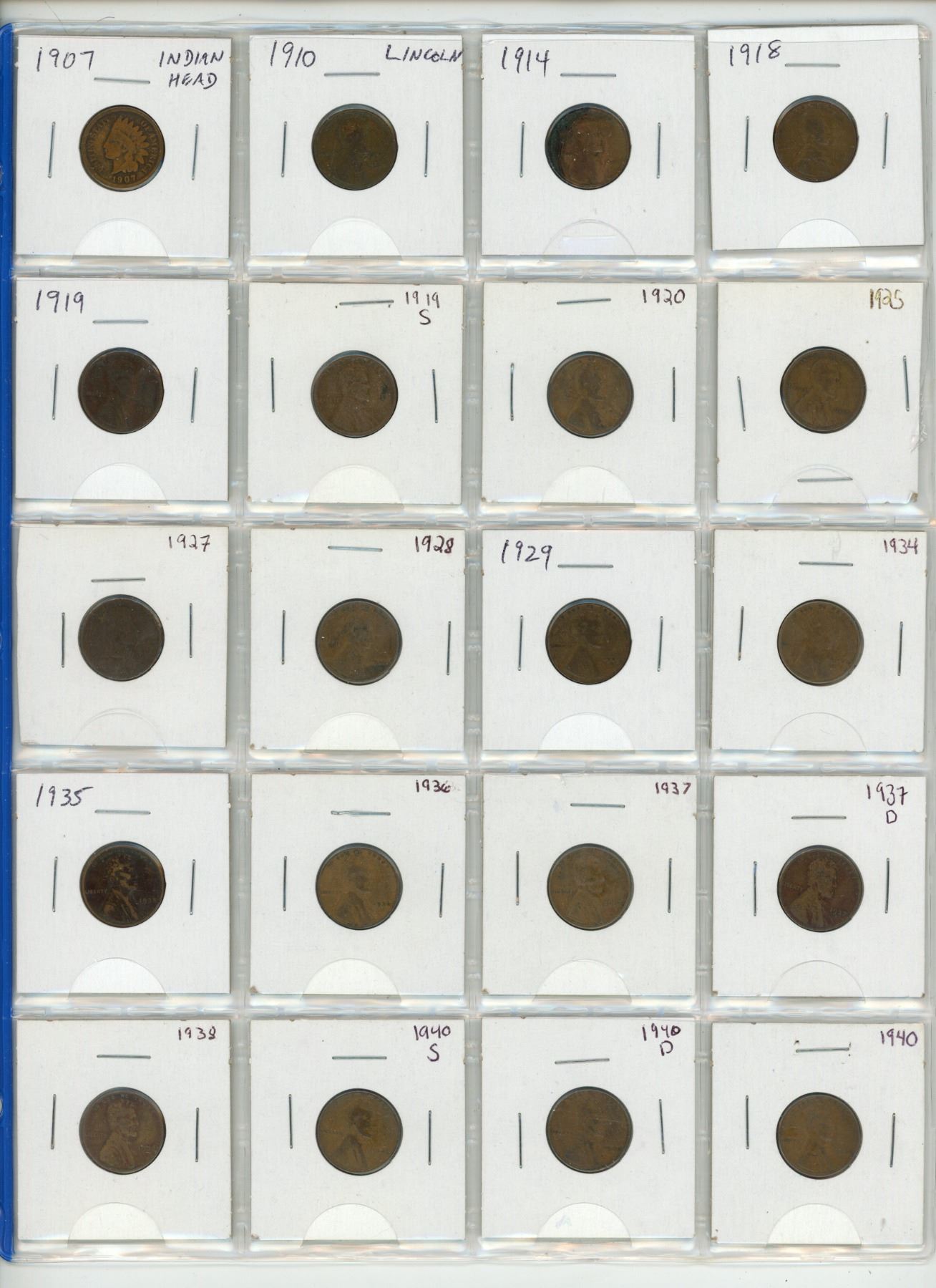142 U.S. Indian Head & Lincoln Cents. Coins date from 1907 – 2008D. Housed in a 3-ring binder. Coins grade up to BU Red.