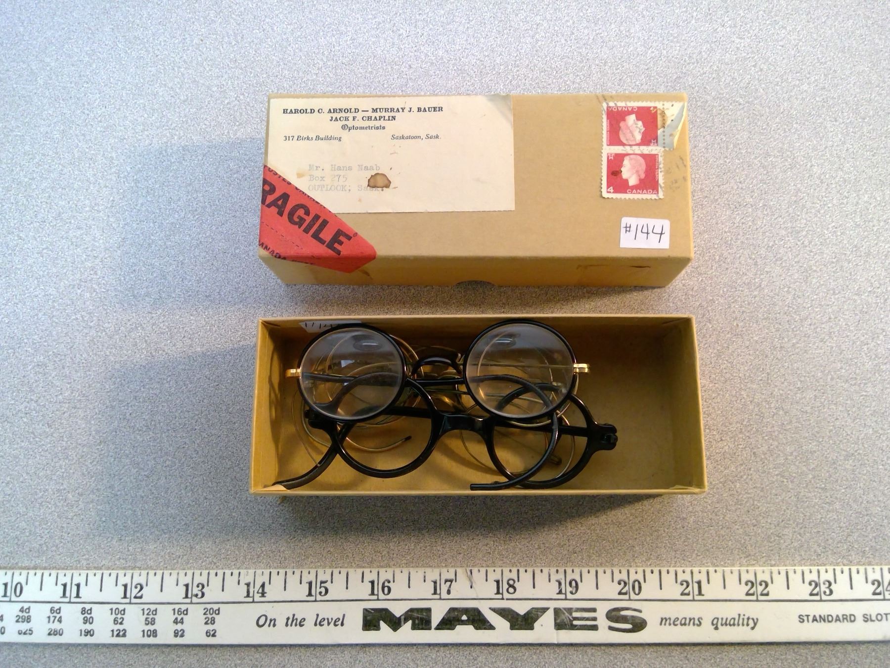 144. Box of vintage eye glass frames and lenses for parts