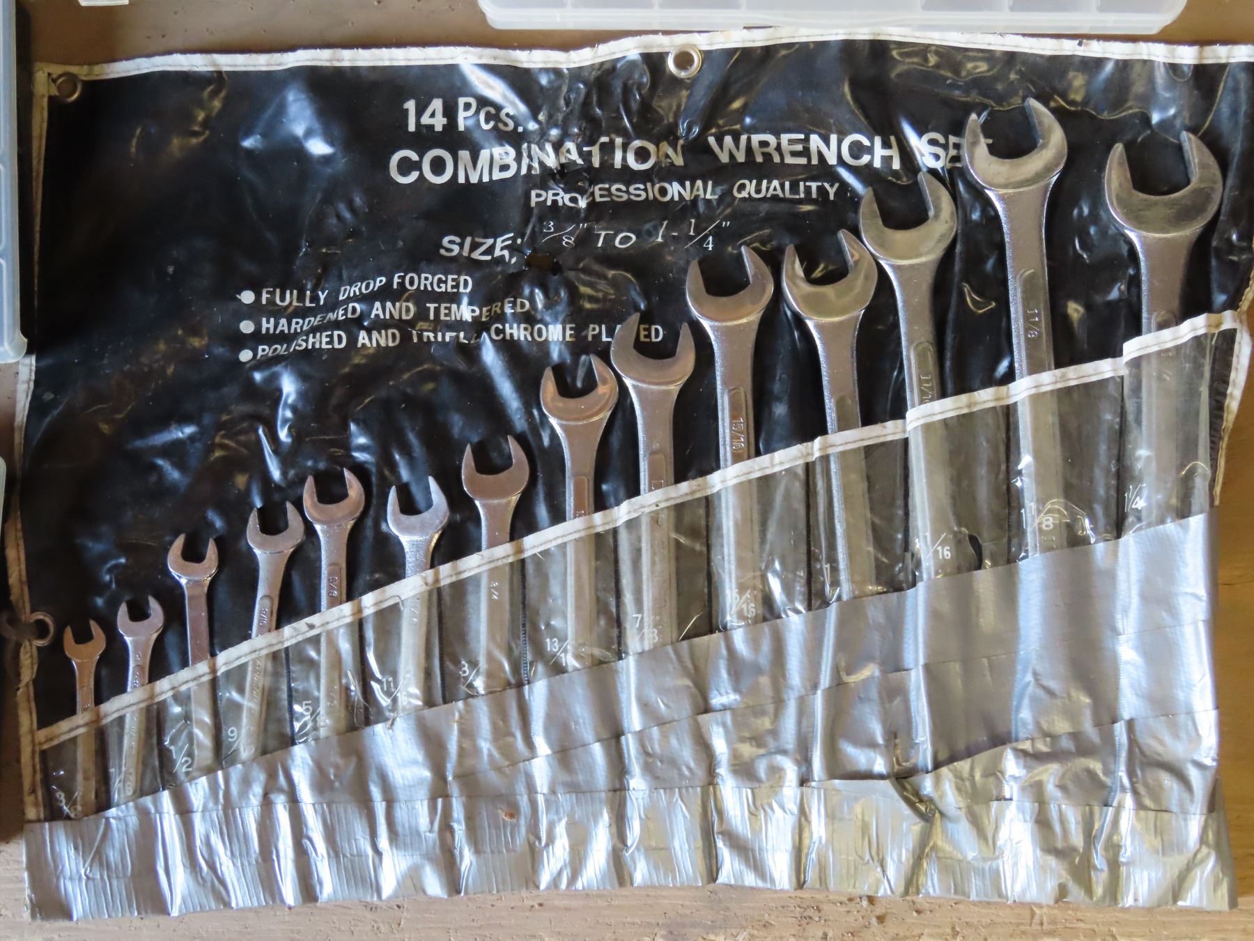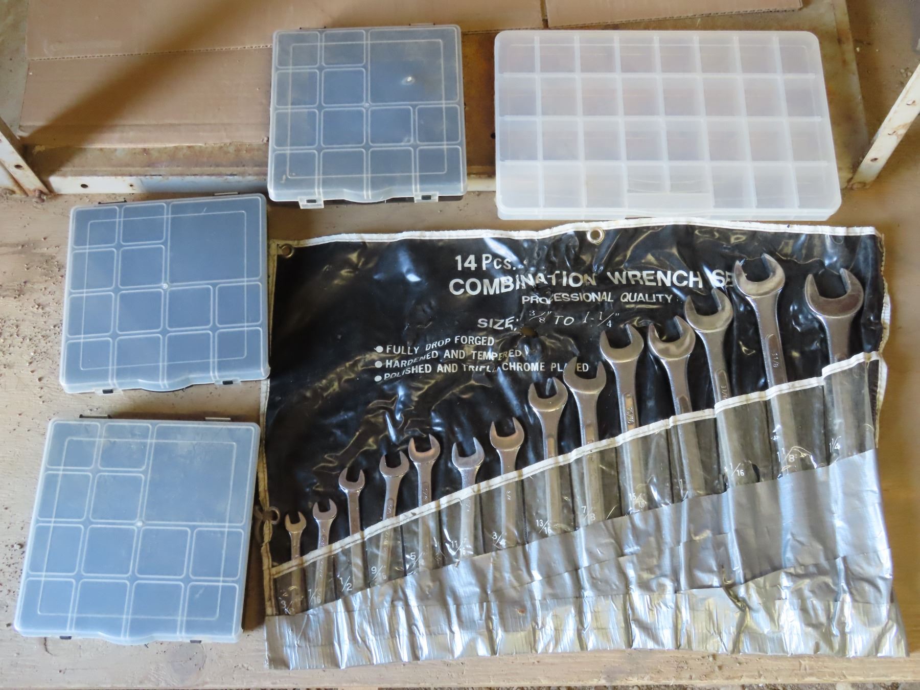 14pcs Combination wrench set 3/8" to 1 1/4" + 4 Nuts & Bolts storage containers