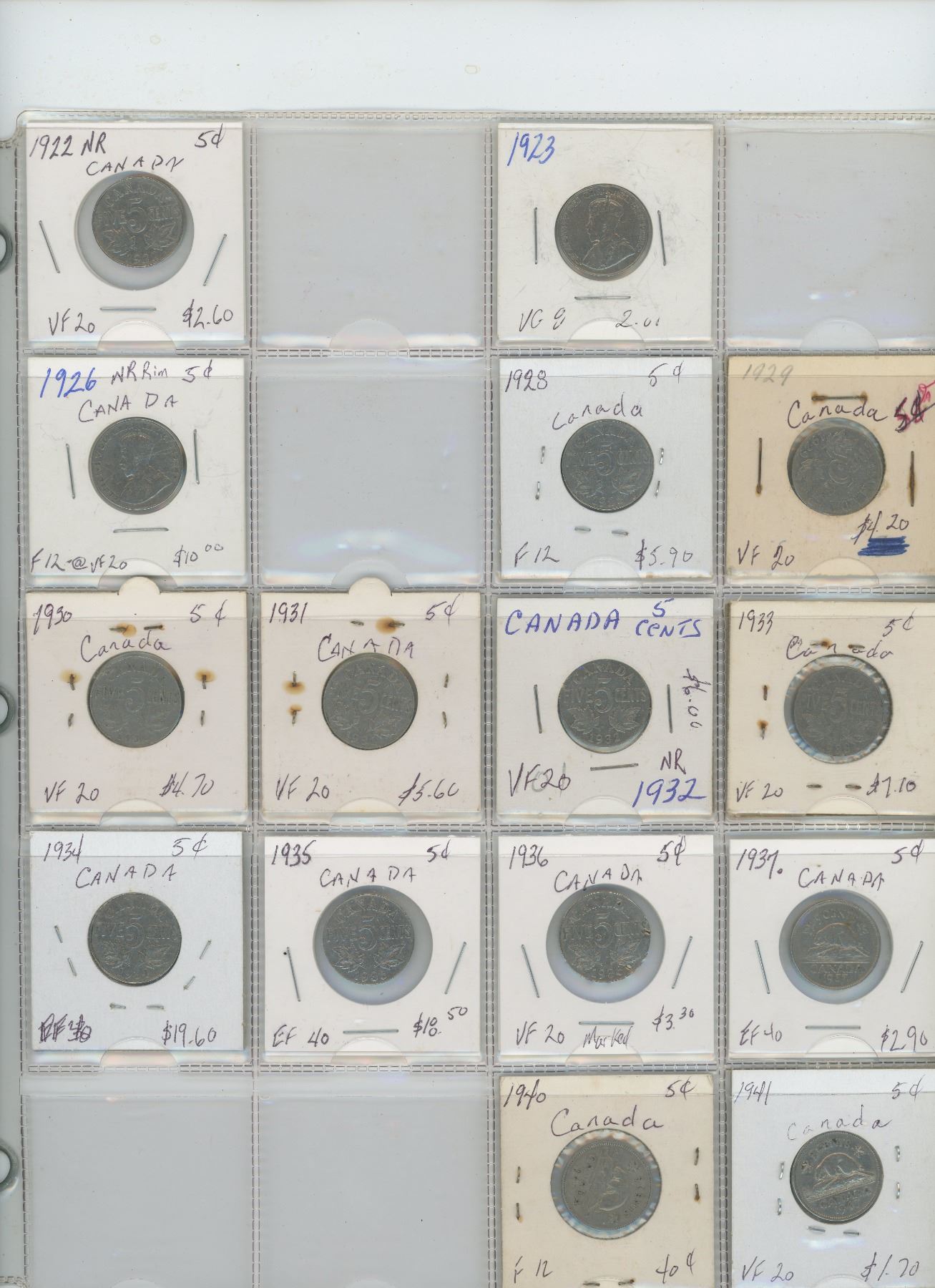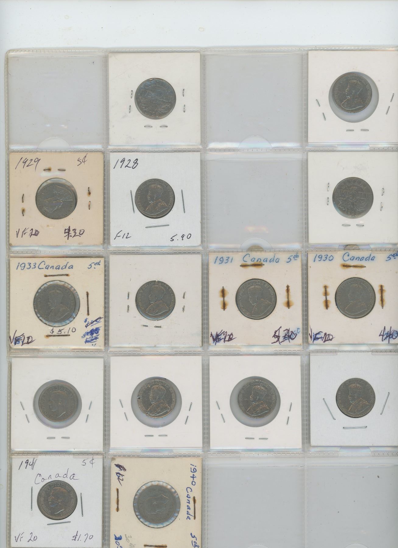 15 canadian Nickels 1920's, 30's and 40's