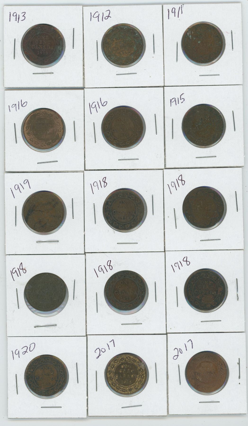 15-LARGE CENT CANADIAN 1911,1912,1913,1915,1916X2,1917X2,1918X5,199,1920