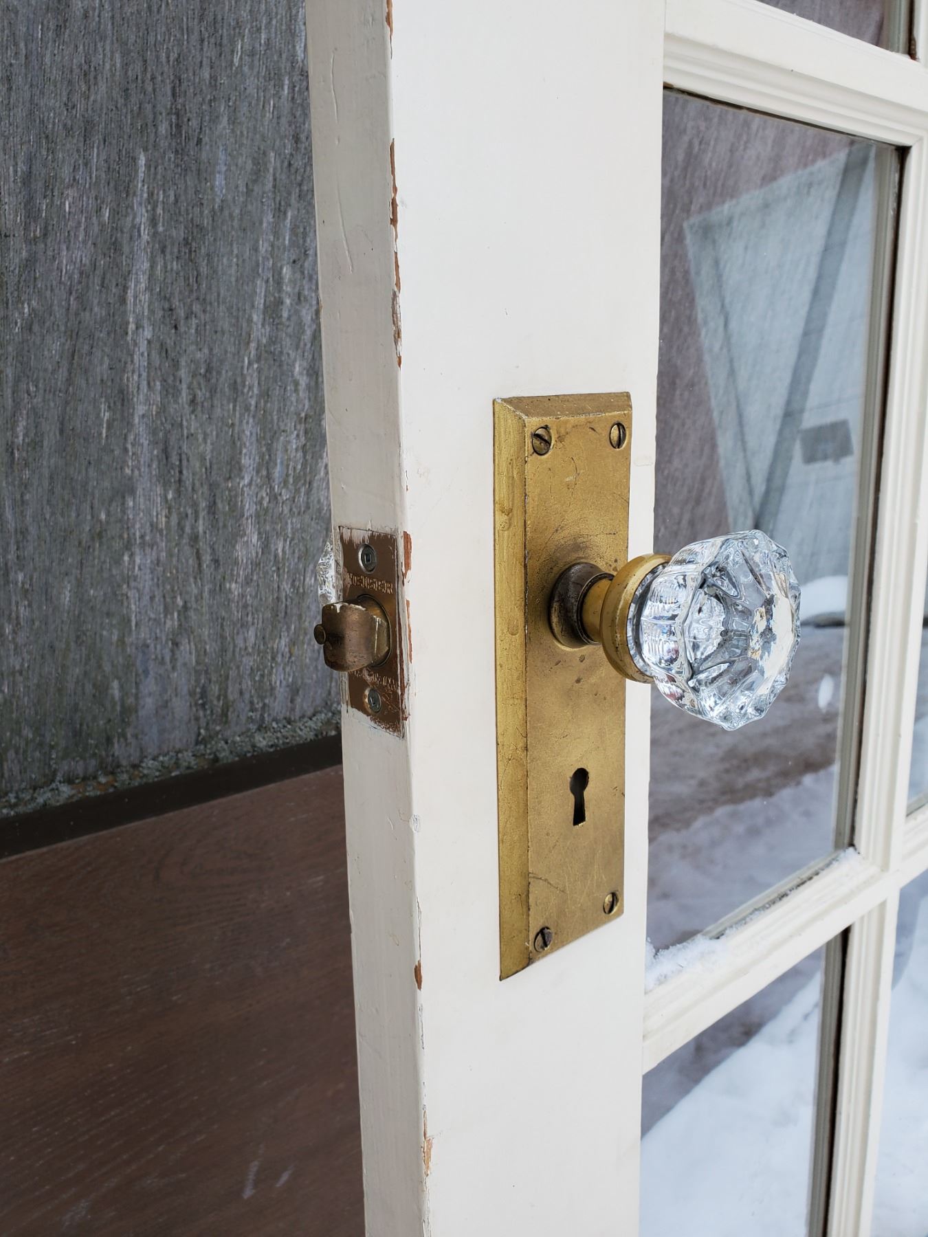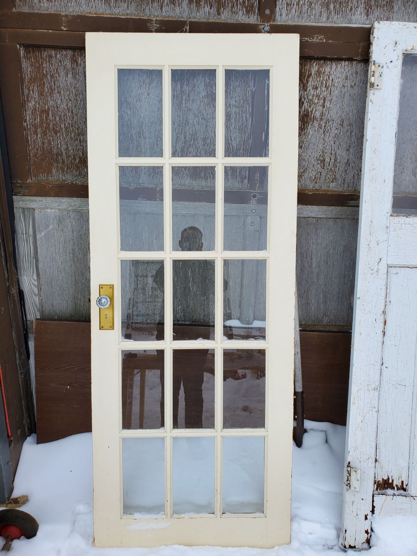 15 PANEL WOODEN DOOR W/ GLASS DOOR KNOB