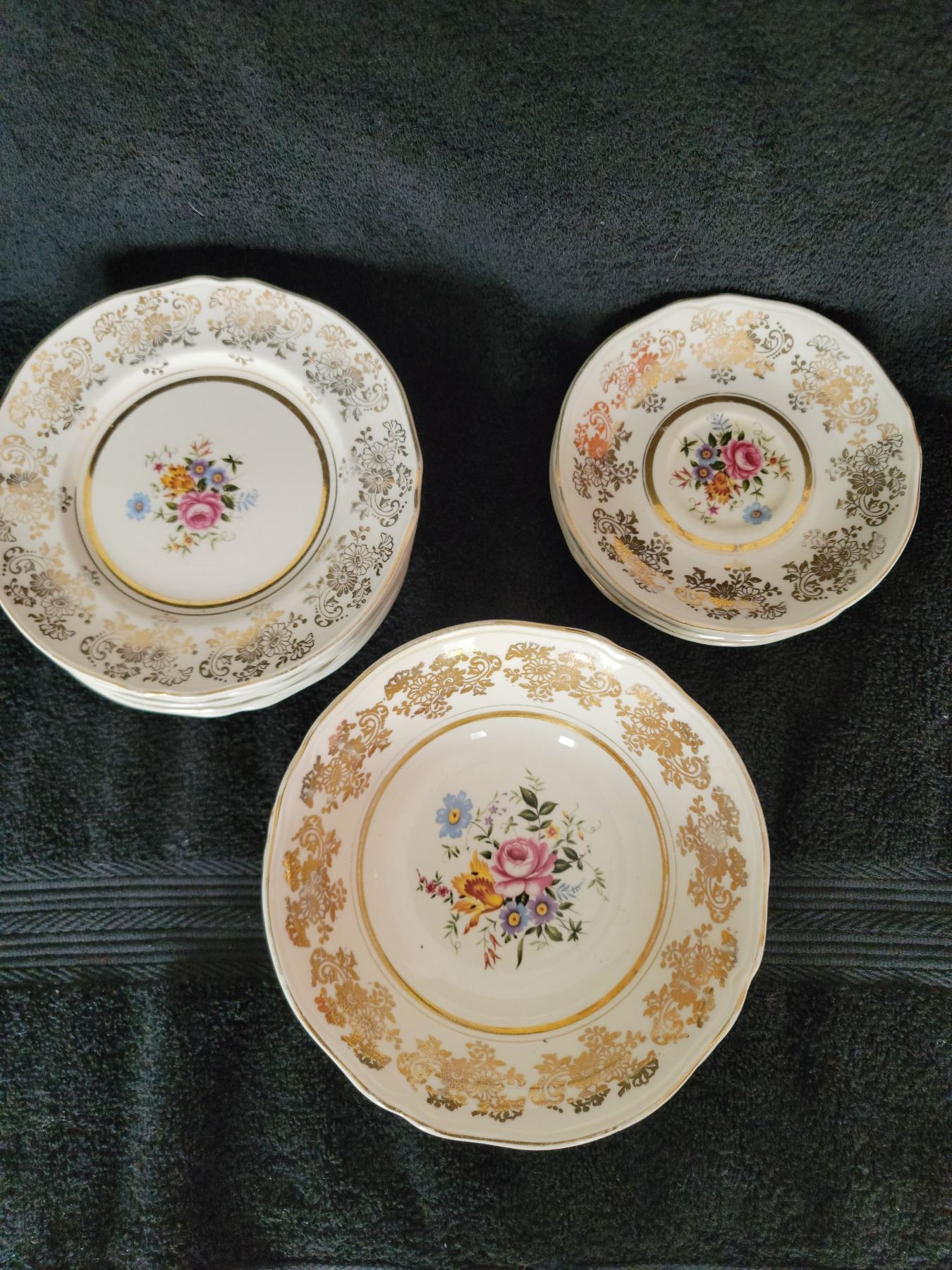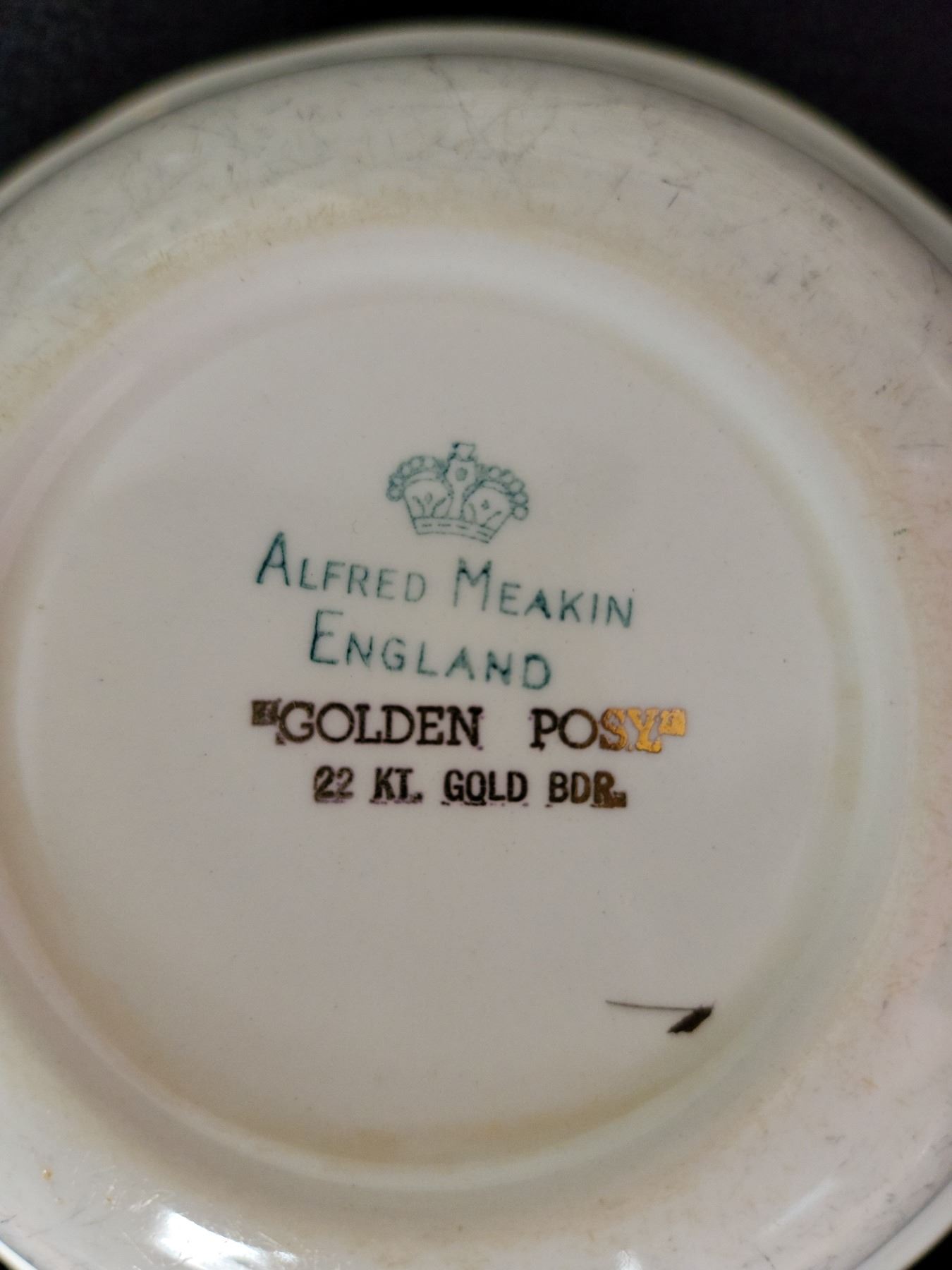 15 pieces of Alfred Meakin "Golden Posy" 22kt gold borders