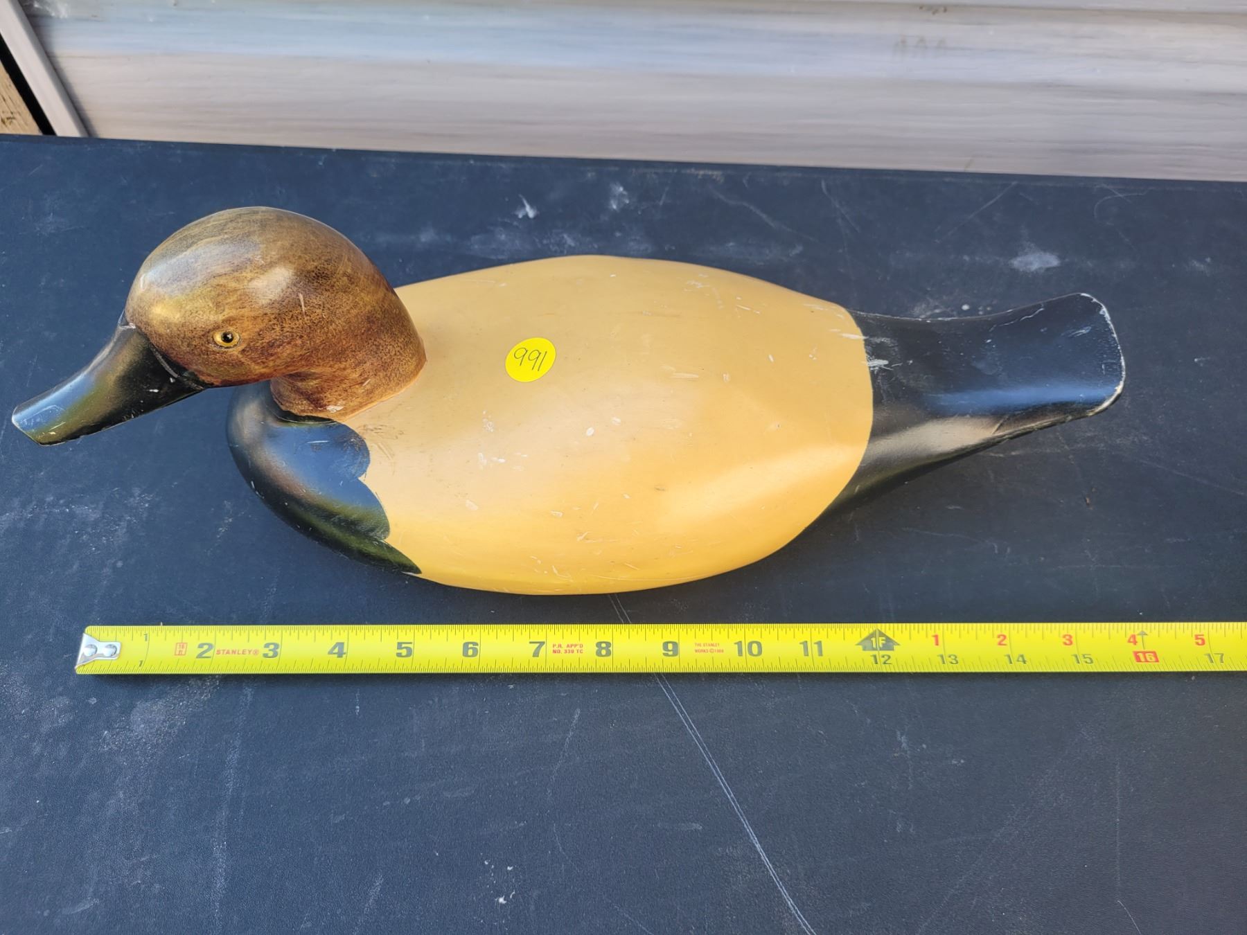 15" wooden duck decoy - glass eyes, nice paint