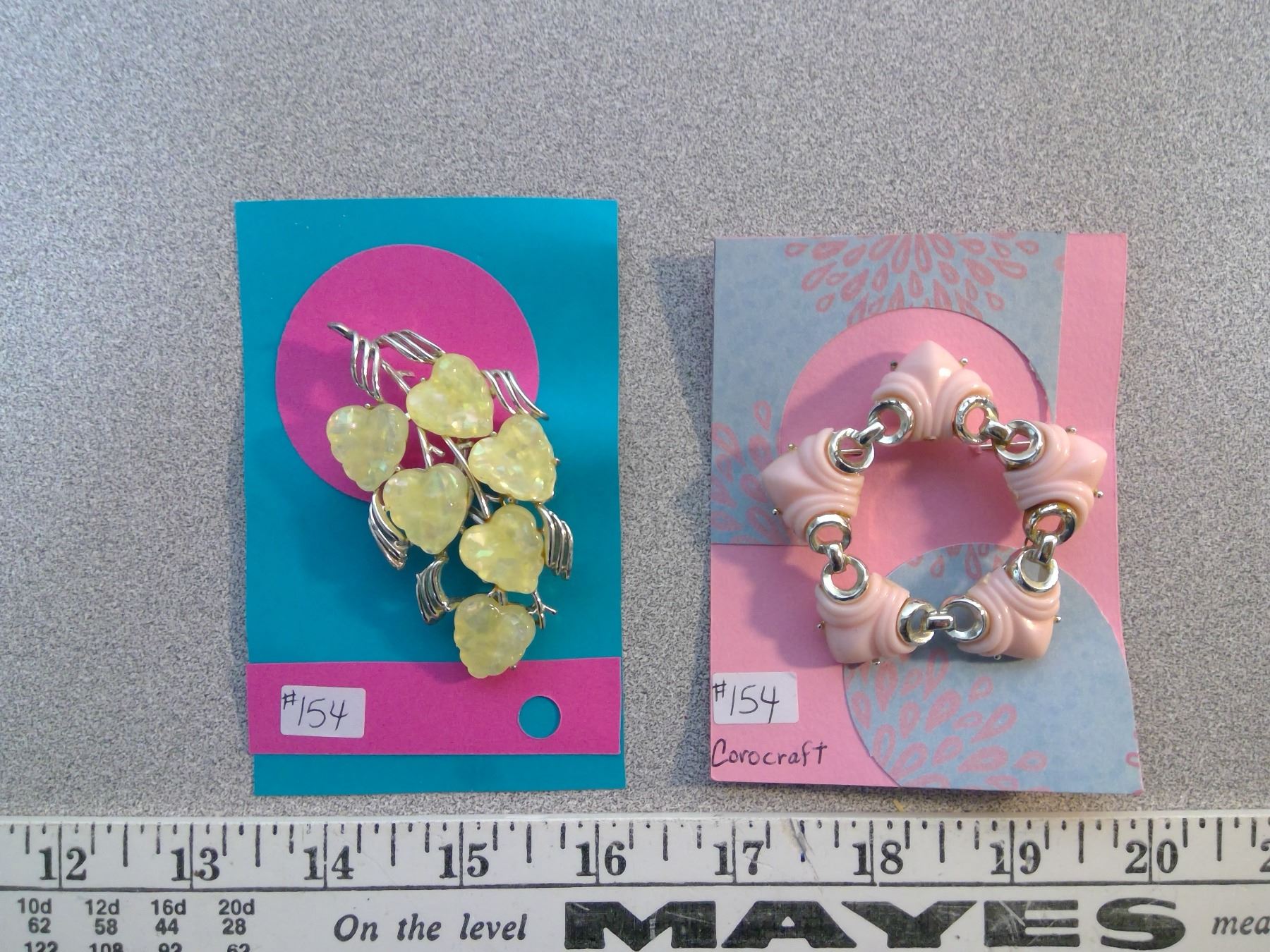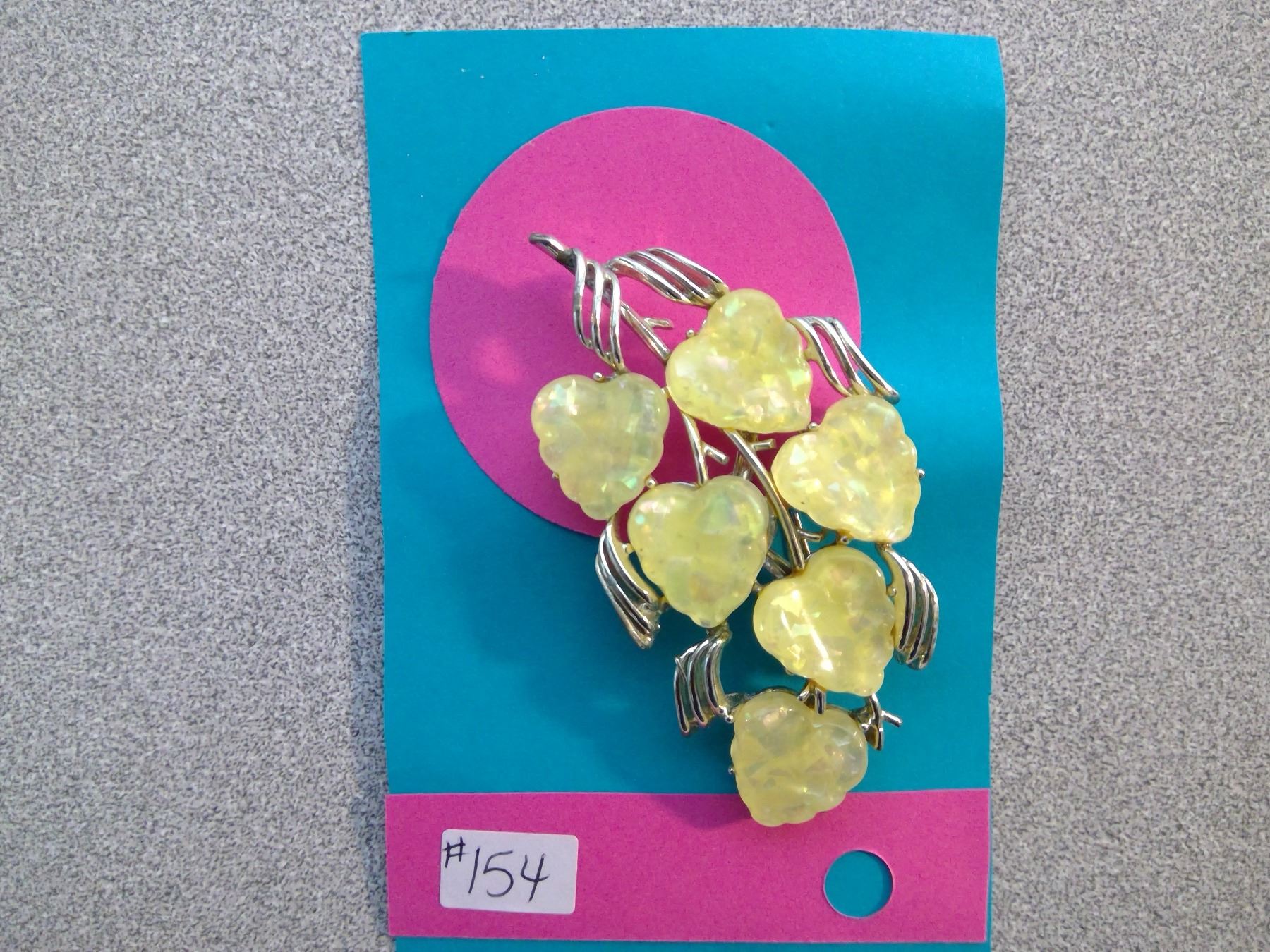 154. CoroCraft pink Thermoset and yellow confetti broach