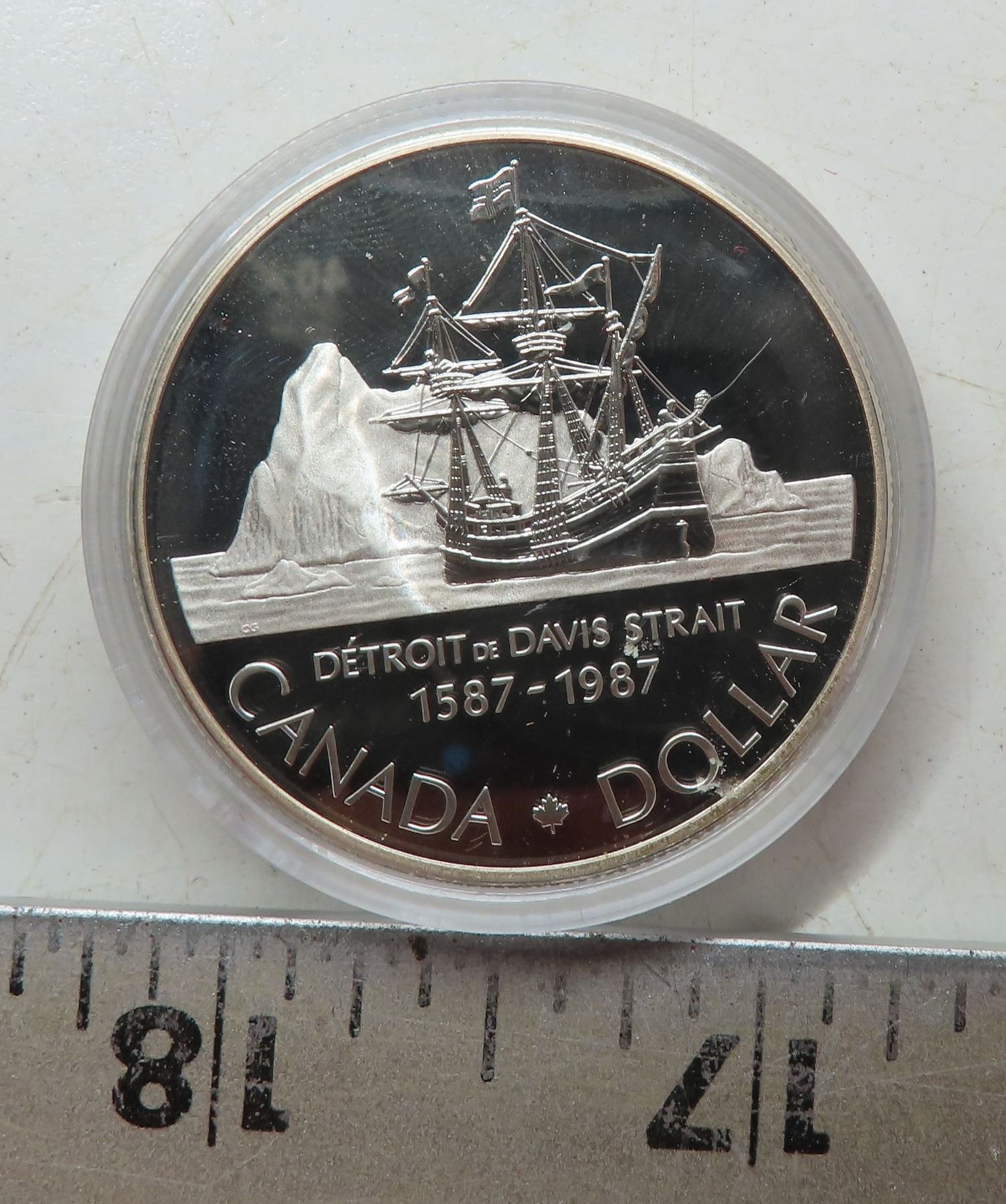 1587-1987 Detroit de Davis strait $1 coin , .500silver
