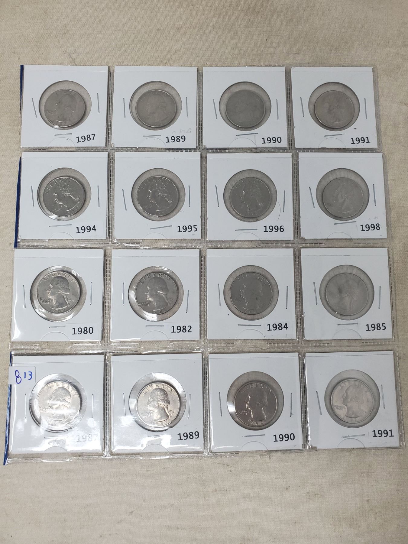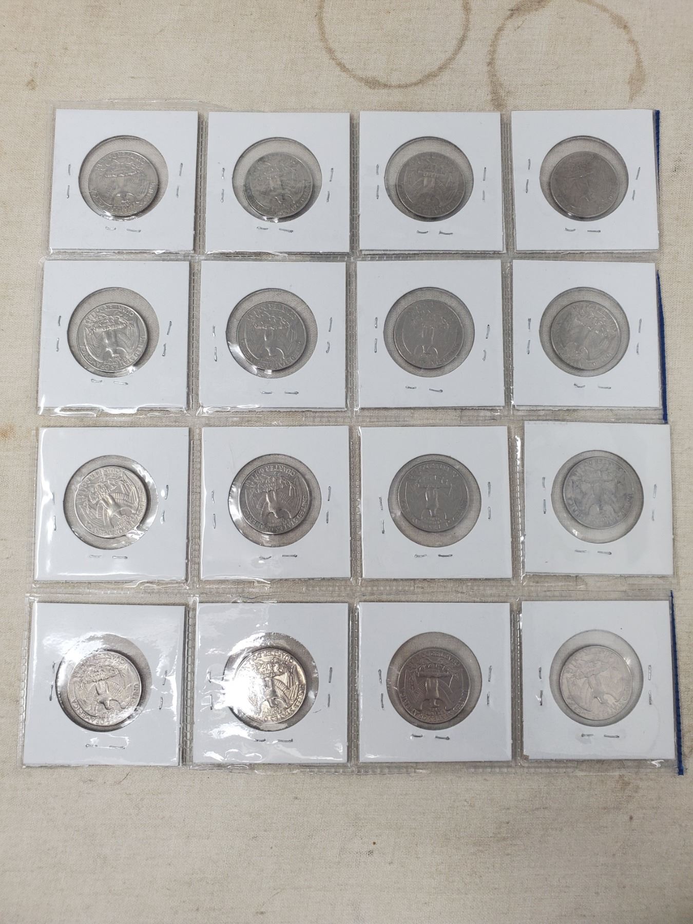 16 American 25 cent coins, various dates