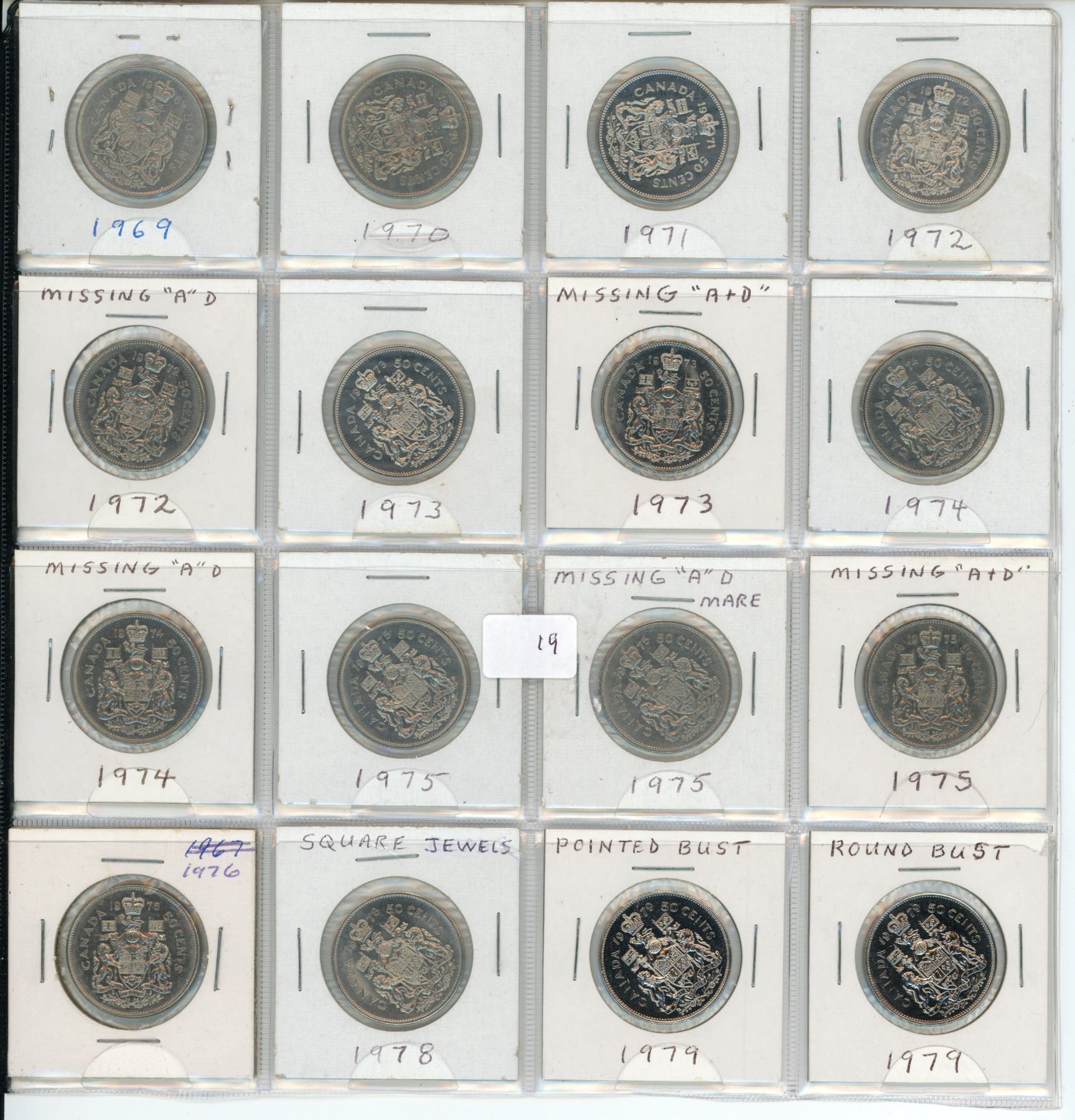 16 Canadian 50 cent coins - 1969-76, 1978-79