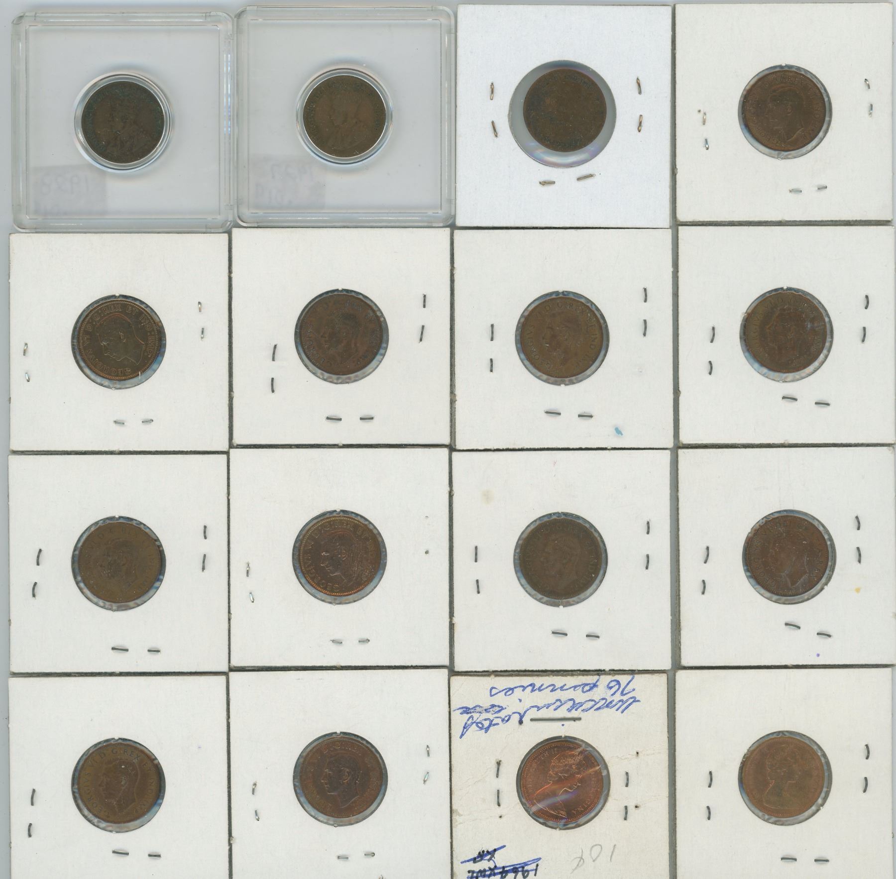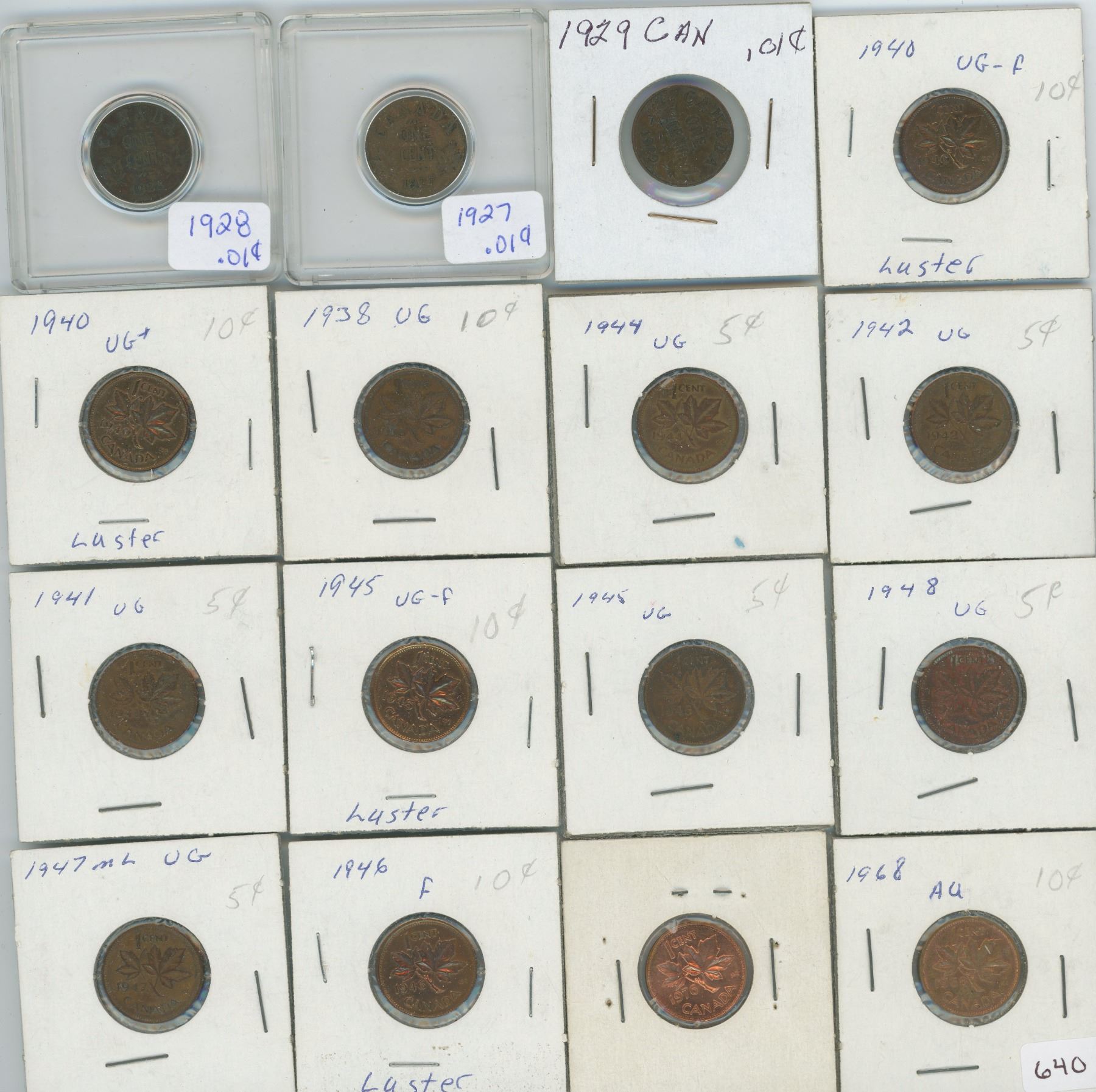 16- Canadian Pennies, 1927, 1928, 1929, 1938, 1940 (x2), 1941, 1942, 1944, 1945 (x2), 1946, 1947, 1948, 1968, 1976