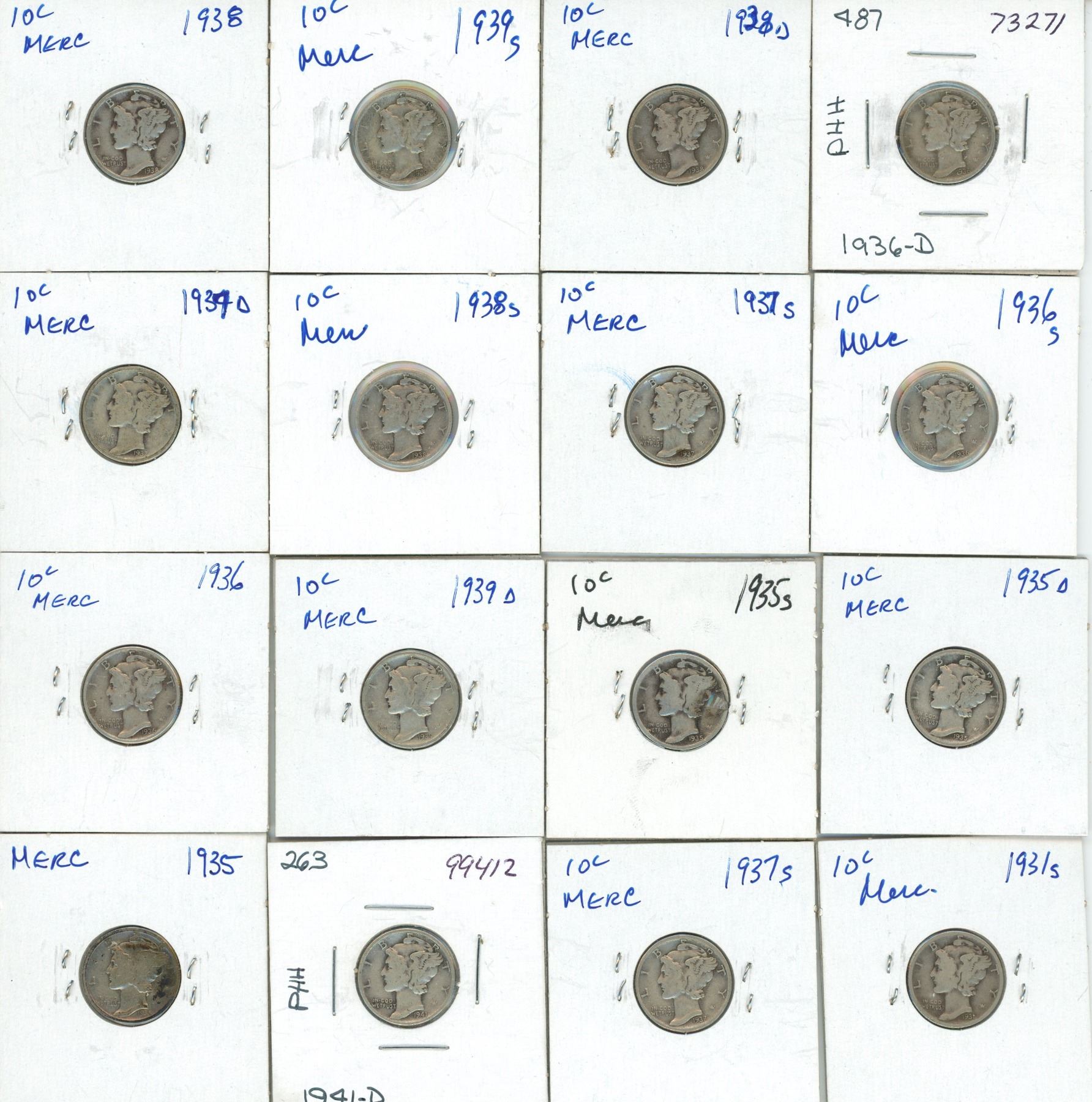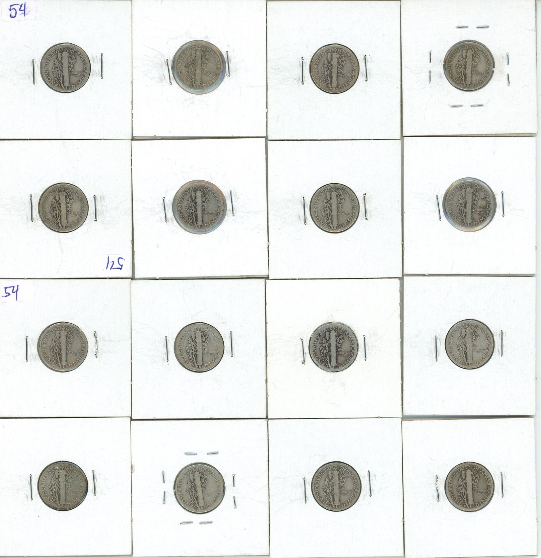 16 US Mercury Dimes Mixed Dares, Mixed Grades