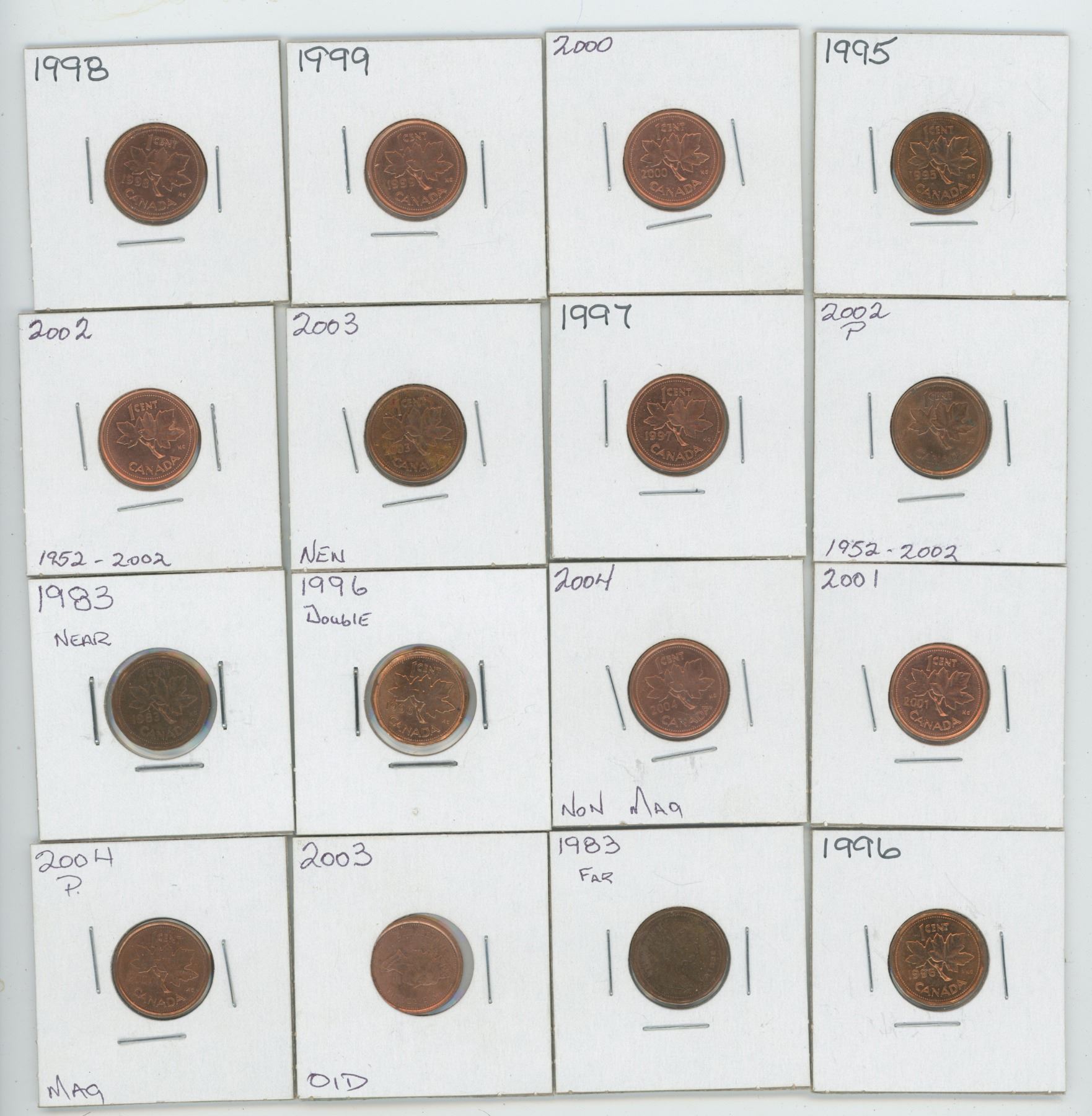 16 X Various 1983 -2004 Canadian 1 Cent Coins