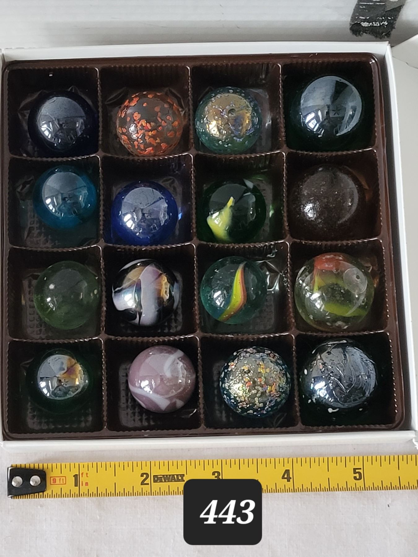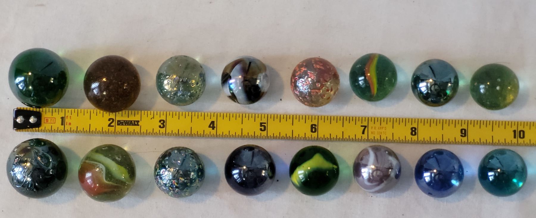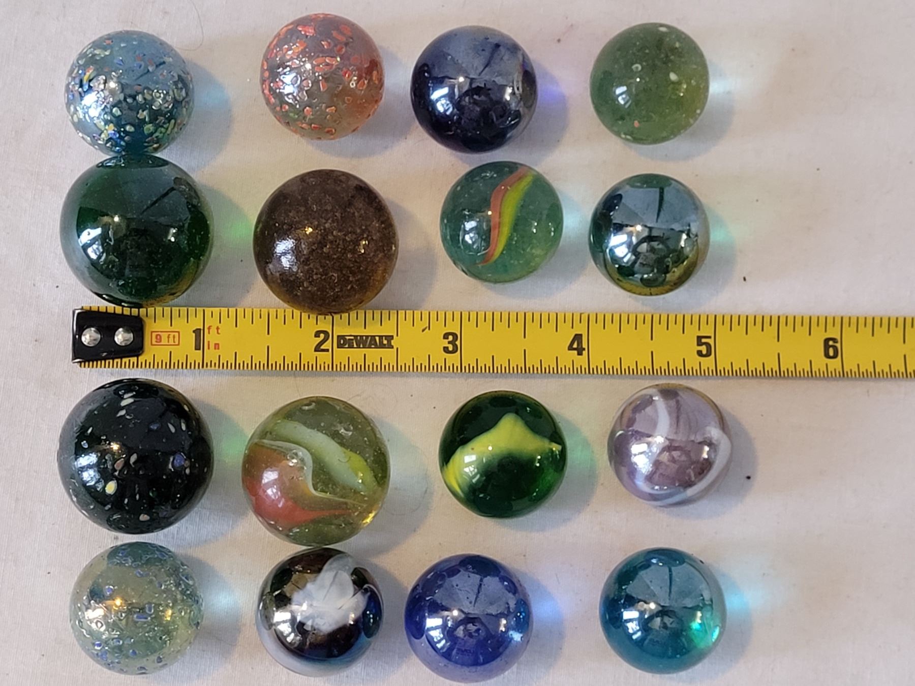 16 large 1” & smaller marbles.