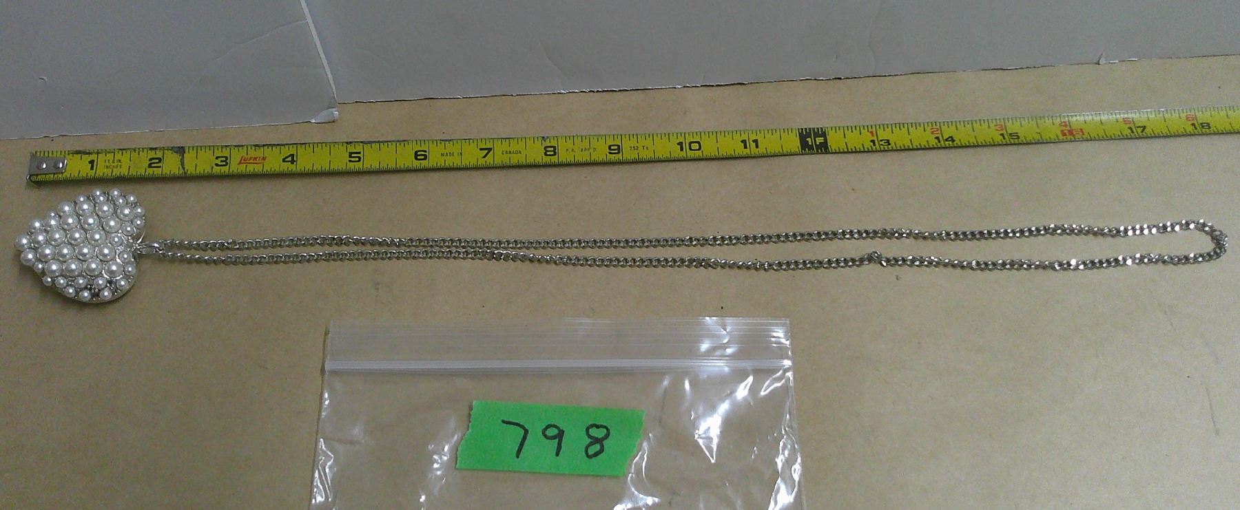 16" silver colored w/ heart shape pennent necklace