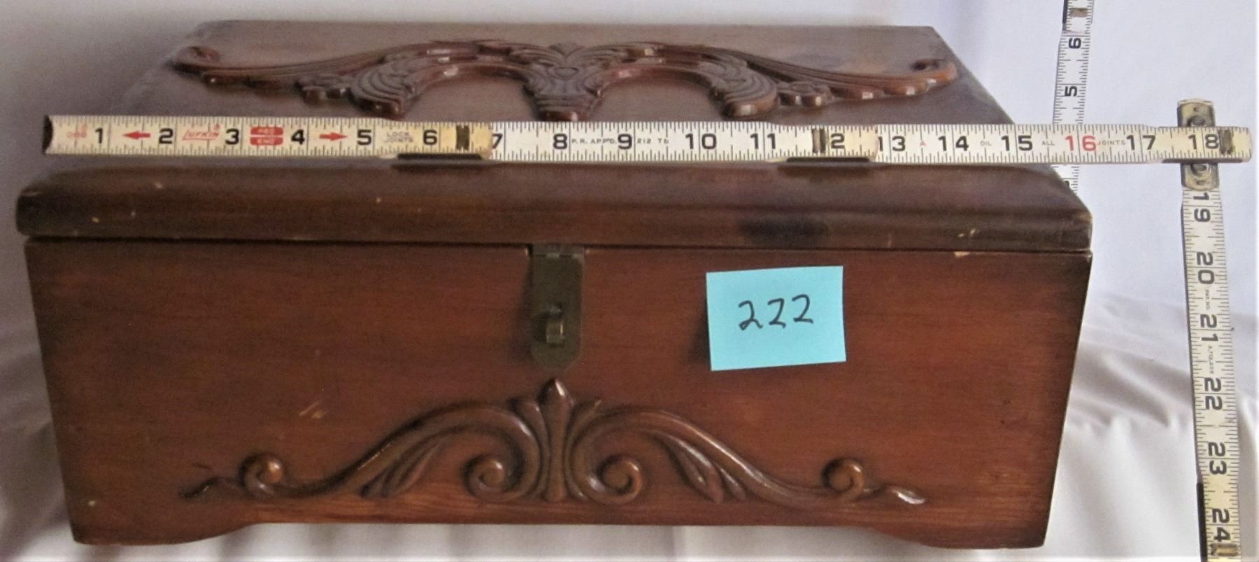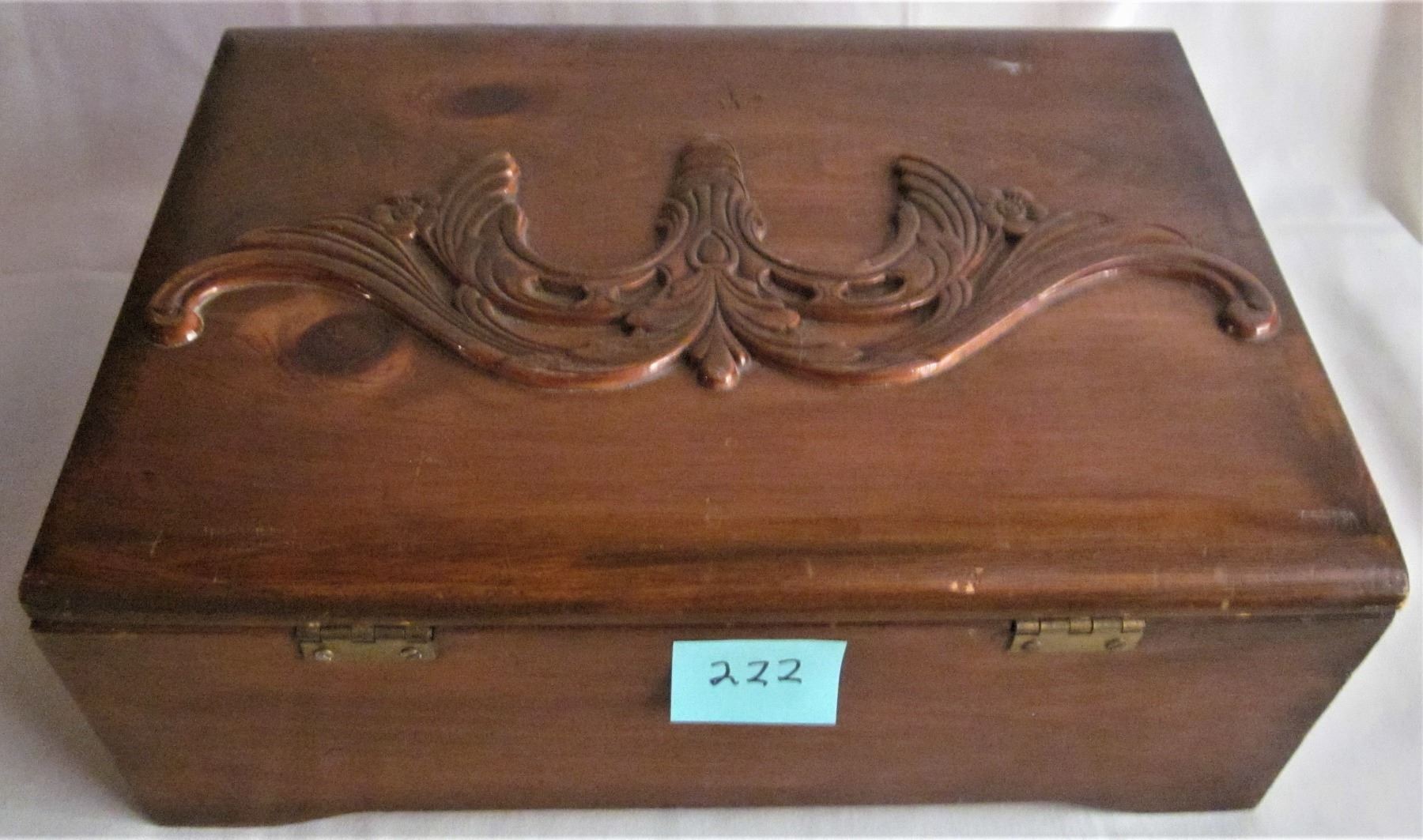 16"x11.5"x6" CUSTOM CARVED HINGED WOODEN JEWLERY BOX