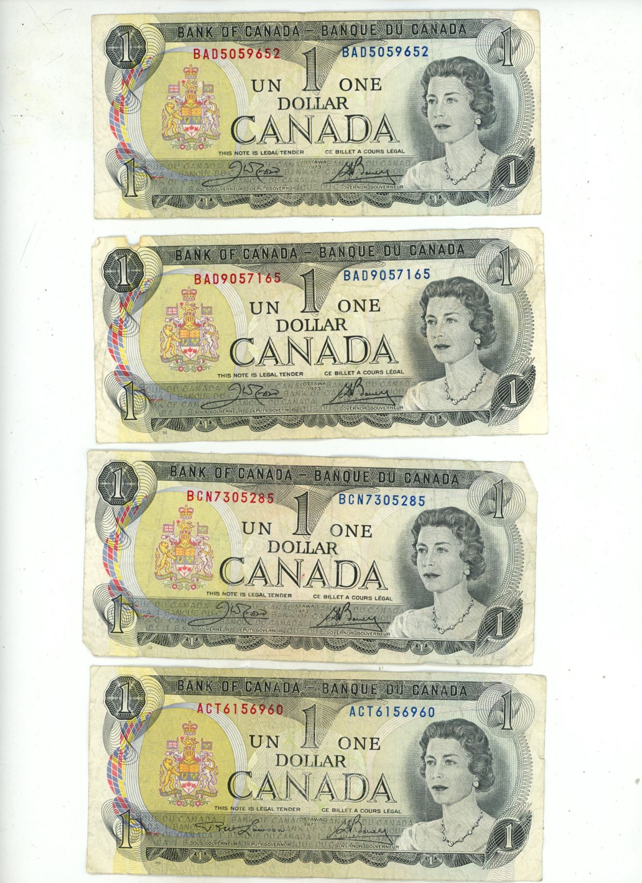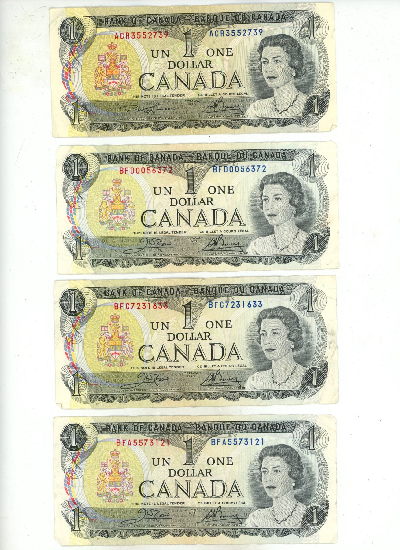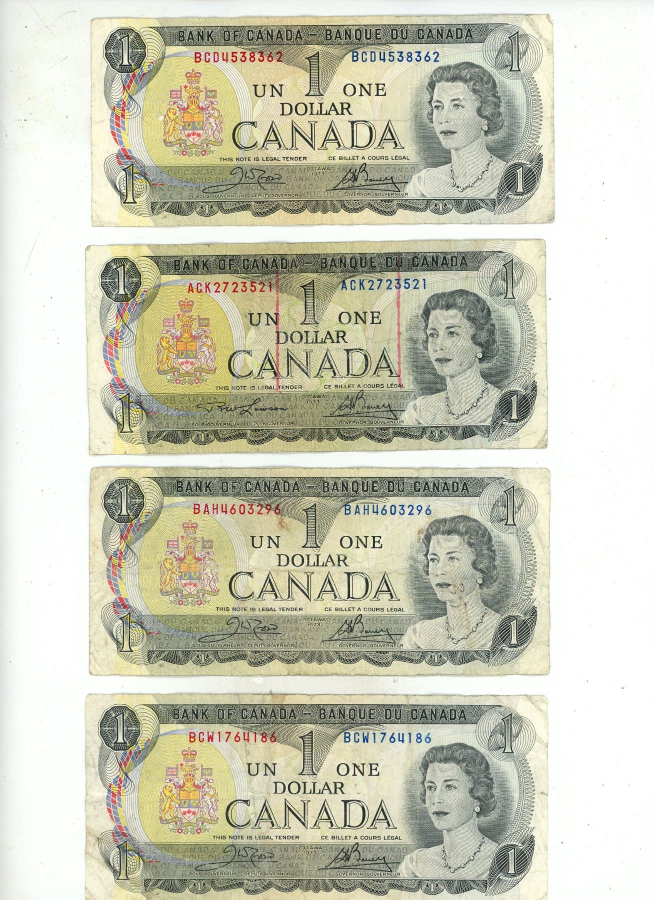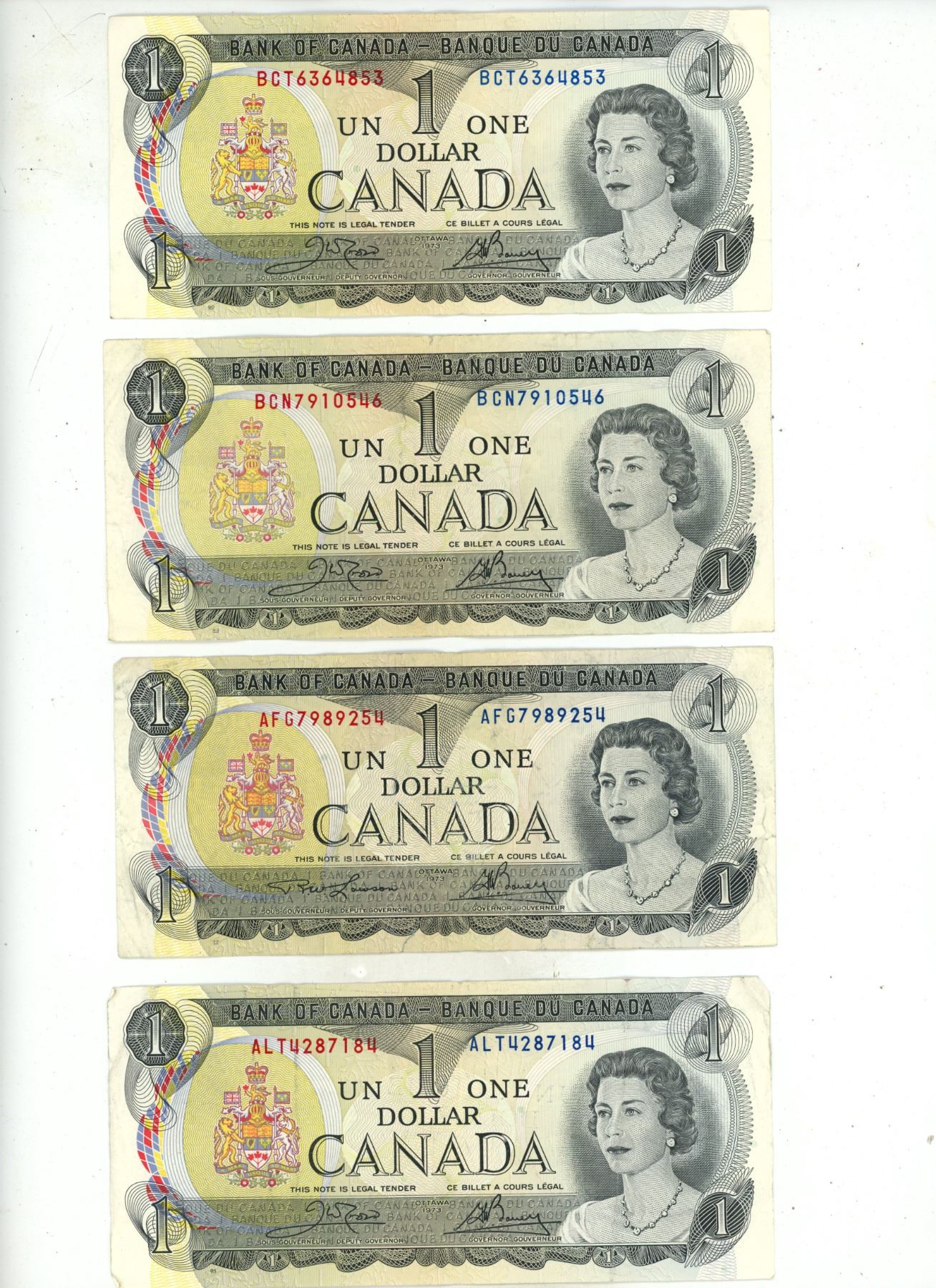 (17) 1973 Canada One Dollar Banknotes.