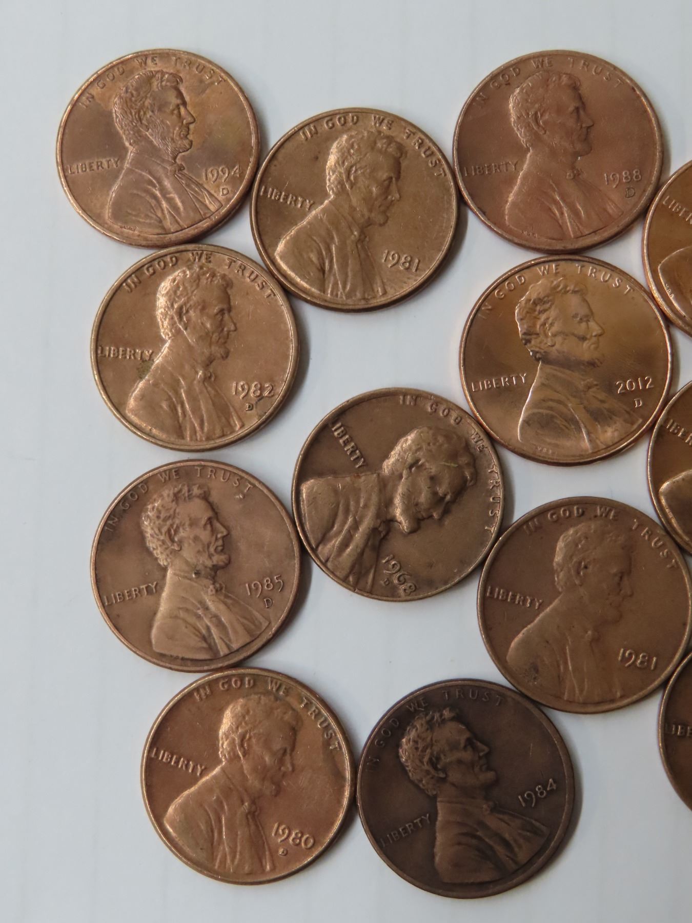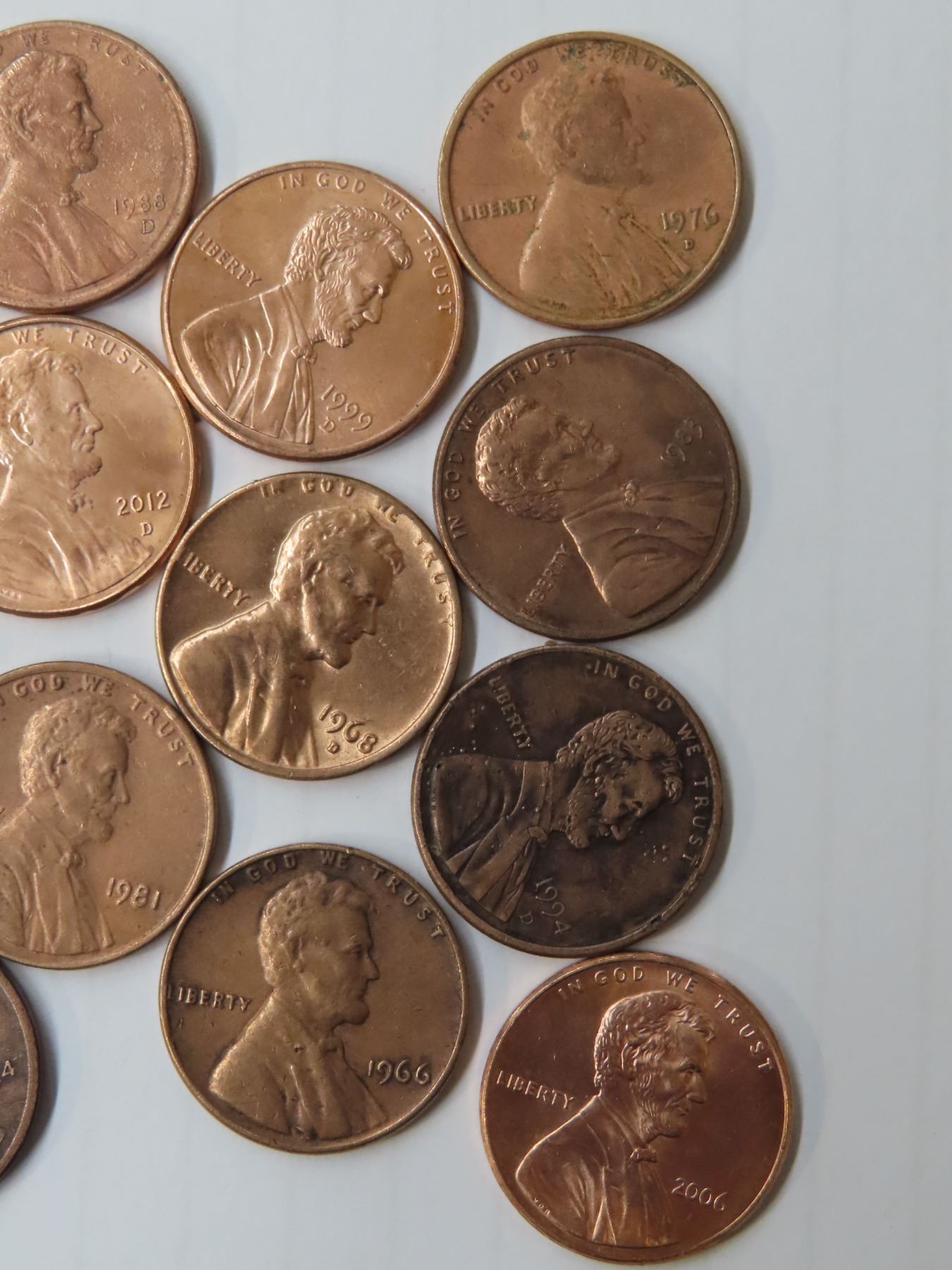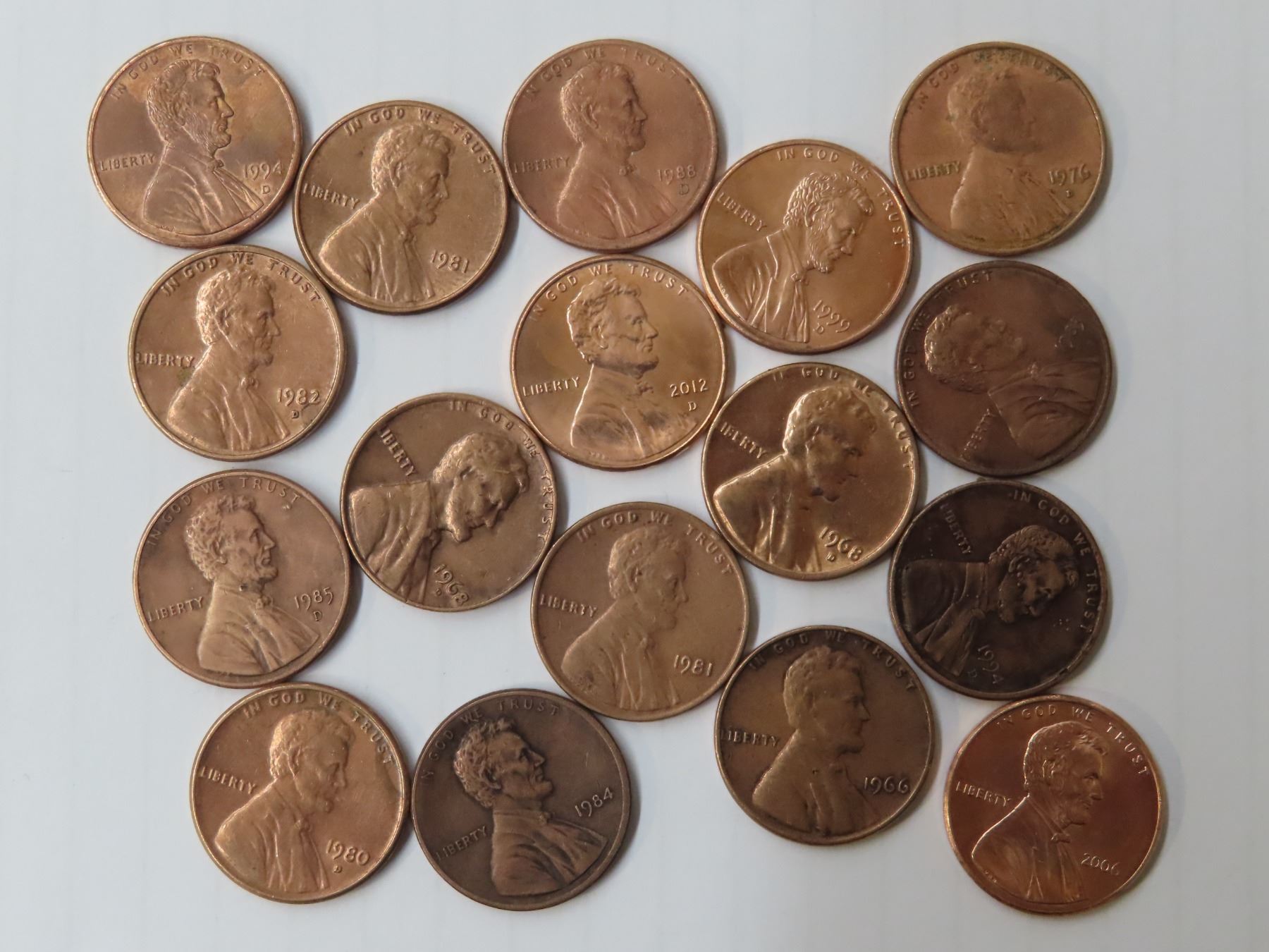 17 Abraham Lincoln pennies assorted years: 1966 to 2021