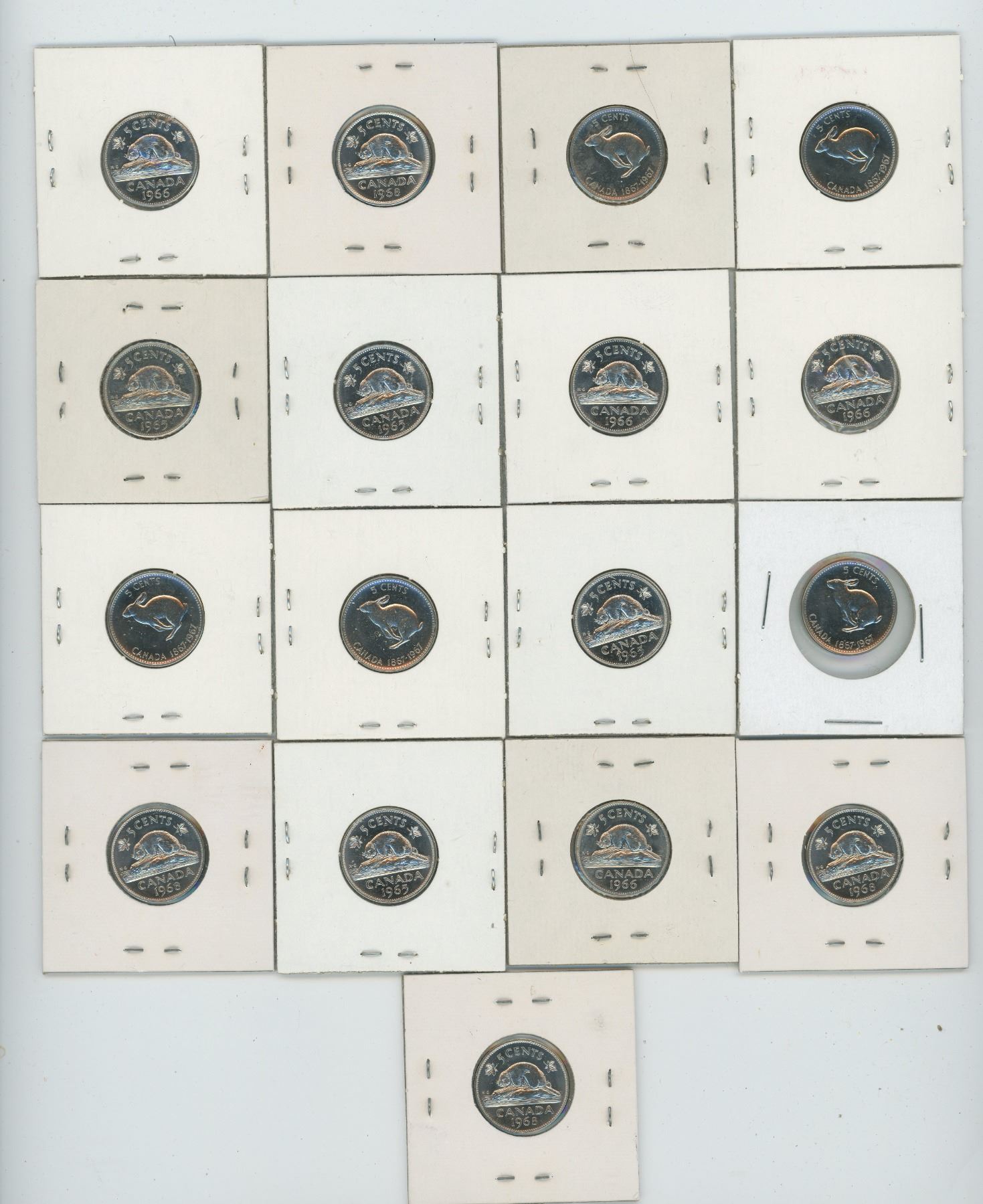 17 CANADIAN 5 CENT 1965X4,1966X4,1967X5,1968X4