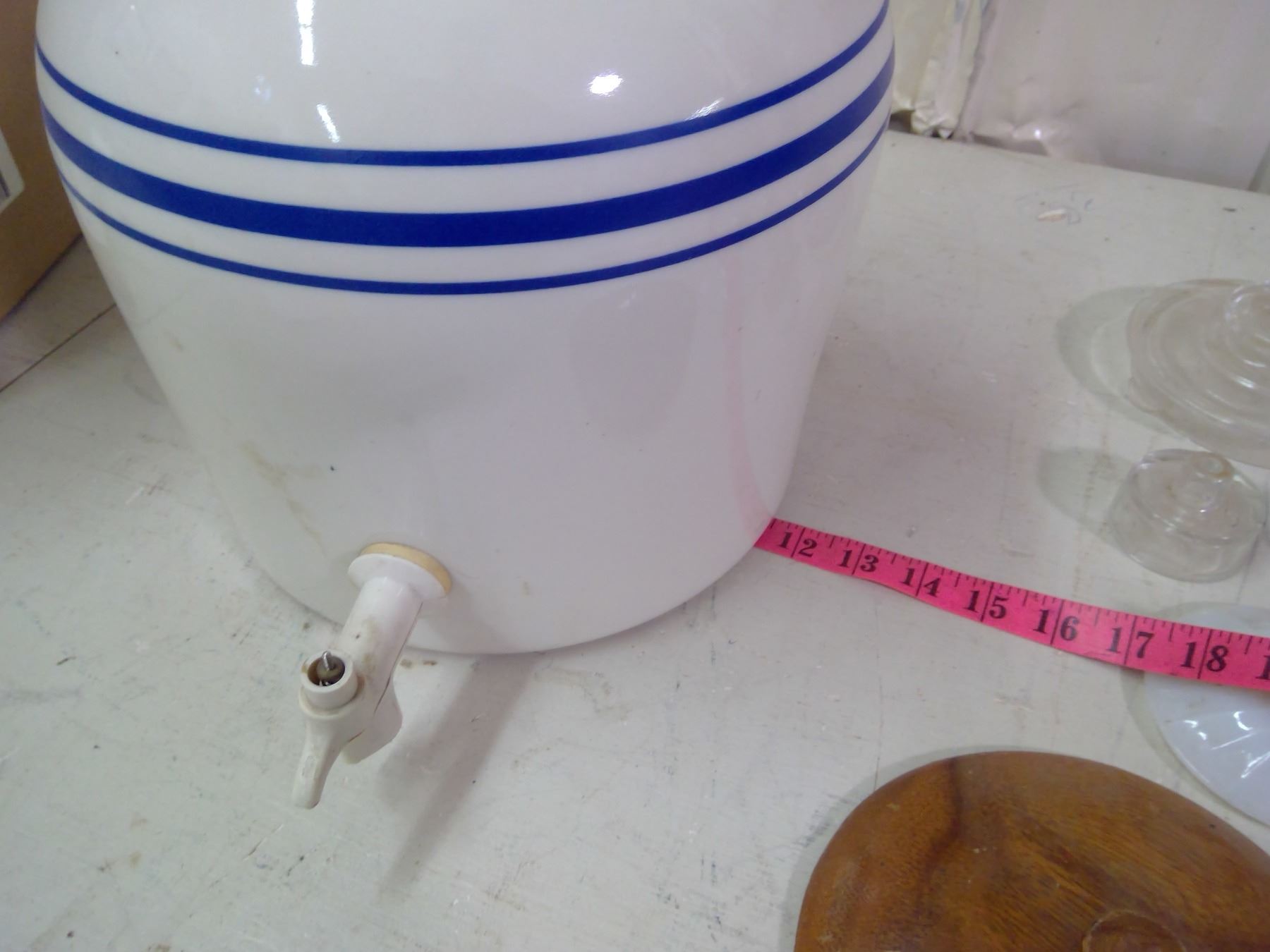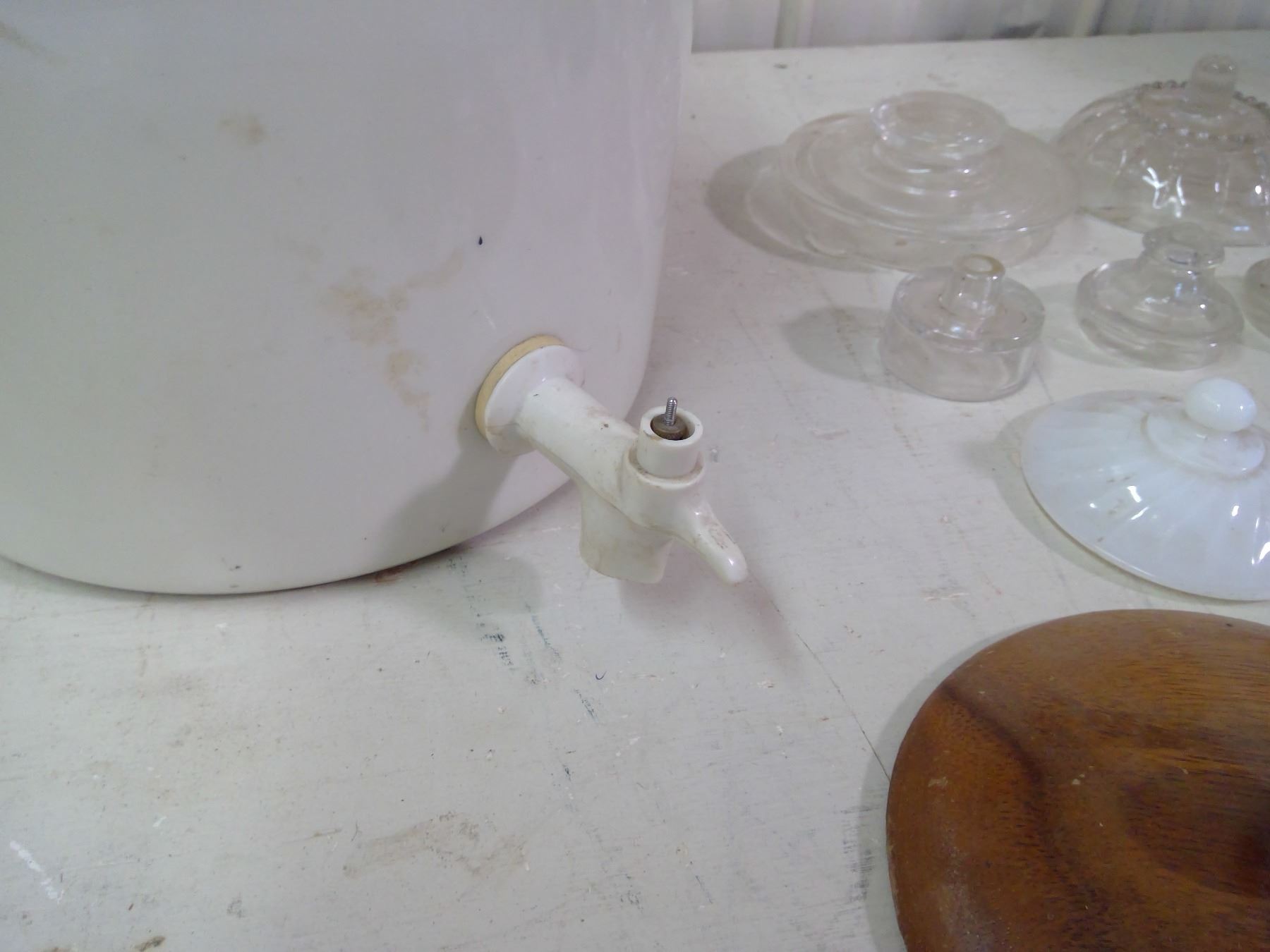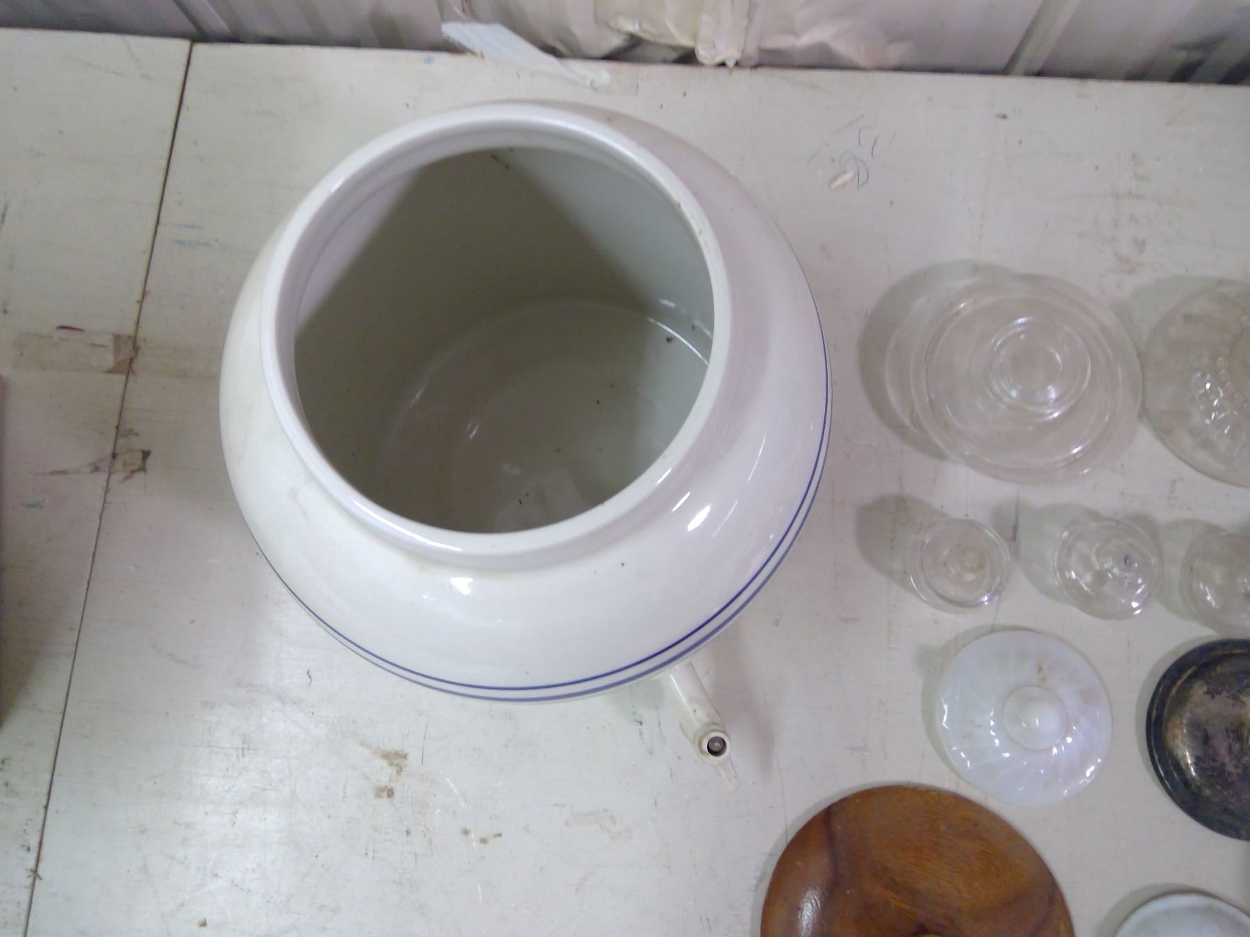 17 MISC. LIDS (NO MATCHING CONTAINERS) AND ONE LARGE JUG