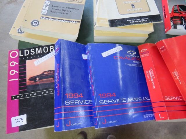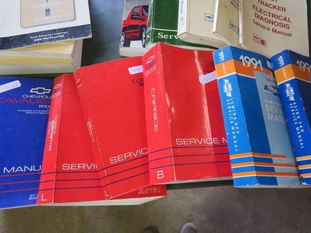 17 Manuals, 2 '93 Corsica, '93 Caprice, '94 Olds, '93 Tracker, 2 '94 Cavalier, 2 '90 Sprint/Firebird, '90 Olds, '91 Astro, 4 '91 & '94 Lumina, 2 - 96 V Van