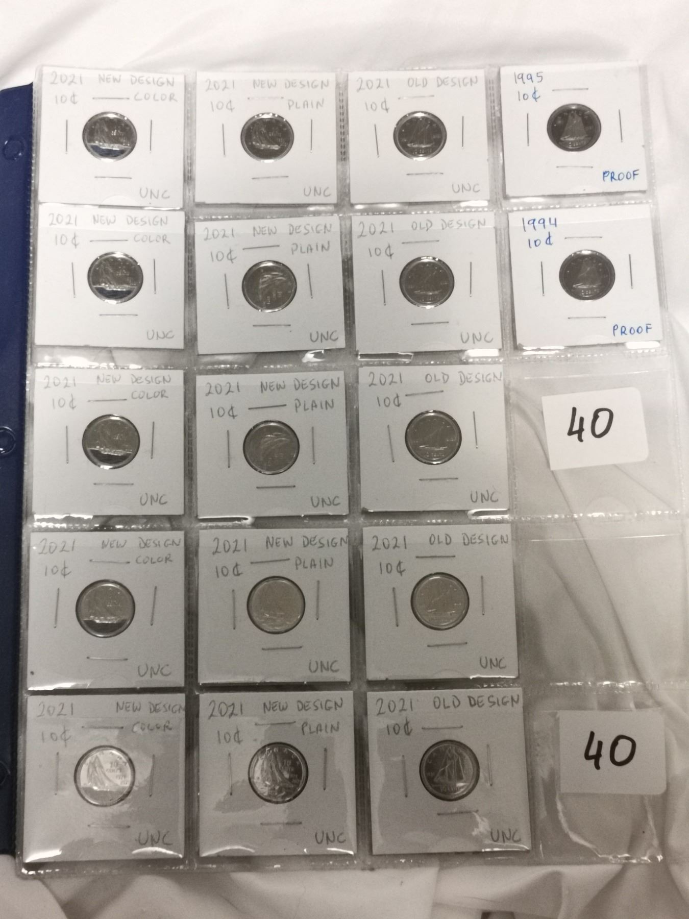 (17) UNC 10 Cent Coins. Colour, Proof, UNC etc.