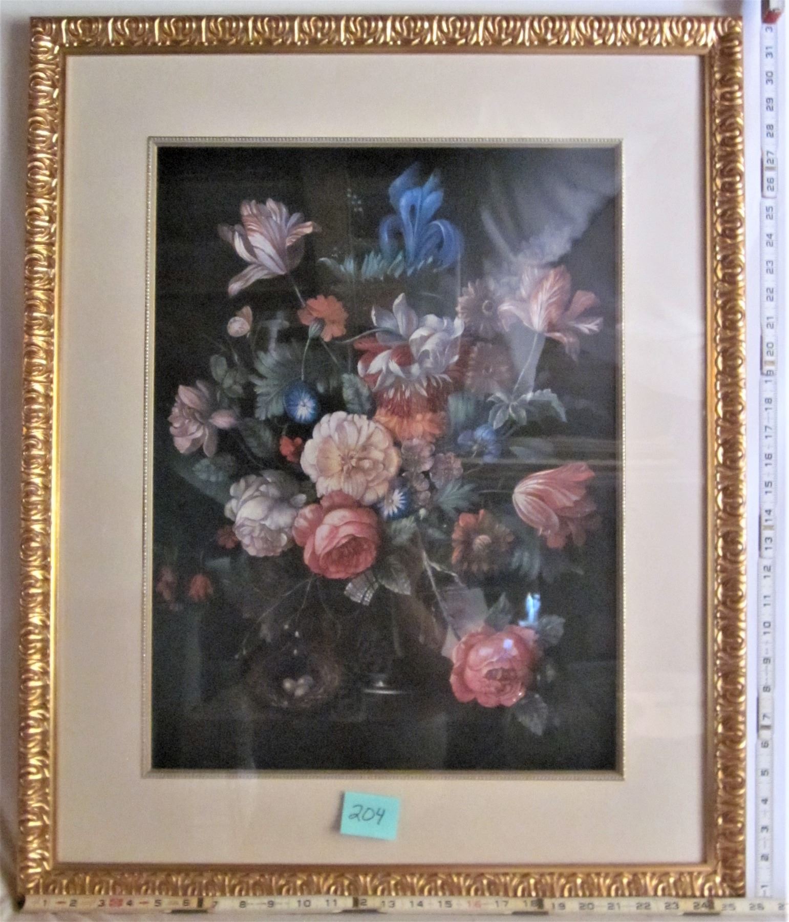 17"x23" FLORAL BOUQUET PRINT ORNATE GOLDEN WOODEN FRAME