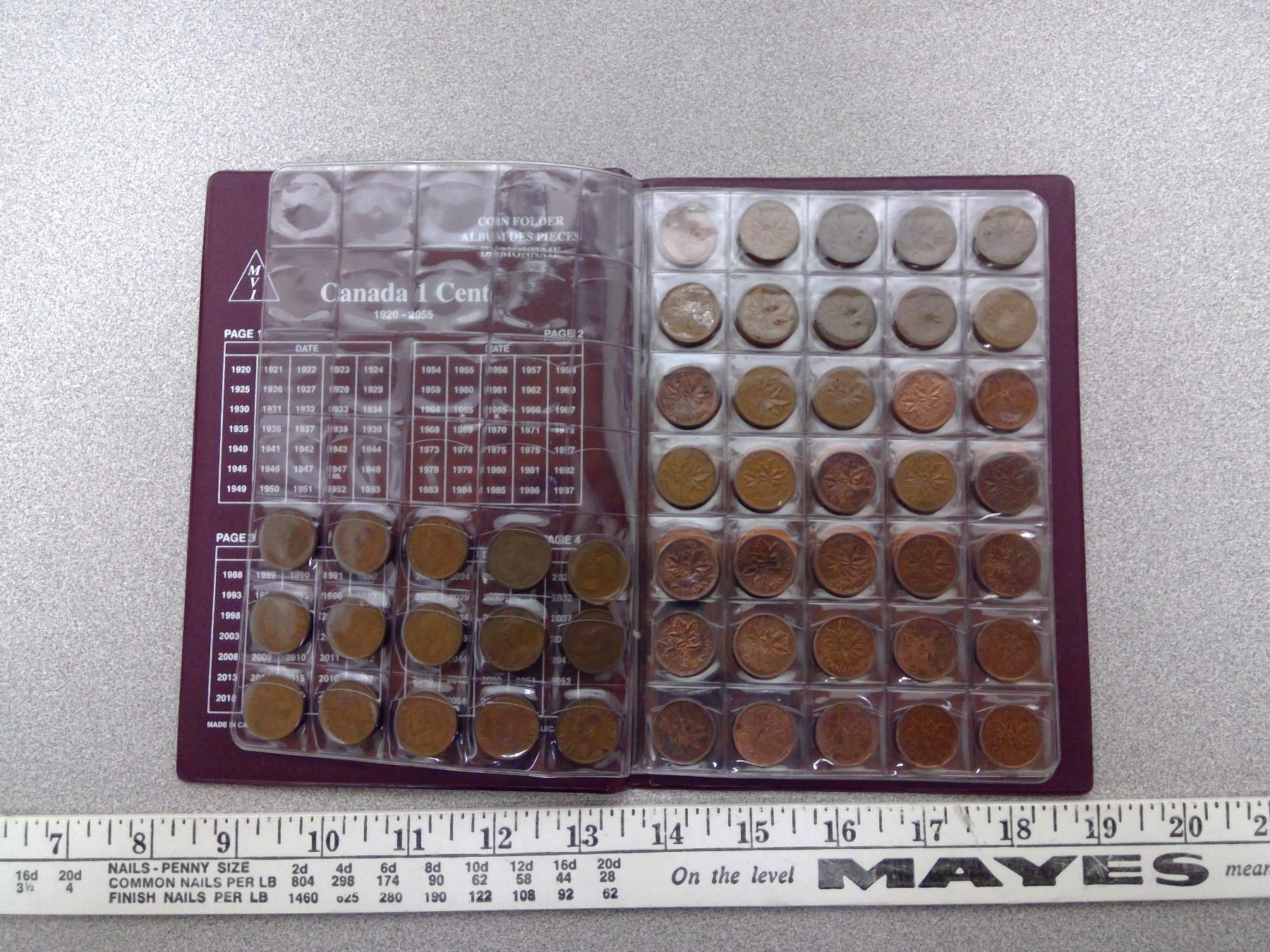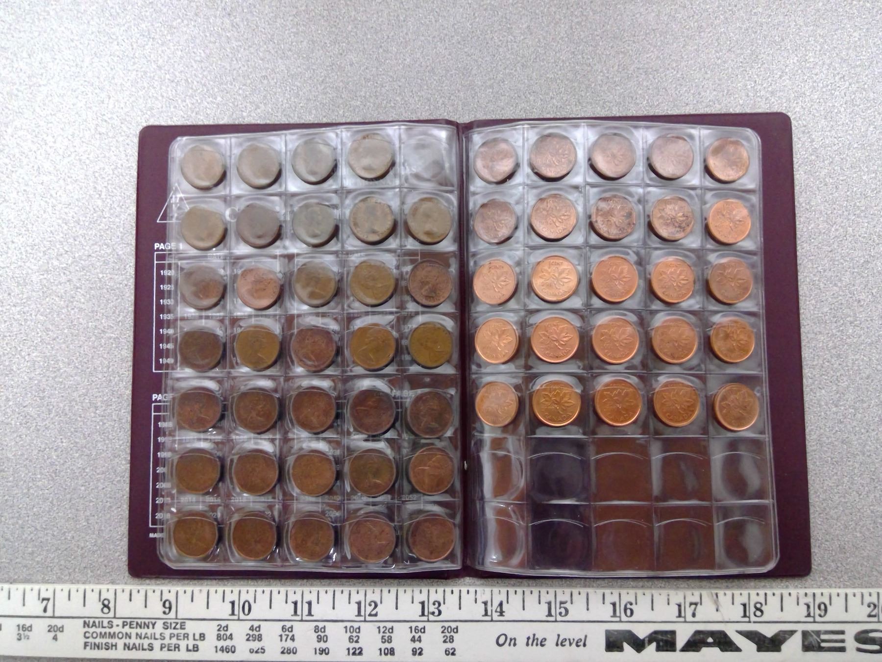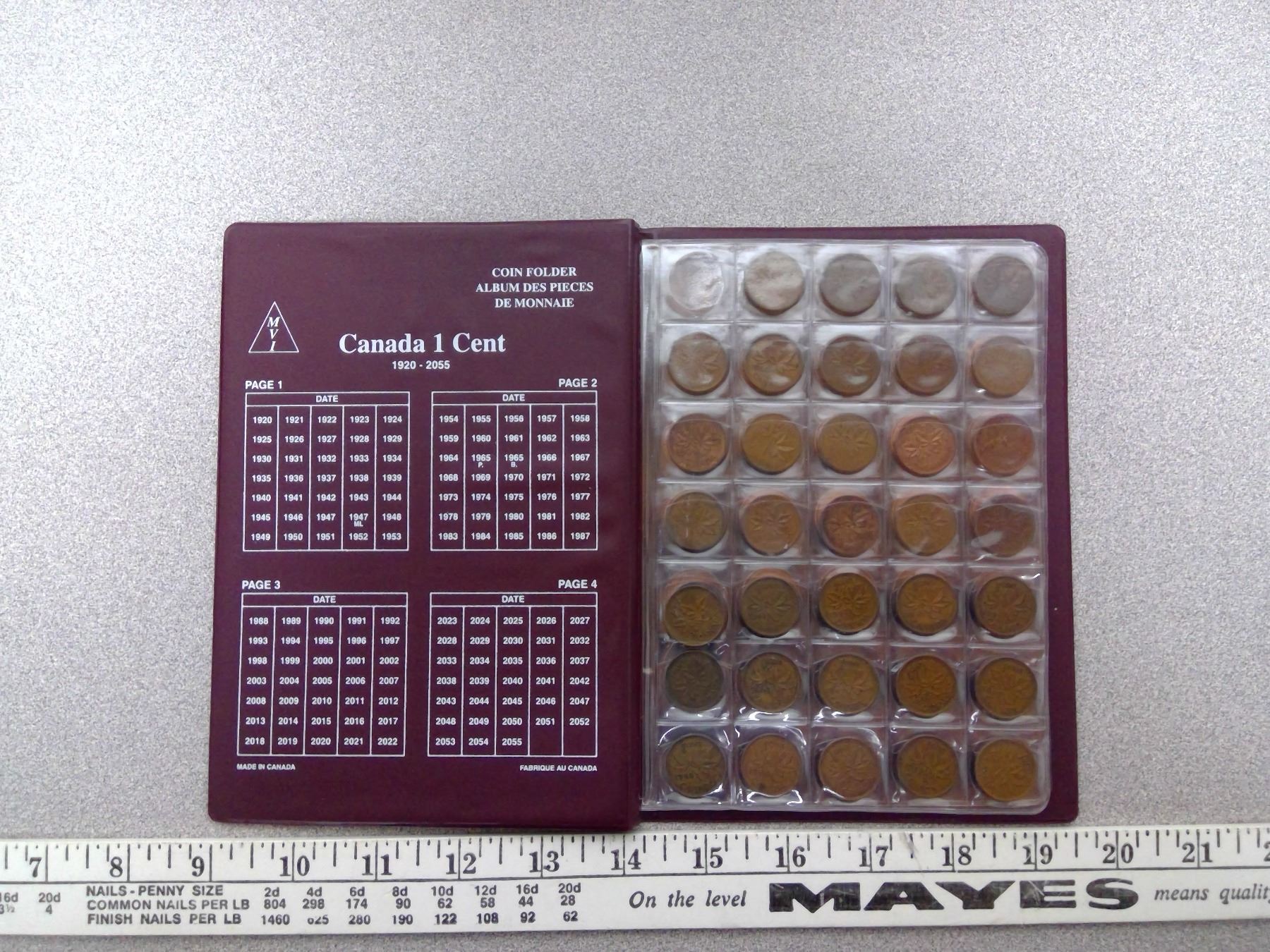 170. Canada 1 cent coin folder with pennies 1940-2012, missing 1954
