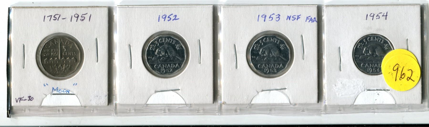 1751-1951 Moon, 1952, 1953 NSF-Far, 1954 Canada Five Cents