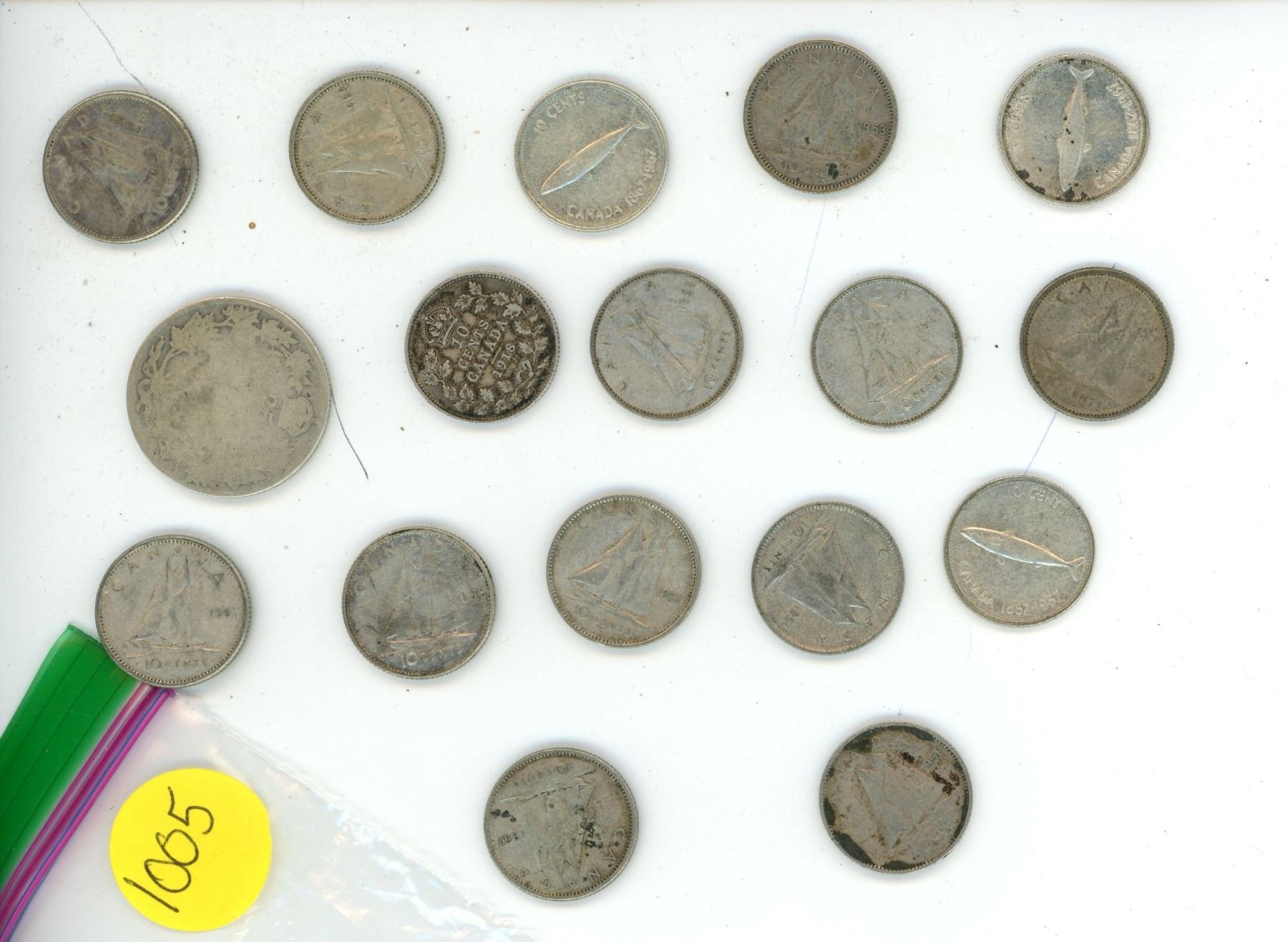 17pc - 16 Canada Silver Dimes & 1 Canada Silver Quarter