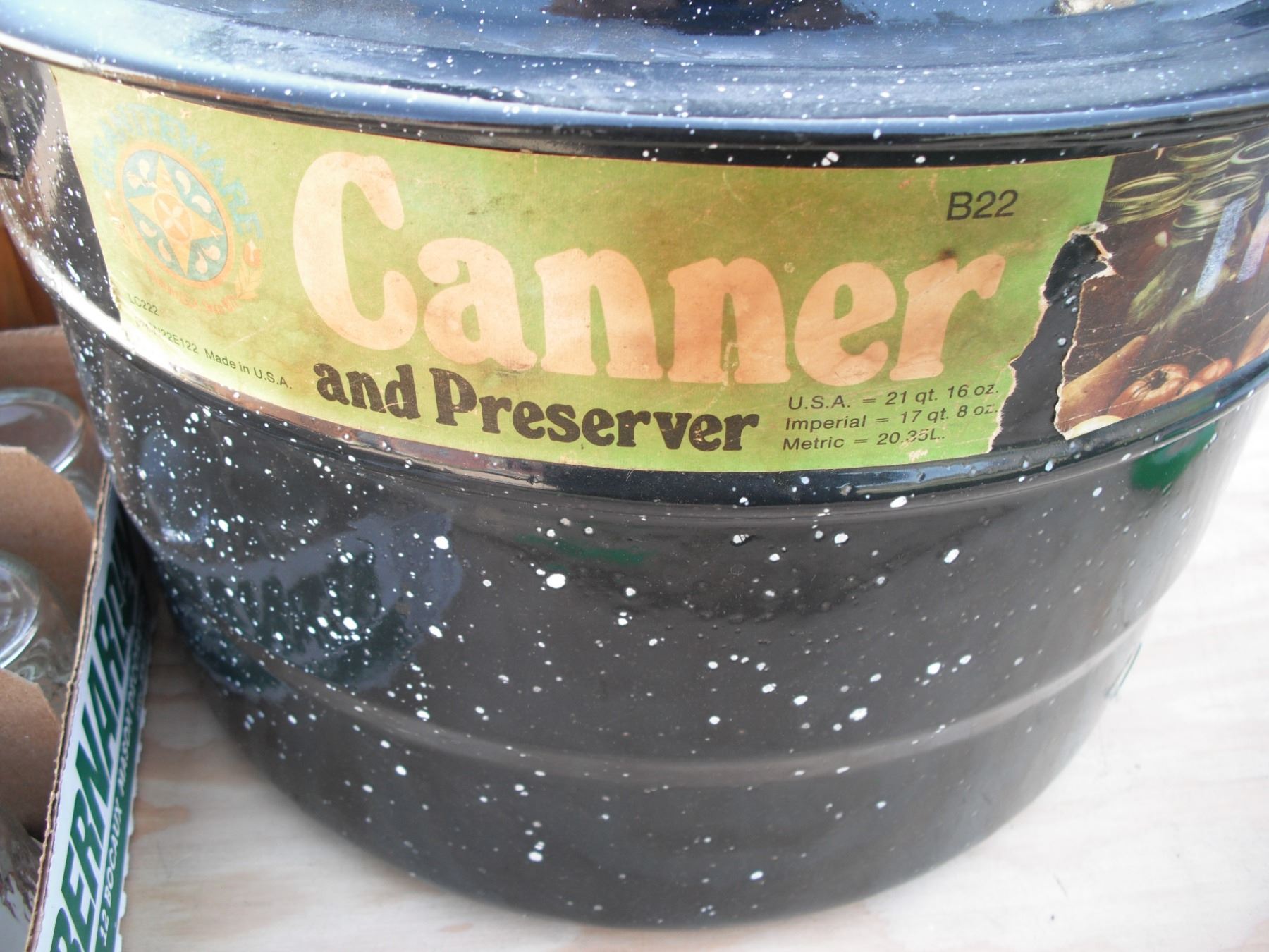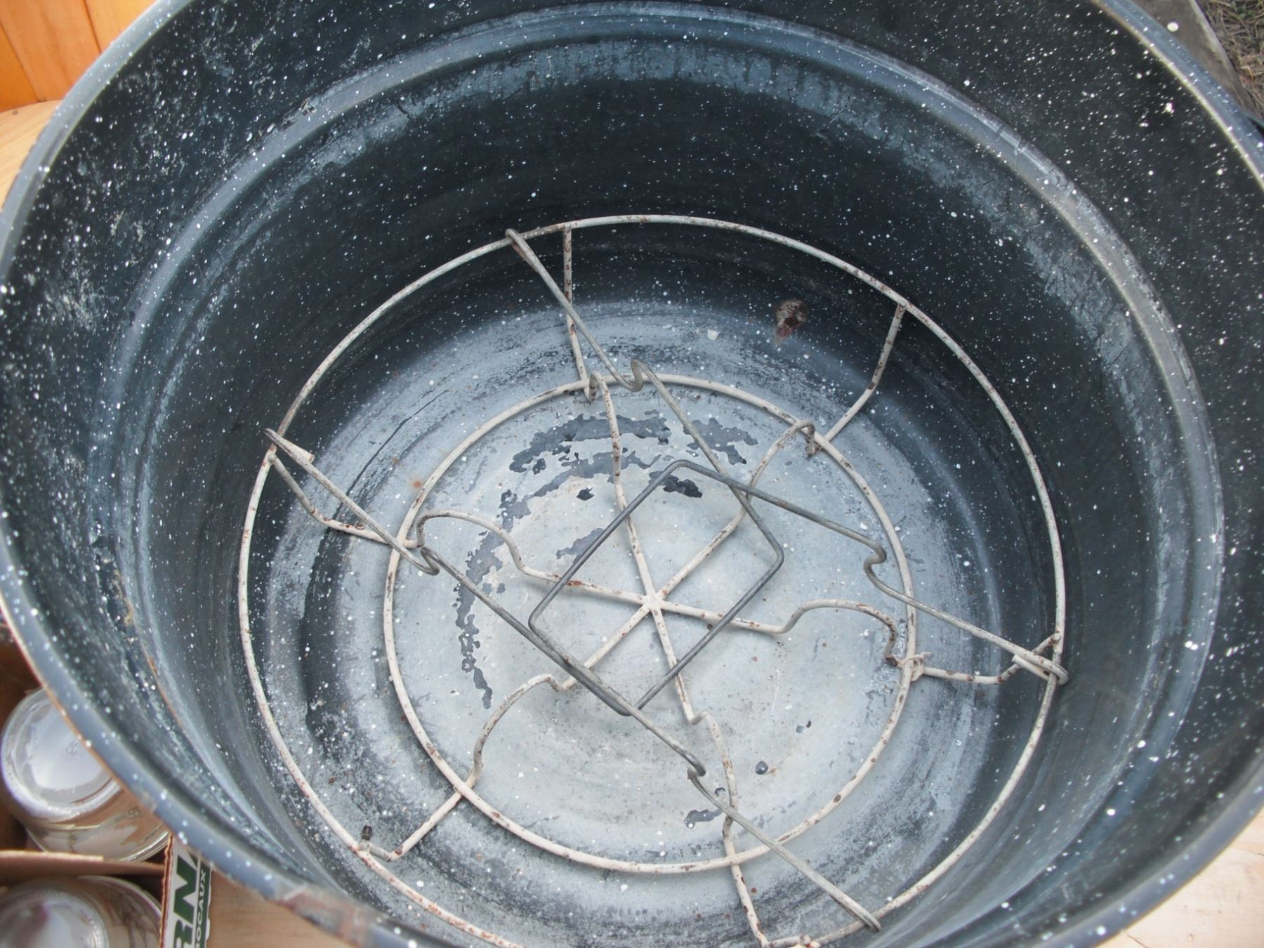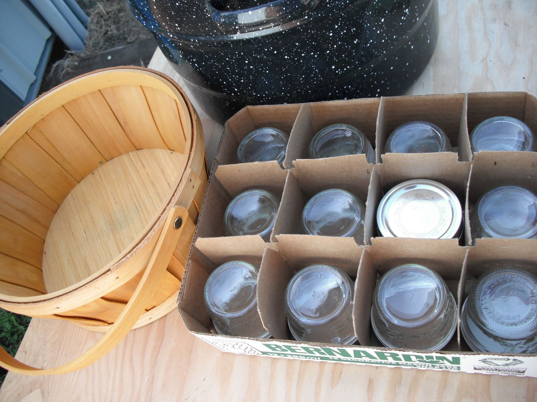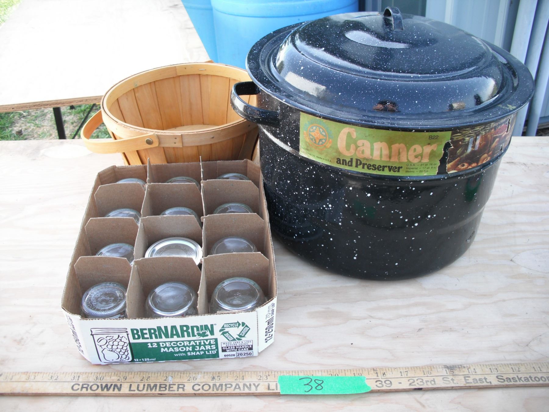 17qt Canning pot with 12 250ml jam jars and small basket