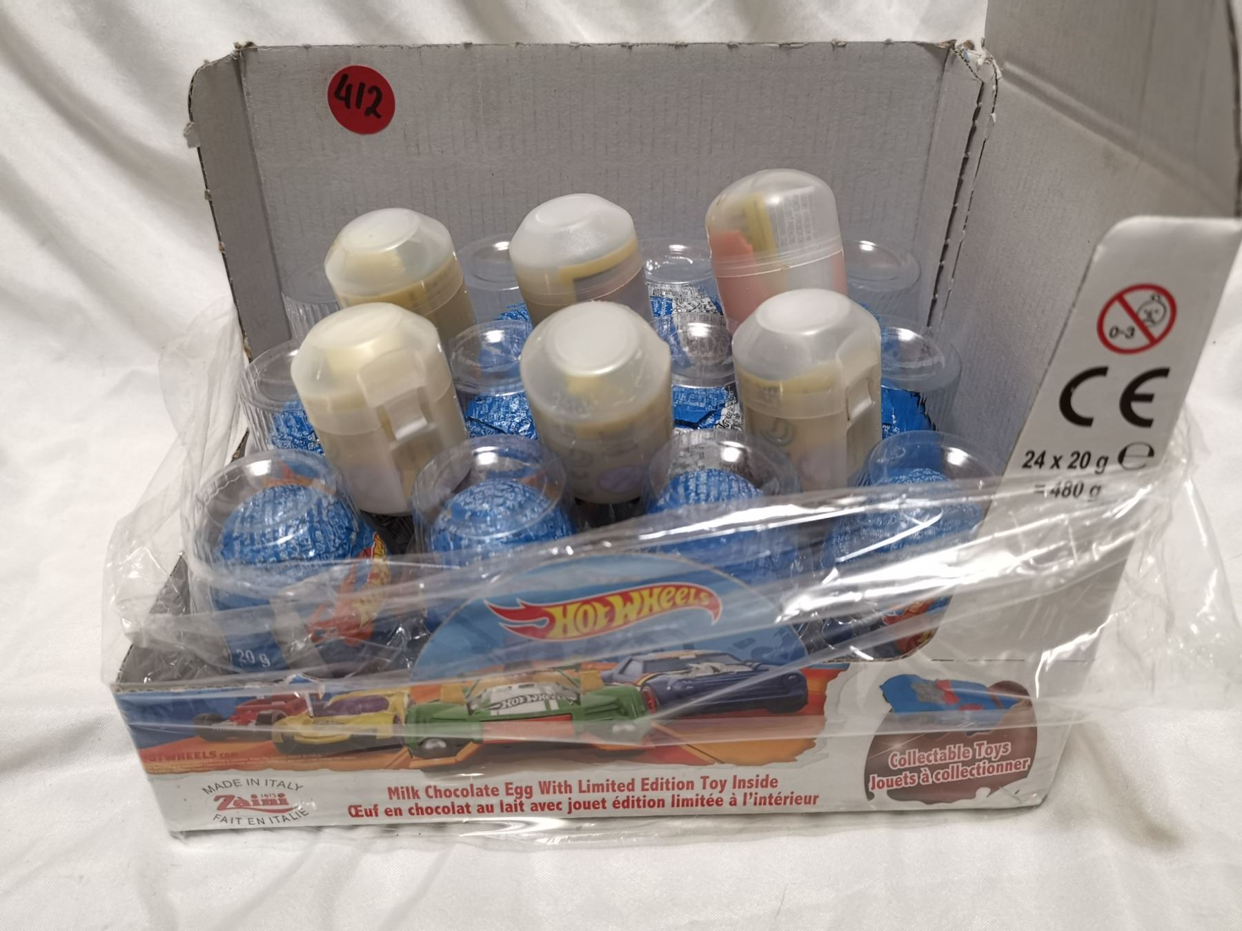 18 Kinder Surprise Hot Wheel cars, Chocolate no good