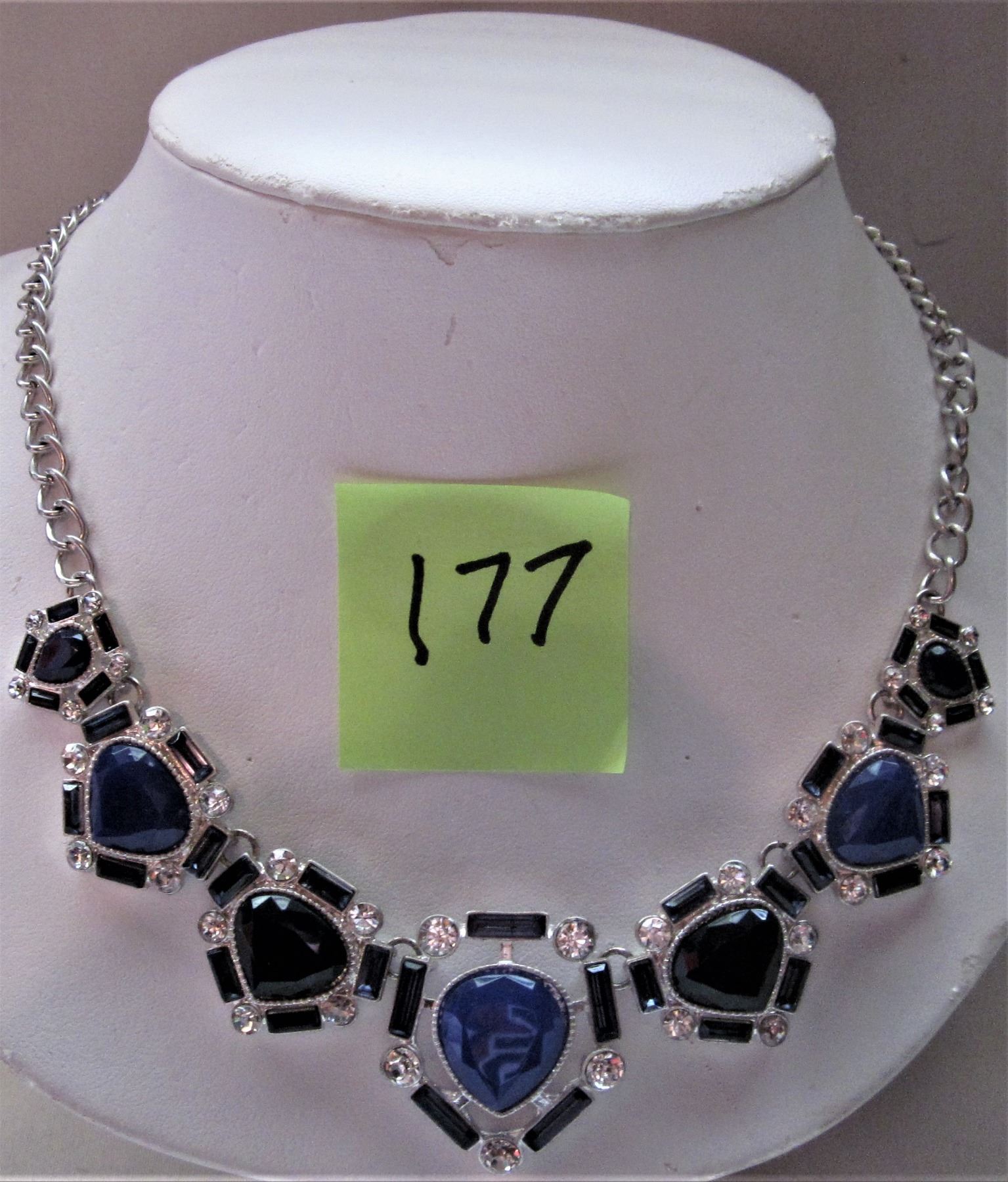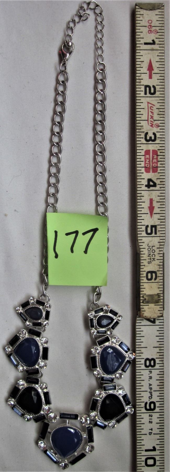 18" SILVER TONE RHINESTONE, FAUX BLUE STONES