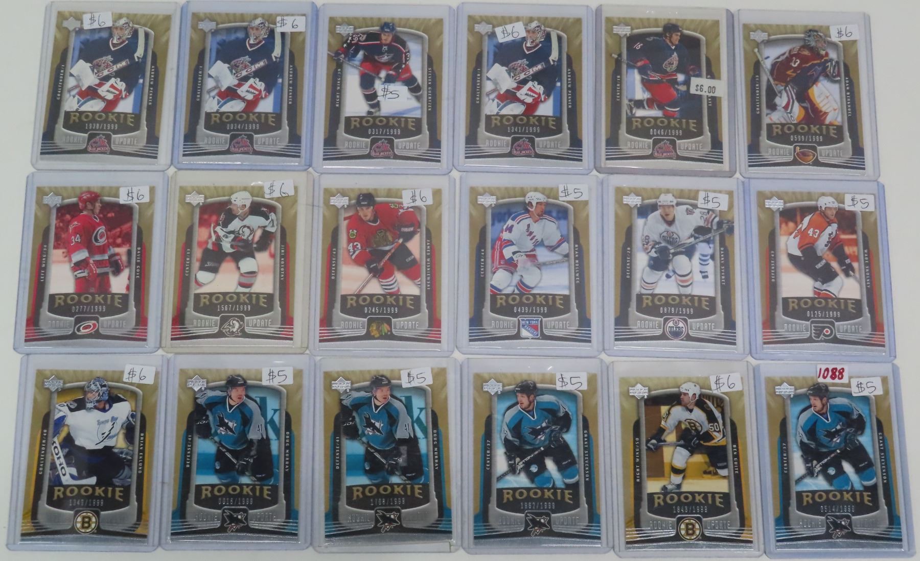 18 assorted "Rookie Update" Series UpperDeck hockey cards - in plastic holders