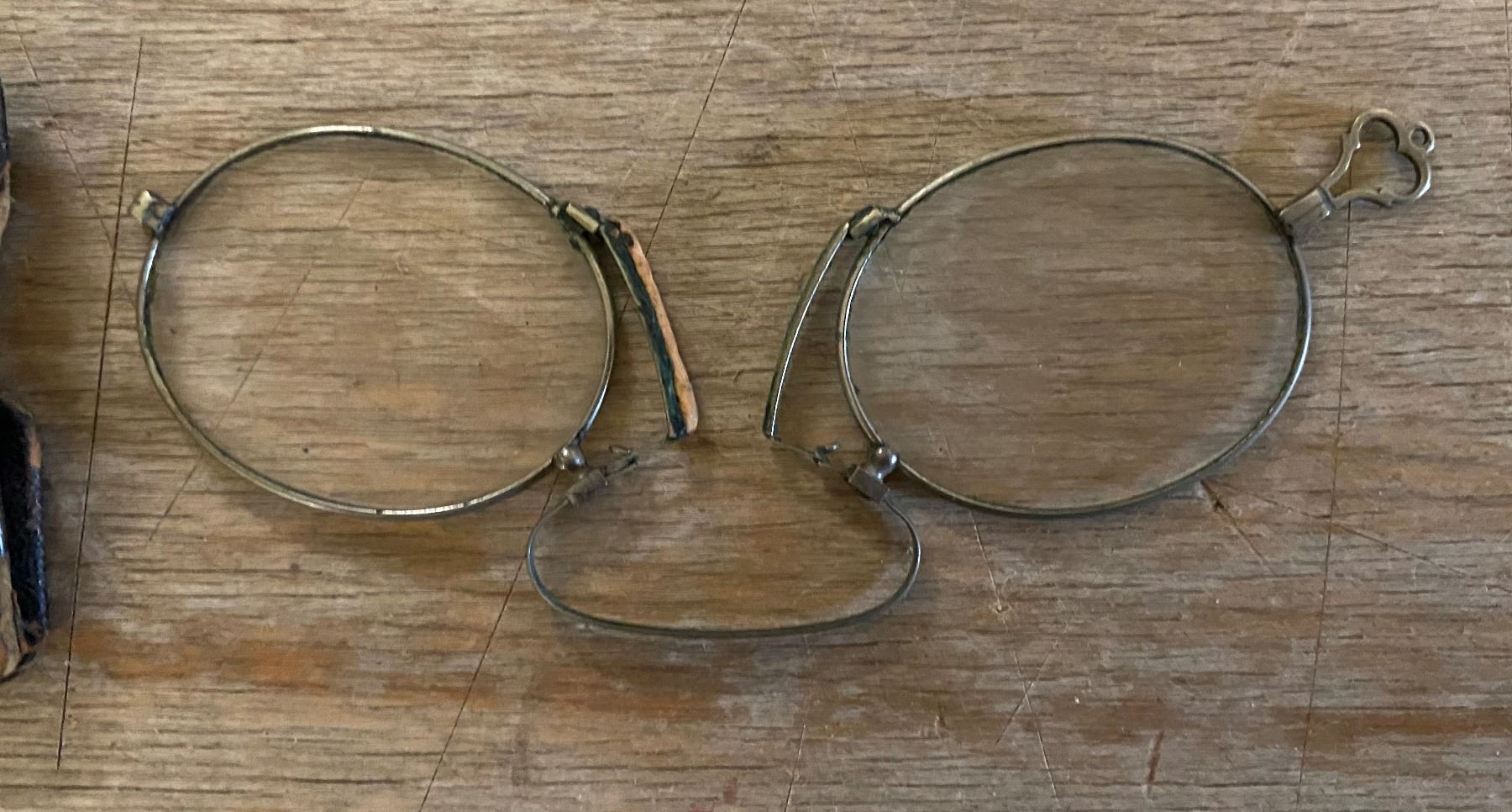 1800'S NOSE CLIP GLASSES W/CASE