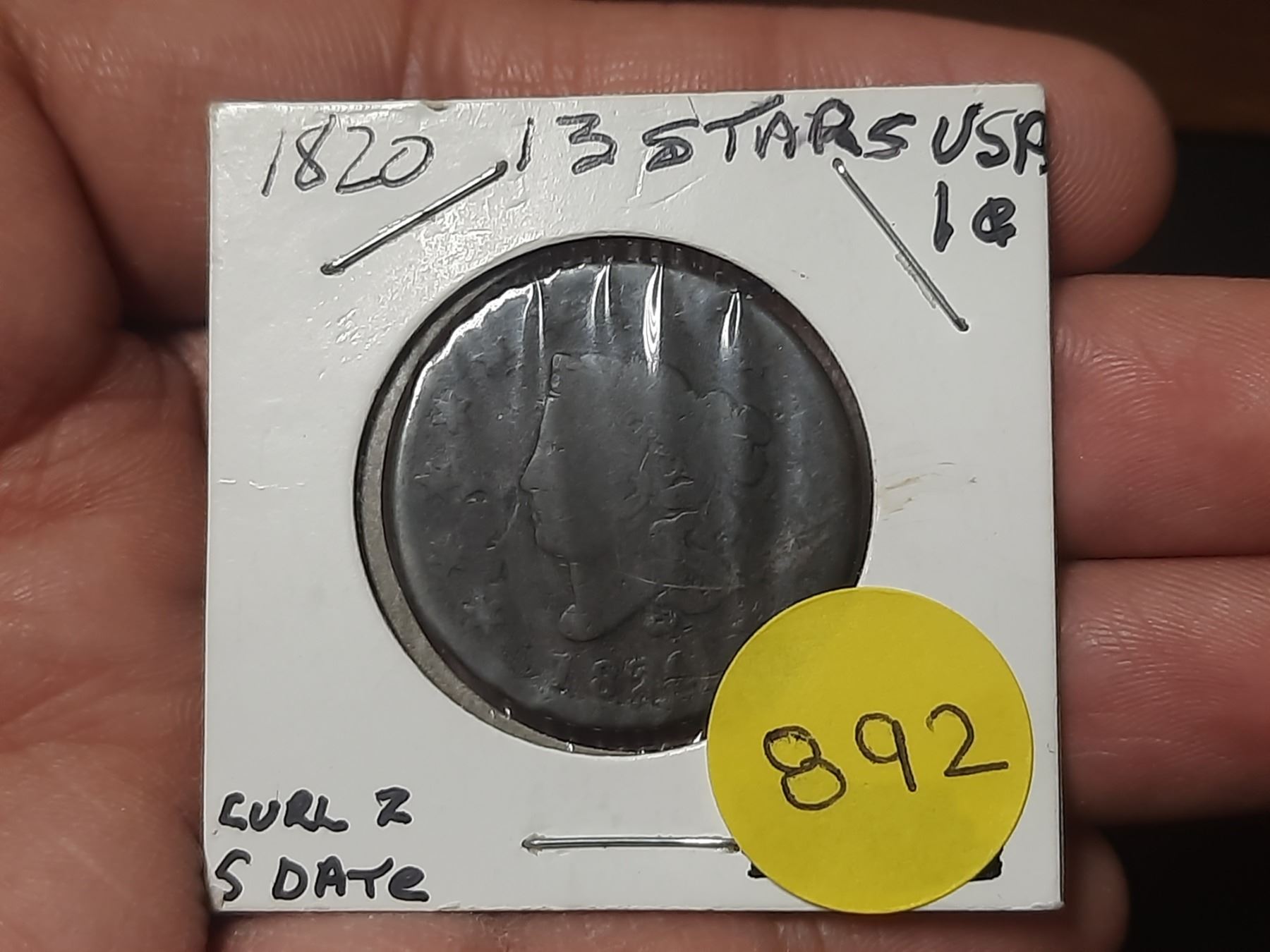 1820 USA Large Cent - 13 Stars - Curl Z, S Date