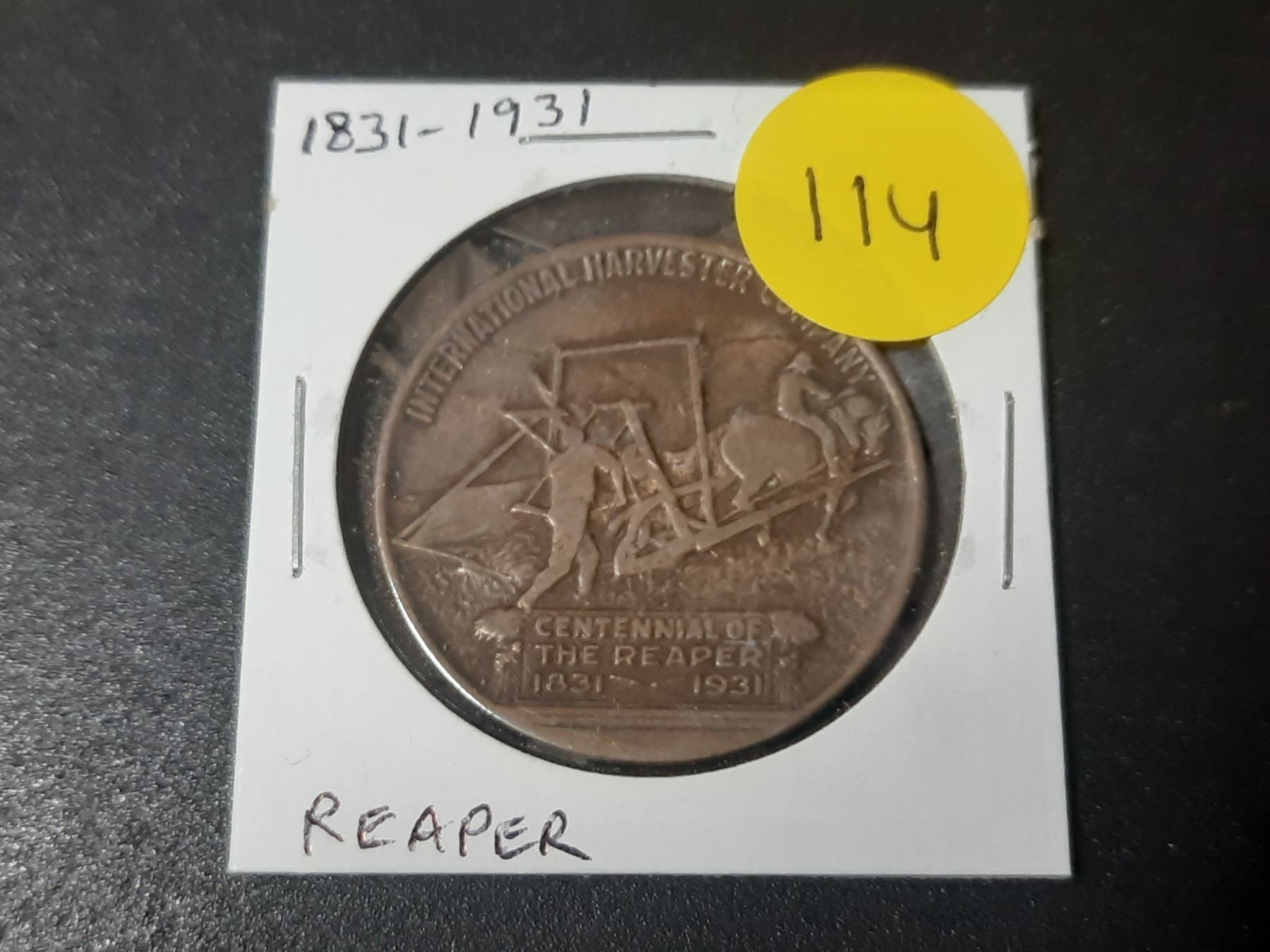 1831 – 1931 Centennial medal of Cyrus McCormick, inventor of the reaper grain harvester. VF.