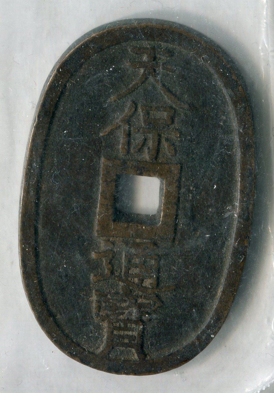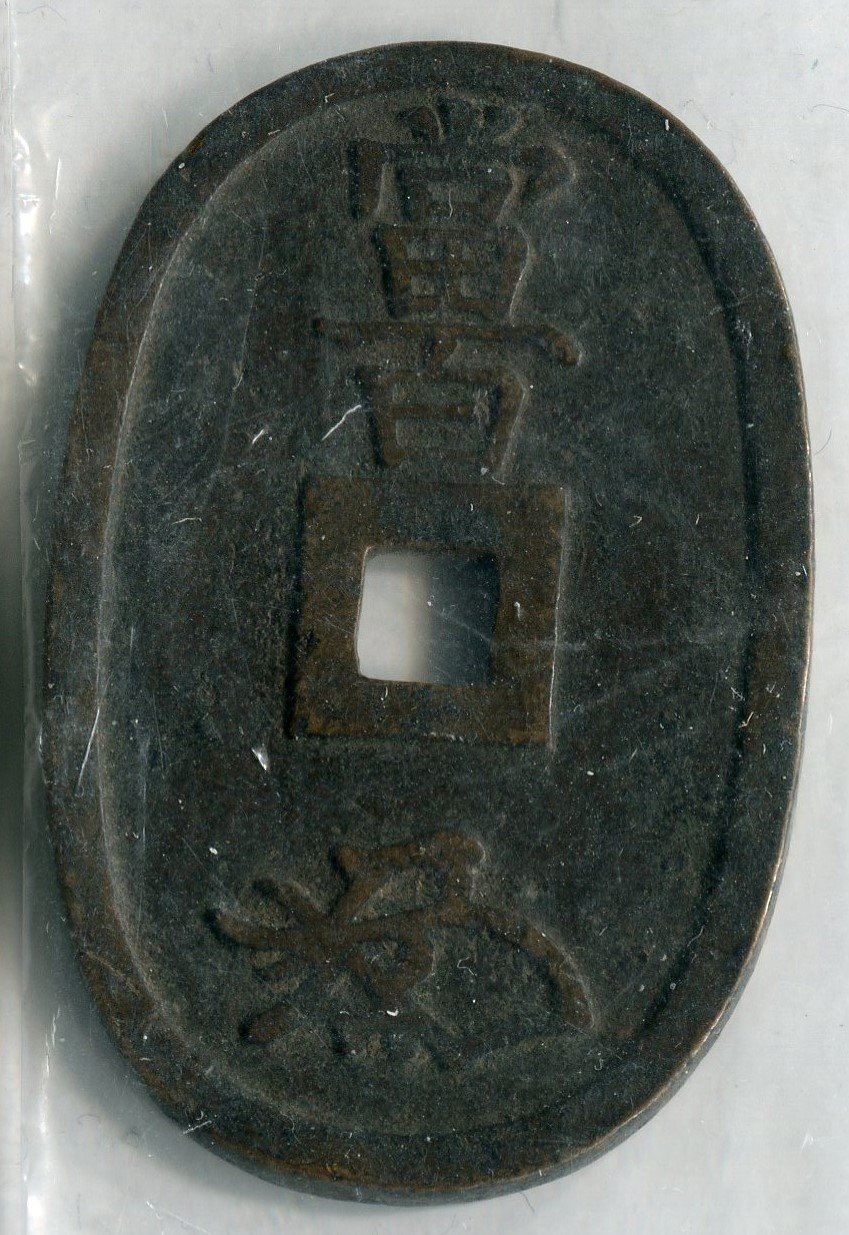 1835-1870 COIN (JAPANESE) 100 MON (TENPOSUHO) *OVAL, W/SQUARE HOLE, BRONZE* (RETAIL $20+)