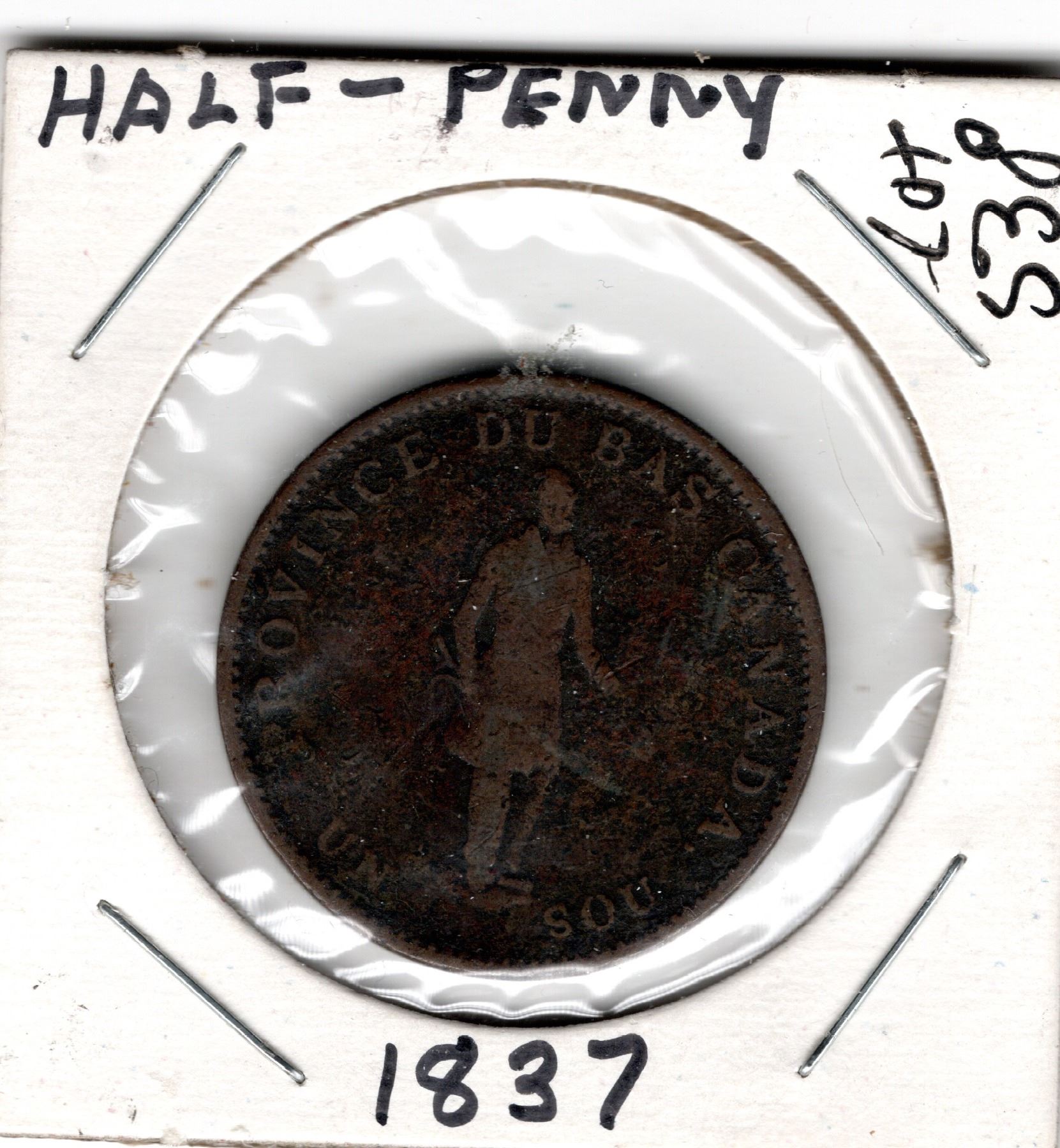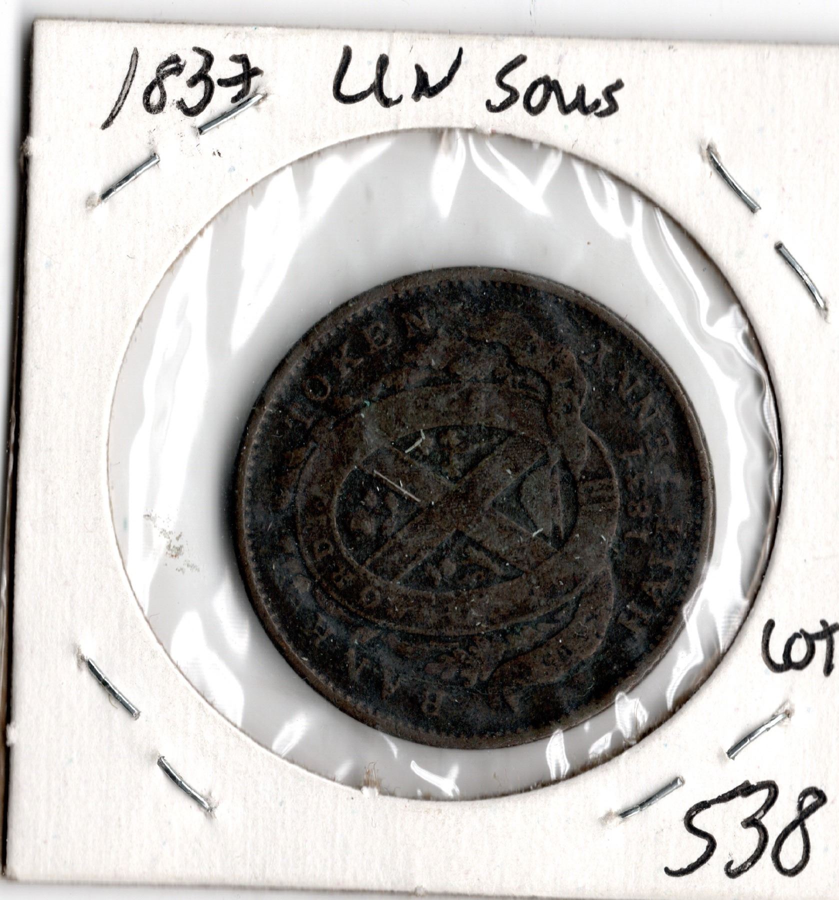 1837 PROVINCE DU BAS CANADA UN SOU