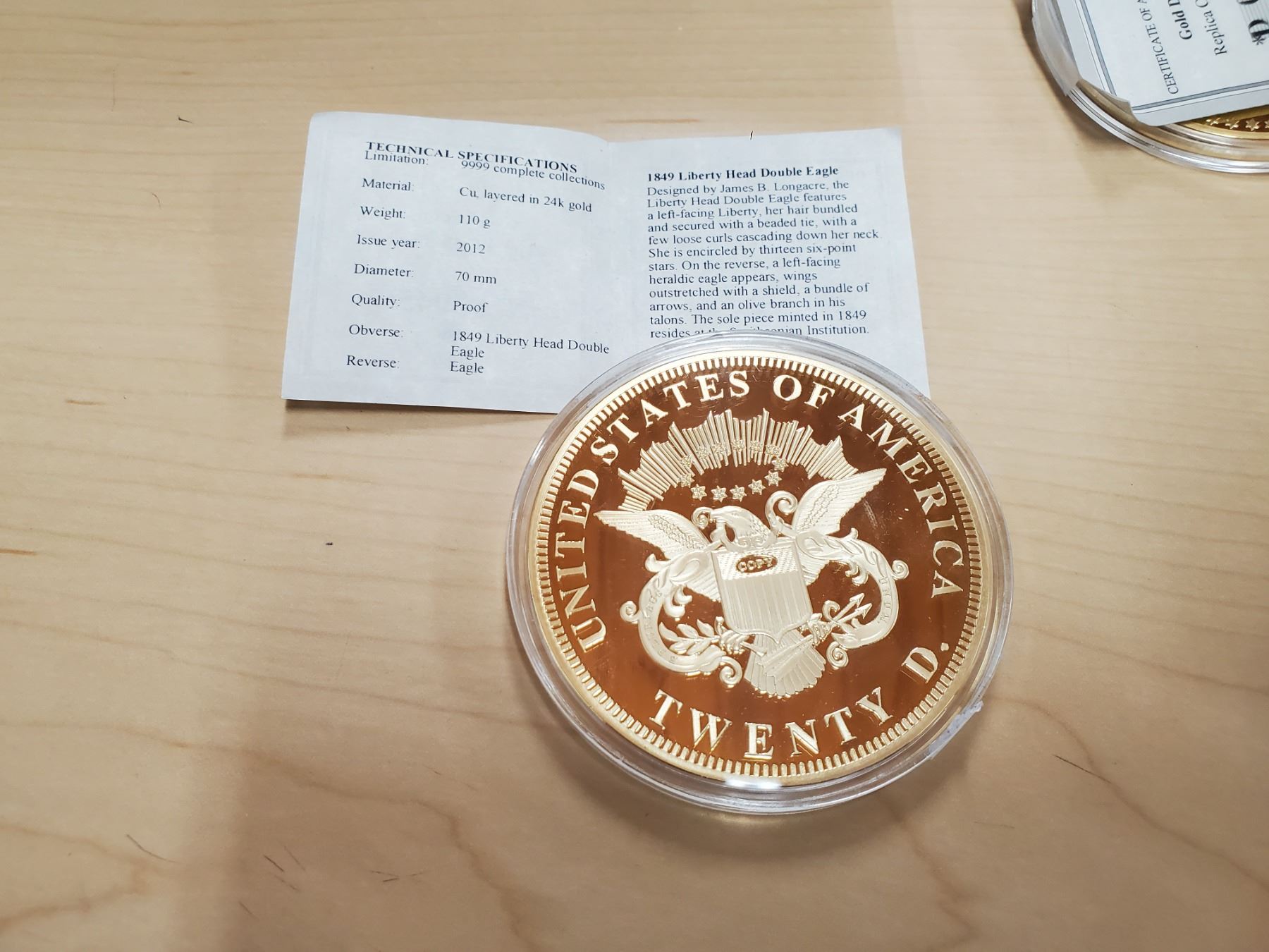 1849 Liberty Head Double Eagle Replica - 24K Gold Clad