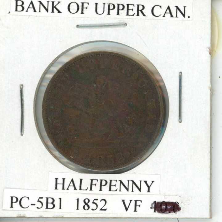1852 Province of Canada Bank of Upper Canada Half Penny. PC-5B1. Pre-Confederation Token. VF-20.